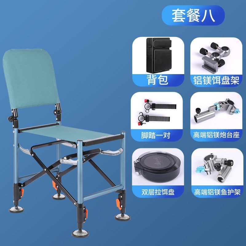 • 알루미늄 합금 블루 나이트 낚시 의자 - 원형 그립 - 리클라이닝 - 패키지 8