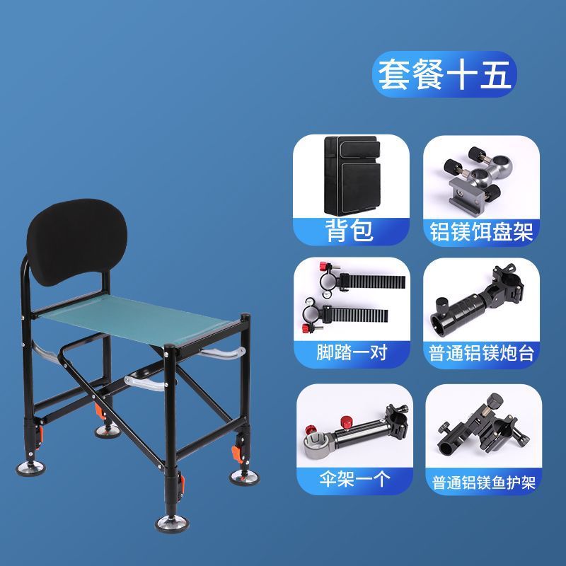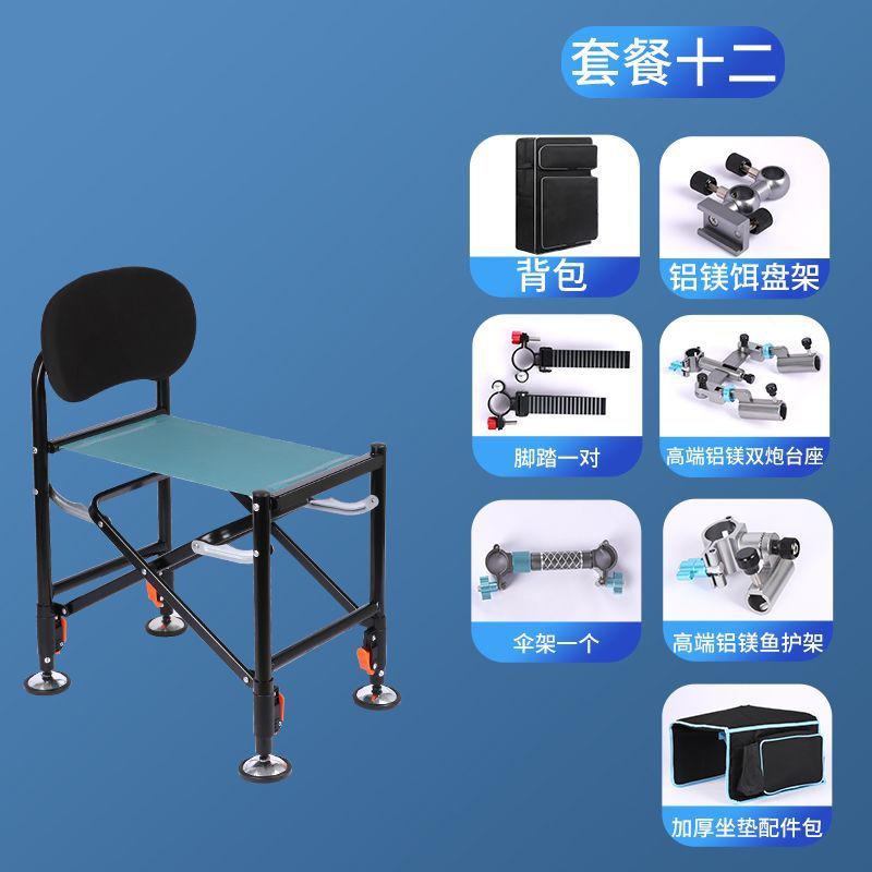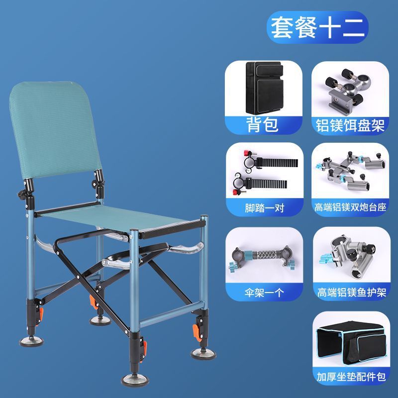 • 알루미늄 합금 블루 나이트 낚시 의자 - 원형 그립 - 리클라이닝 - 패키지 13