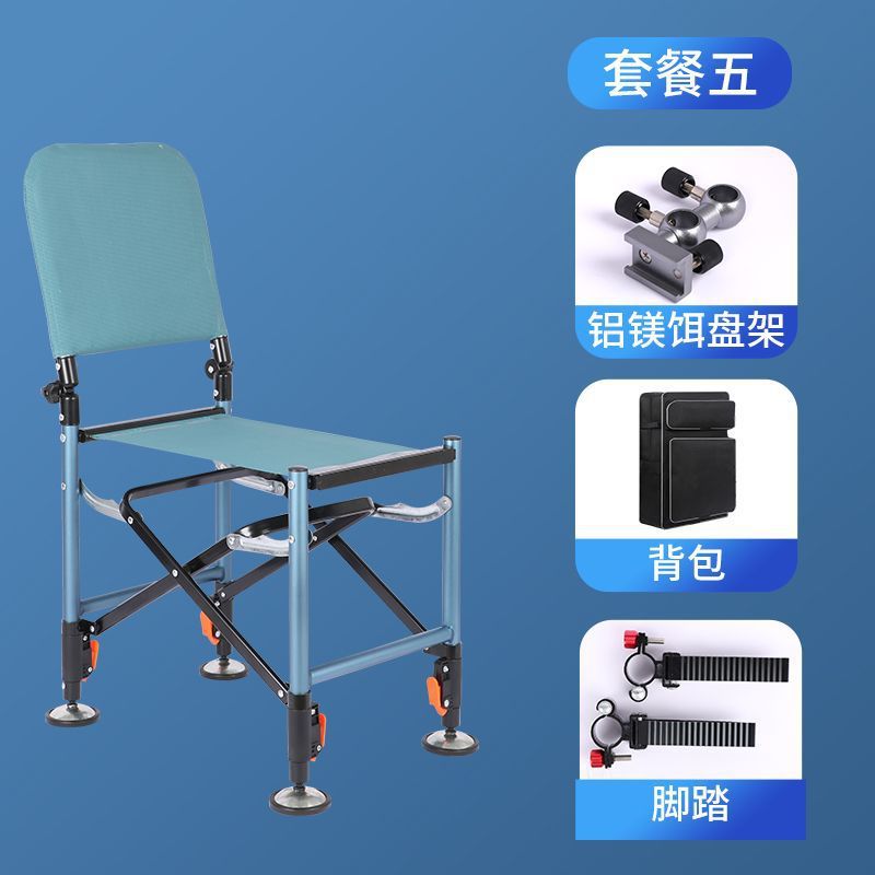 • 알루미늄 합금 블루 나이트 낚시 의자 - 원형 그립 - 리클라이닝 - 패키지 5