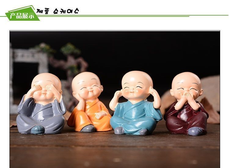 넷 레드 네 작은 스님 창조적 인 귀여운 슈퍼 귀여운 인형 자동차 콘솔 장식품 분재 장식 휴일 선물스토어 가기