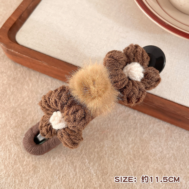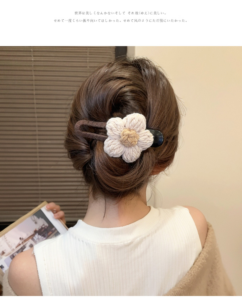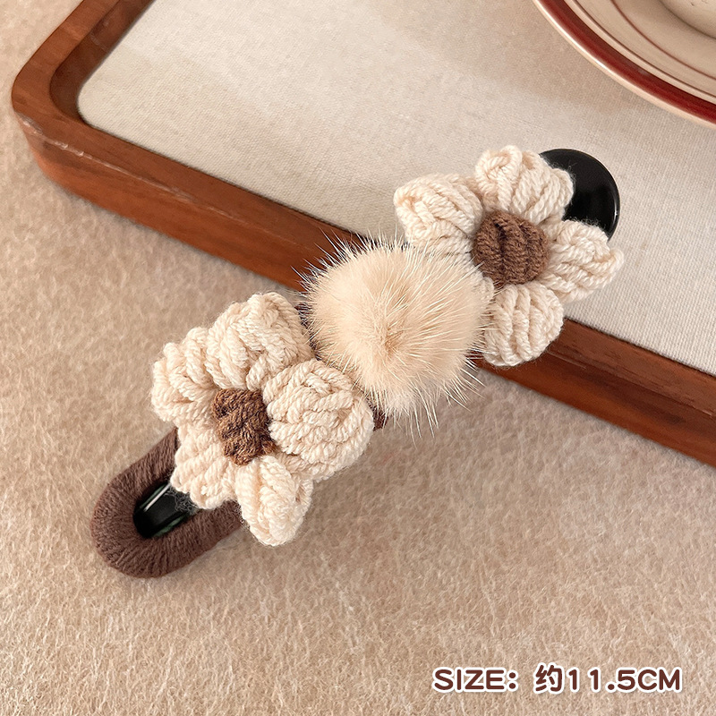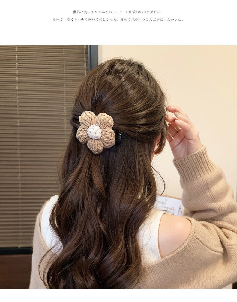 양모 꽃 덕빌 클립 여성의 머리 뒤 2024 새로운 가을과 겨울 대형 플레이트 헤어 클립 헤어핀 헤드웨어스토어 가기