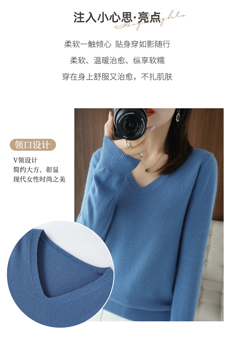 크로스보더 가을 겨울 신상 니트 여성 브이넥 긴팔 풀오버 단색 한국 스타일 루즈핏 이너웨어 슬림핏 아우터스토어 가기