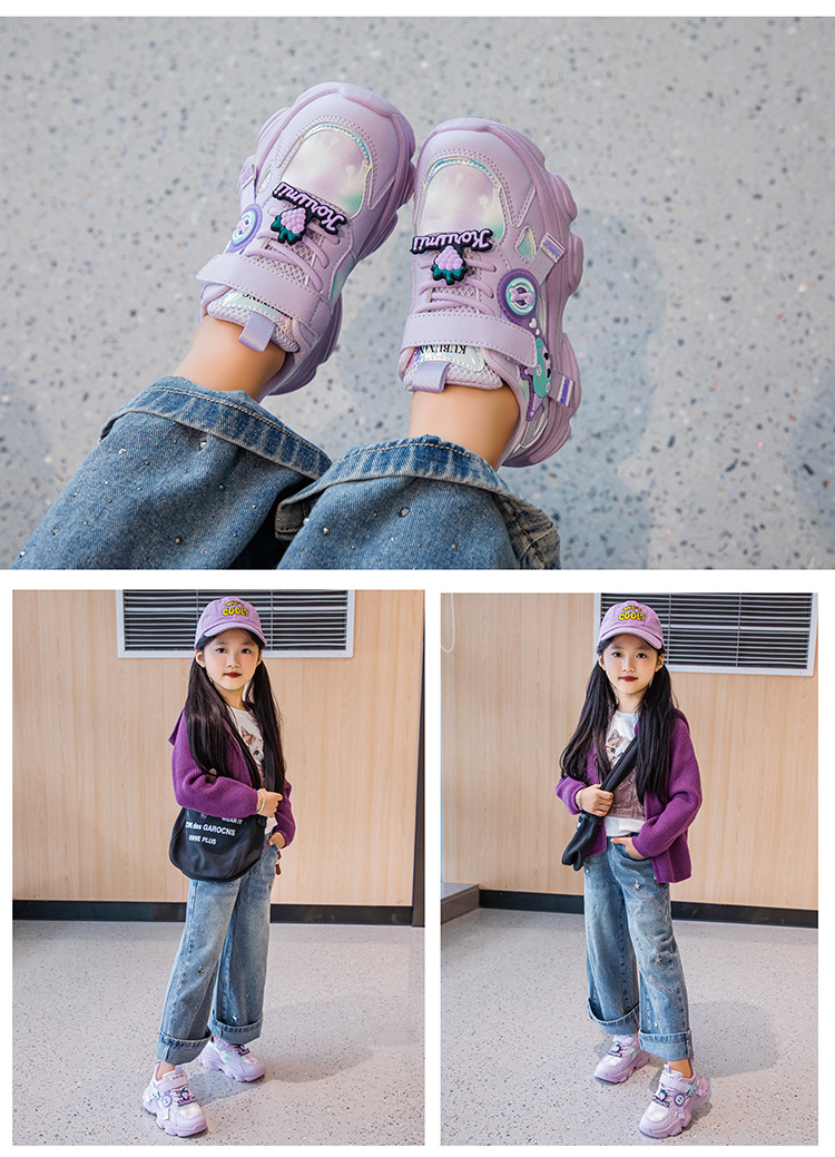 소녀 운동화 2024 봄과 가을 새로운 만화 패션 올 매치 미끄럼 방지 중대형 어린이 가죽 코튼 토레 신발스토어 가기