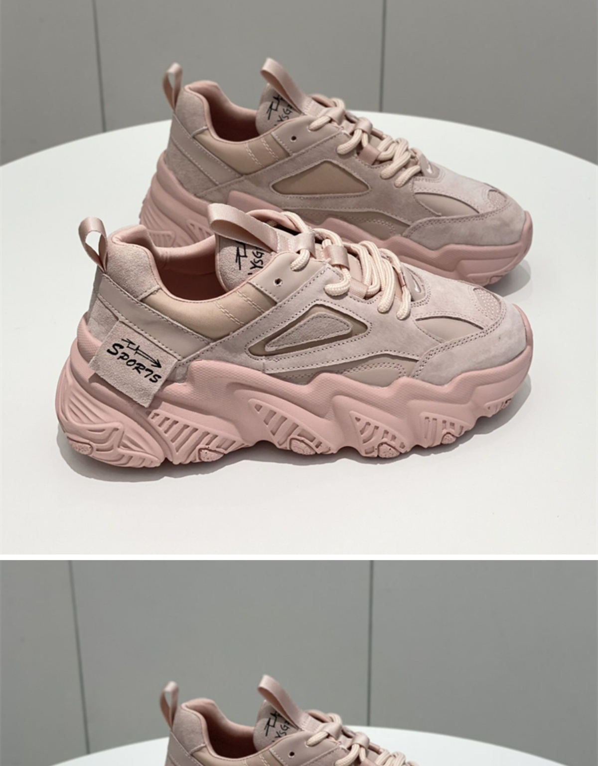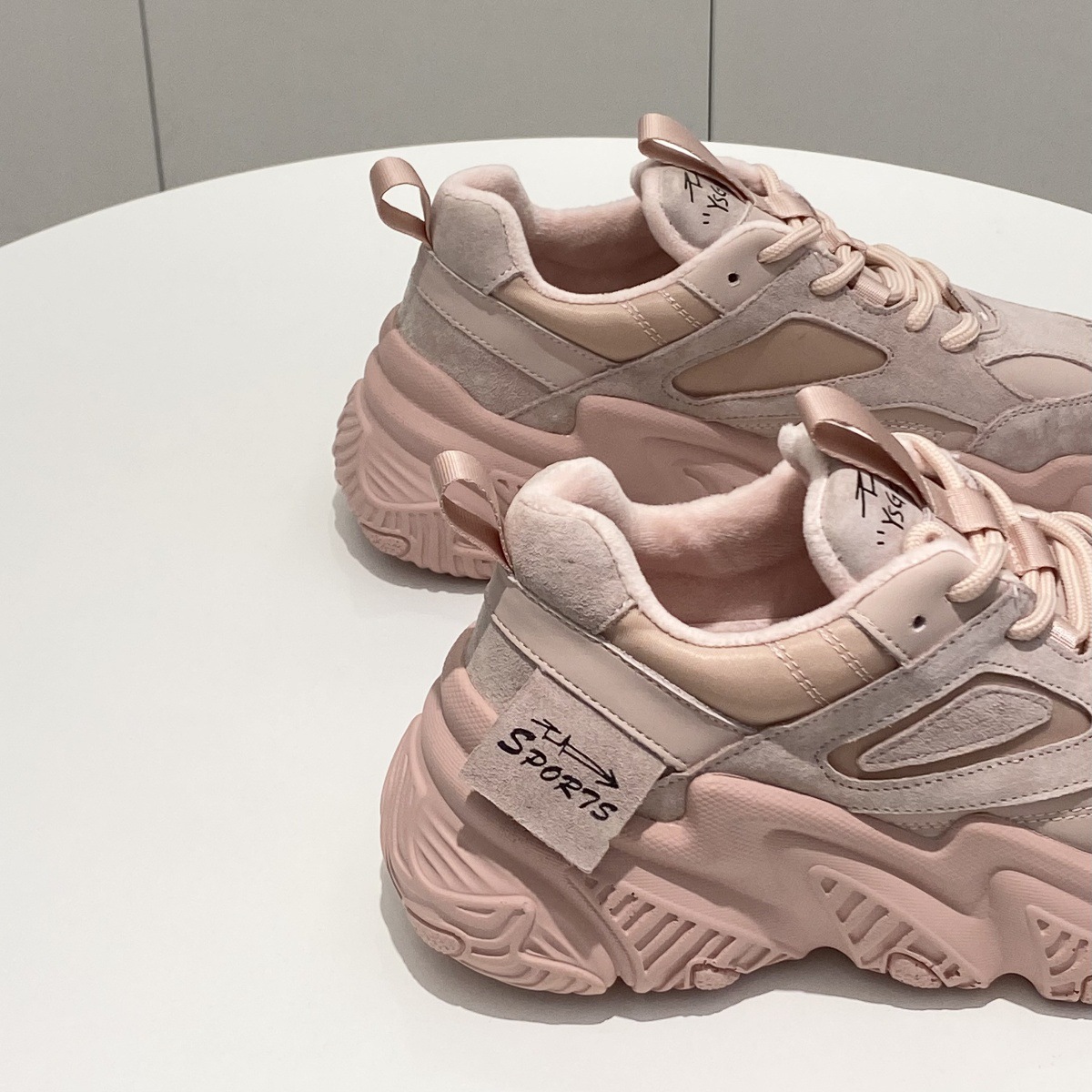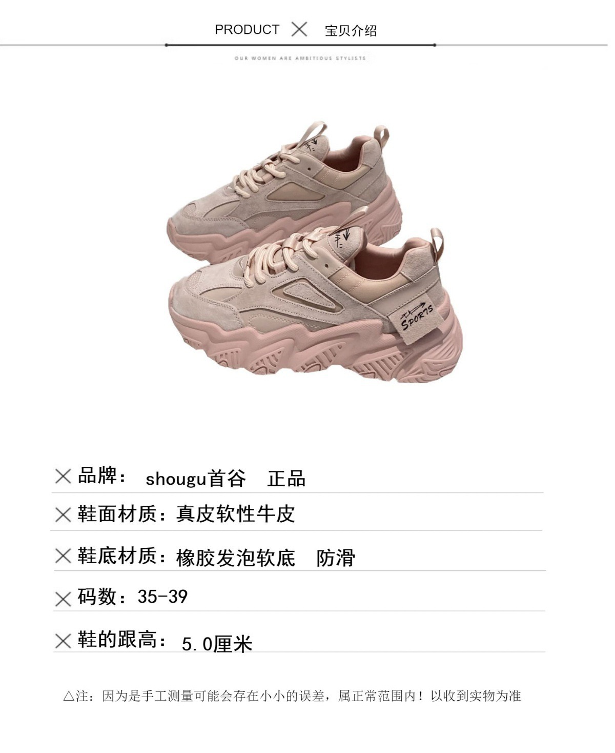 쇼구 정품 폭발 두꺼운 밑창 토르 신발 여성 ins2024 가을 및 겨울 새로운 정품 가죽 텐더 핑크 올 매치 운동화