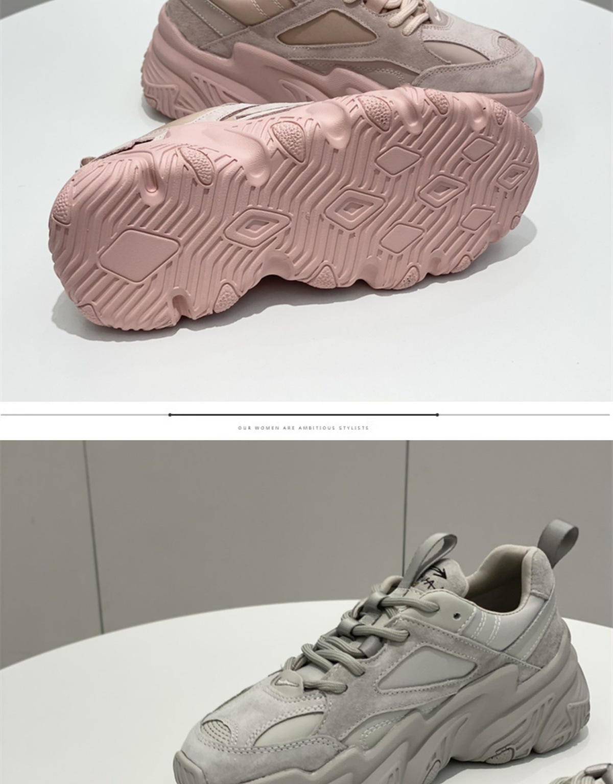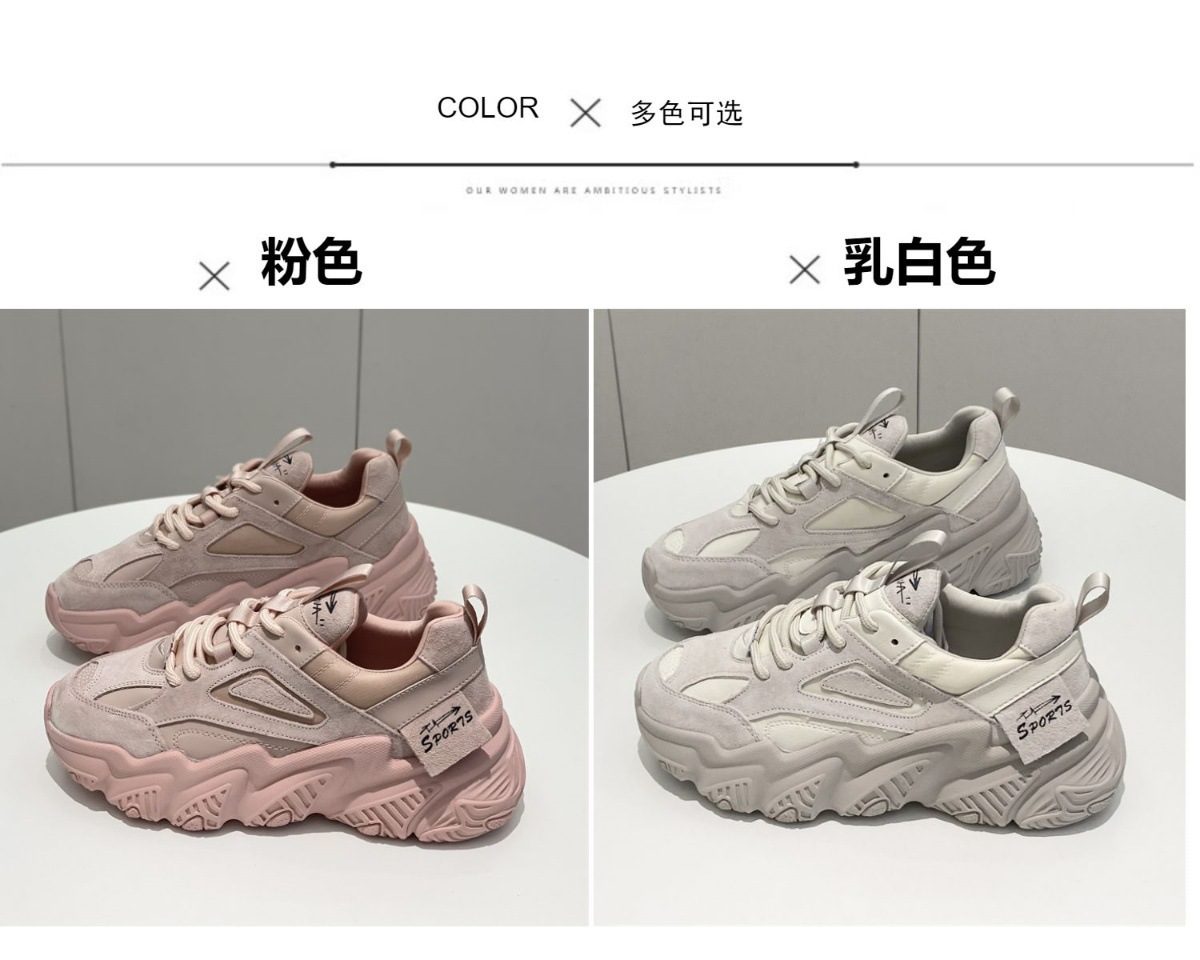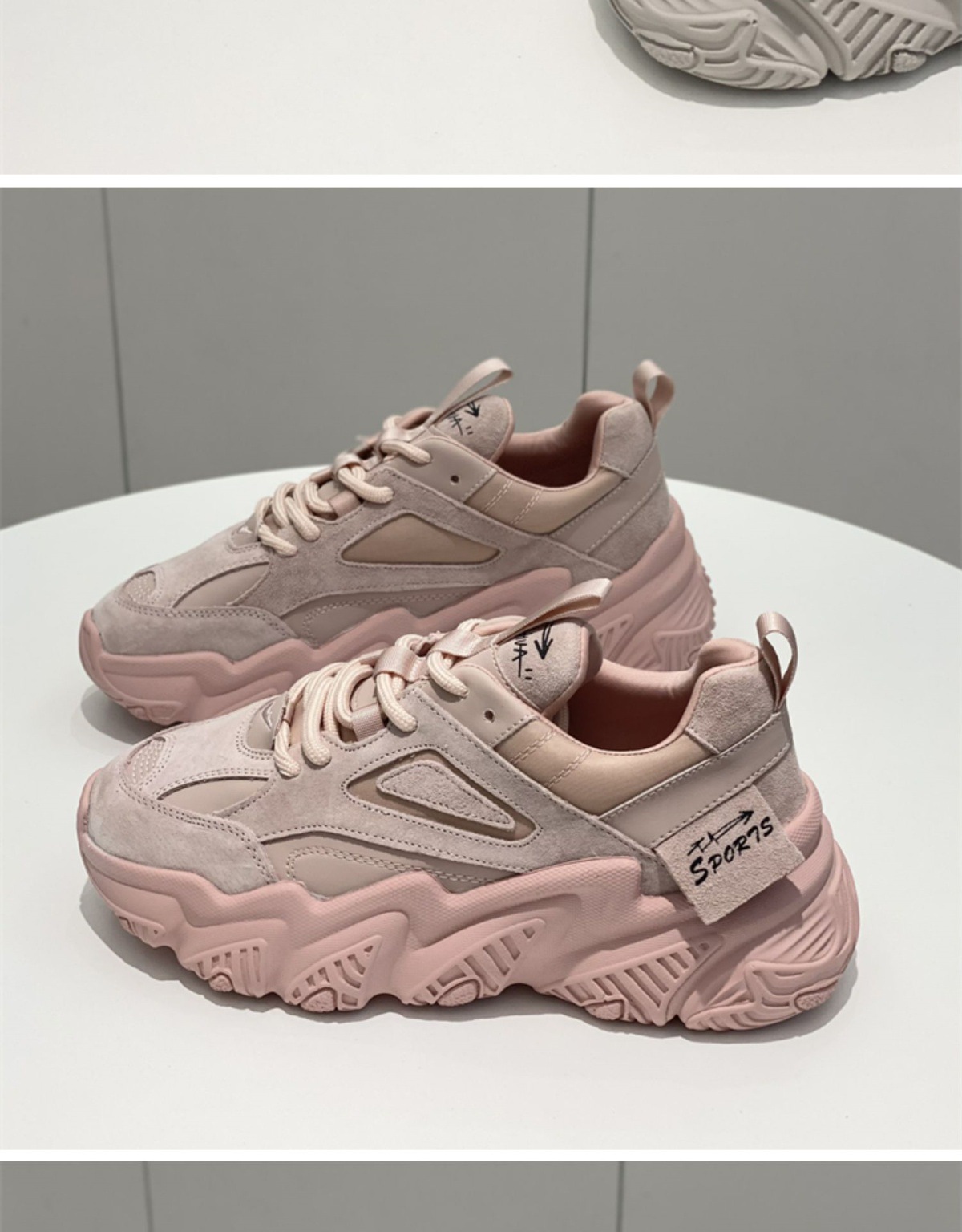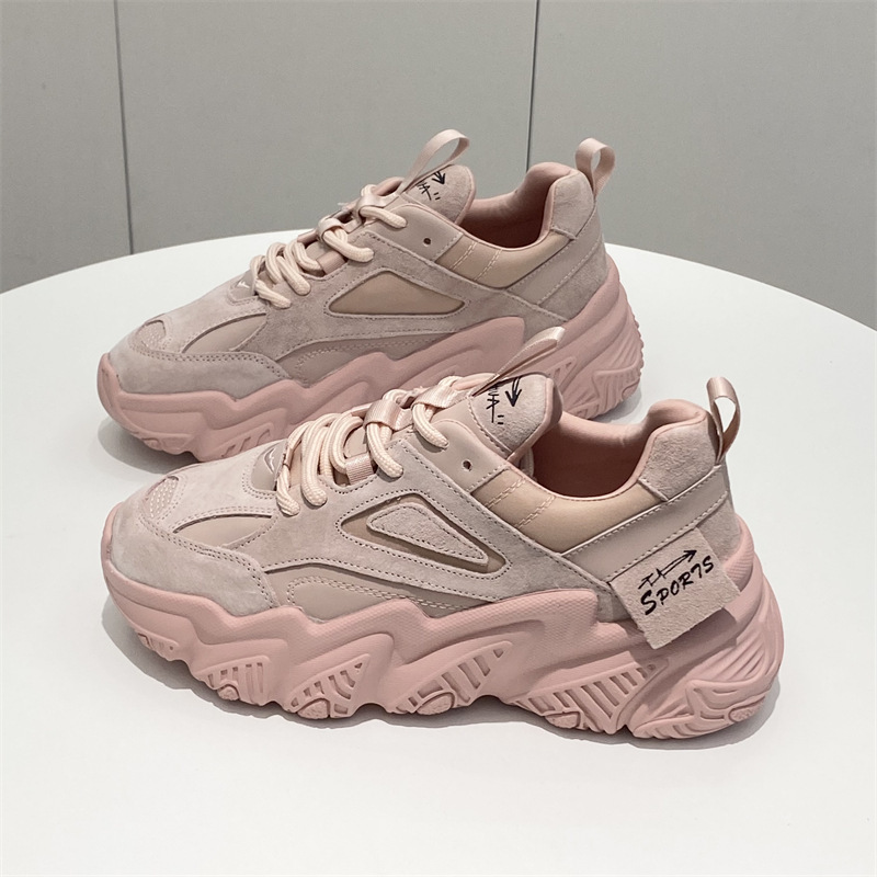 쇼구 정품 폭발 두꺼운 밑창 토르 신발 여성 ins2024 가을 및 겨울 새로운 정품 가죽 텐더 핑크 올 매치 운동화