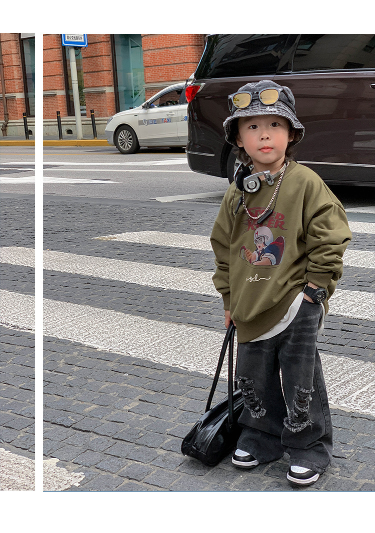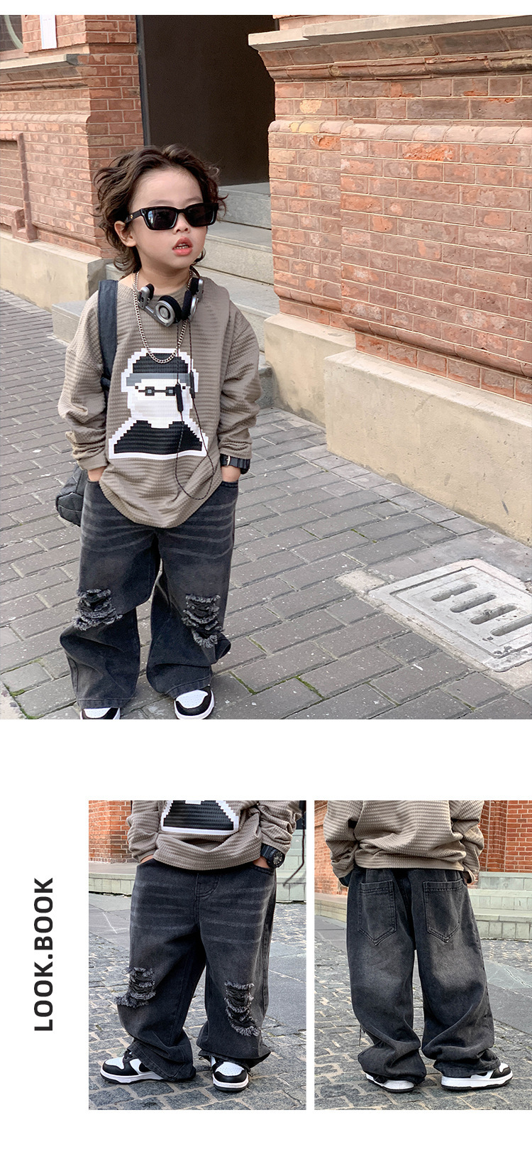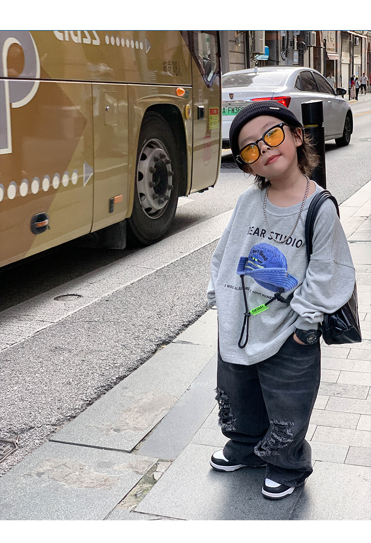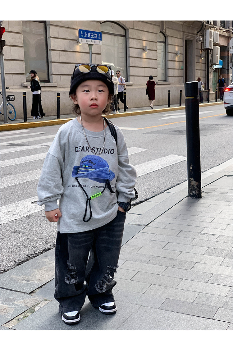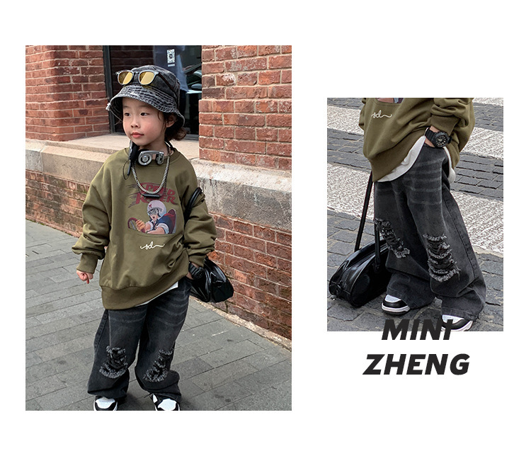 아기 바지 2025 가을 신상 블랙 루즈핏 스트레이트 롱 팬츠 남아 데미지 진스토어 가기