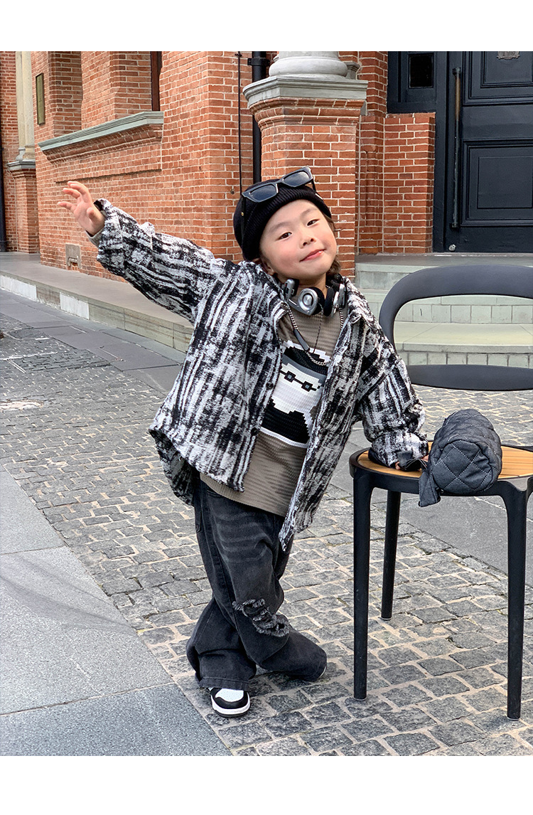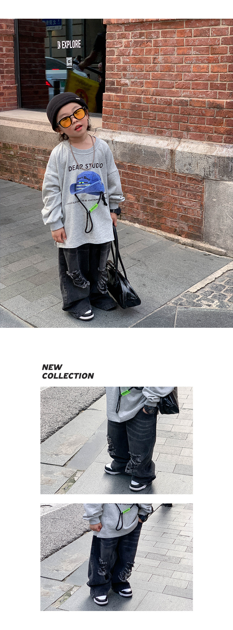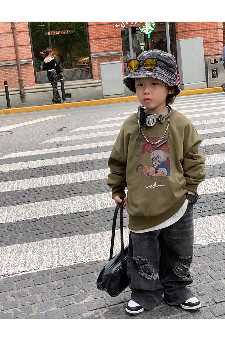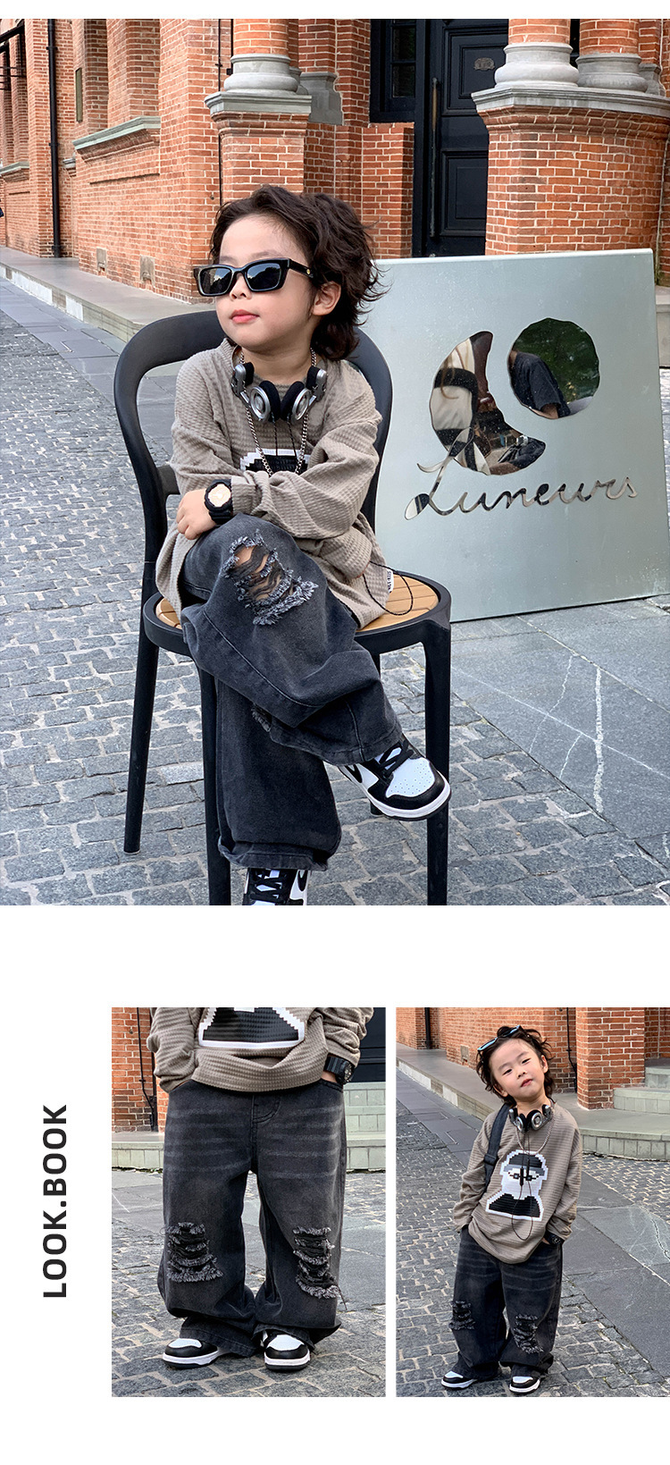 아기 바지 2025 가을 신상 블랙 루즈핏 스트레이트 롱 팬츠 남아 데미지 진스토어 가기