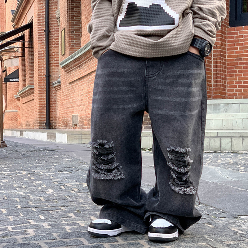 아기 바지 2025 가을 신상 블랙 루즈핏 스트레이트 롱 팬츠 남아 데미지 진