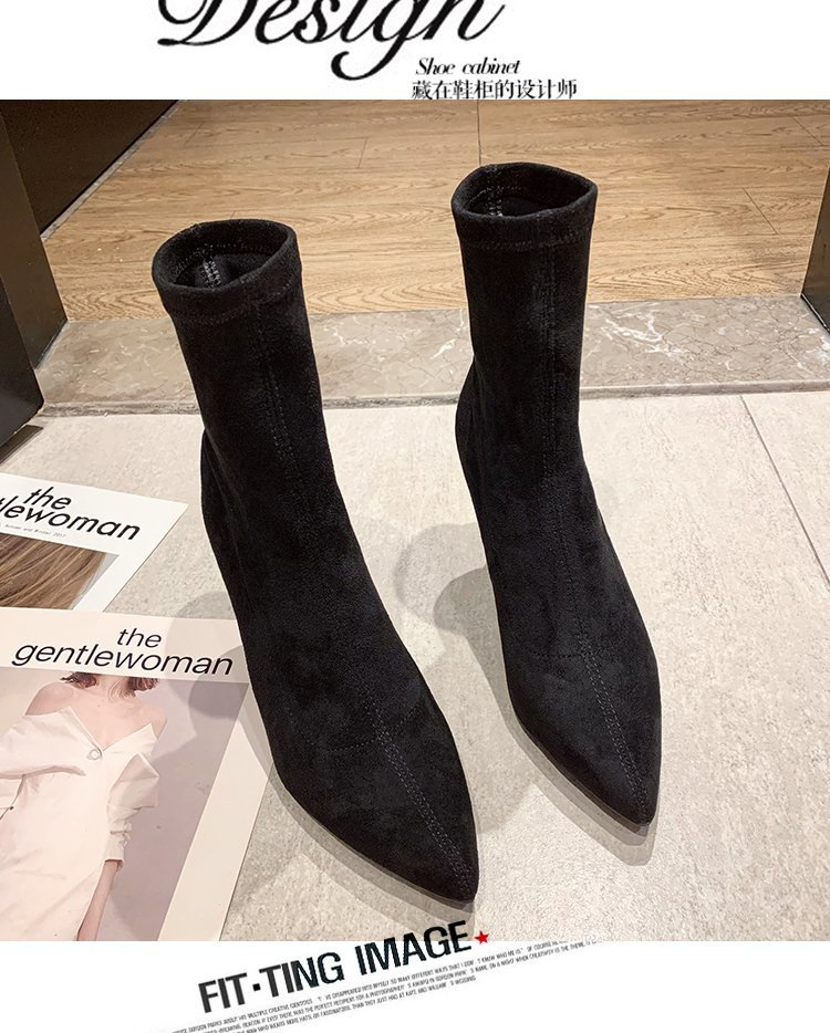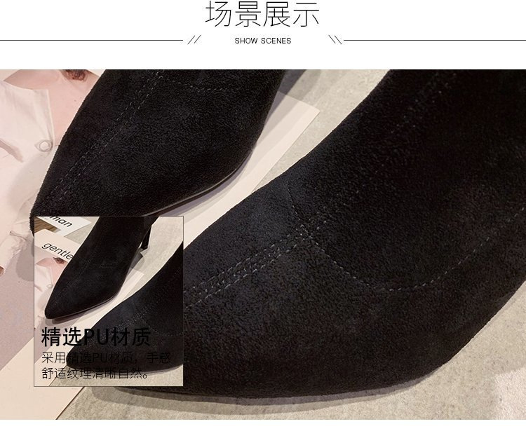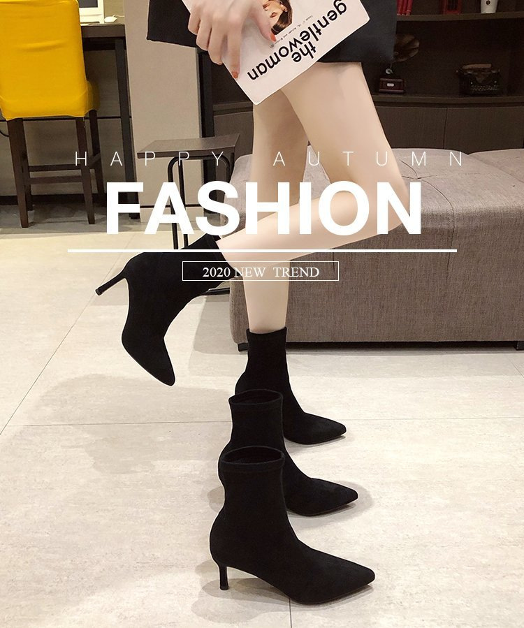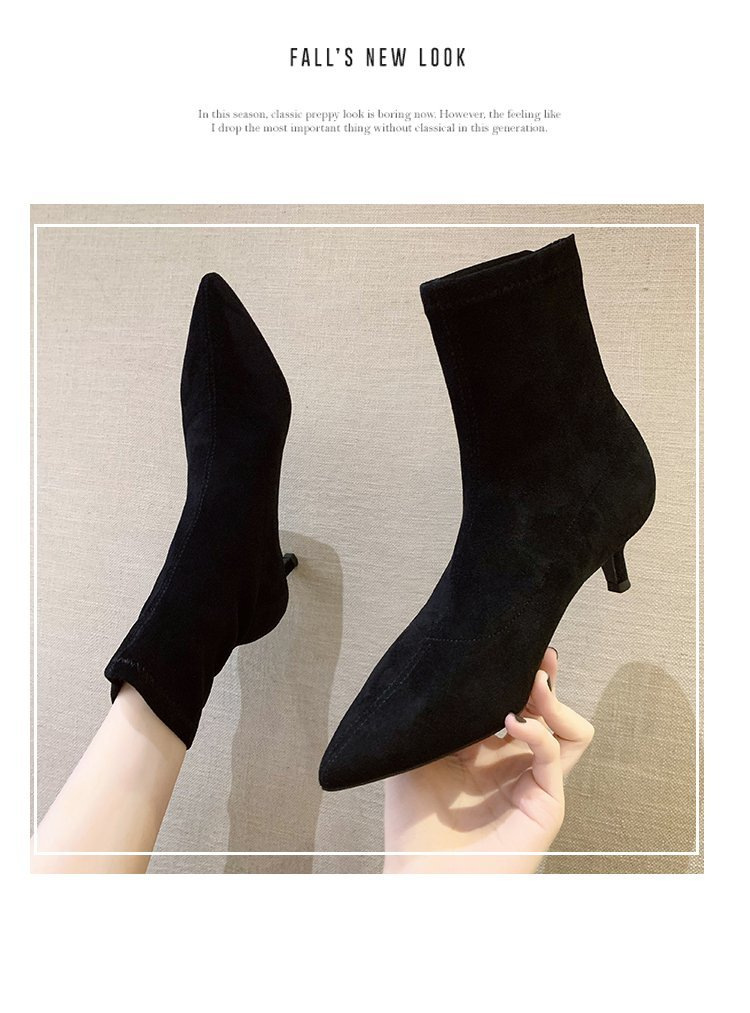 하이힐 뾰족한 짧은 부츠 여성의 2024 가을과 겨울 기모 얇은 뒤꿈치 검은 탄성 양말 부츠 그물 빨간 얇은 부츠 튜브스토어 가기