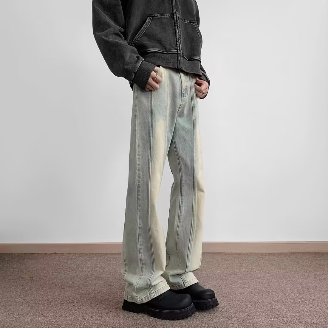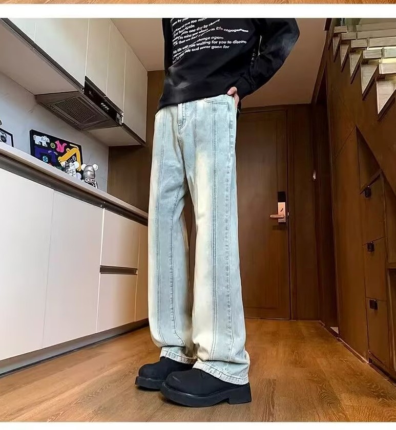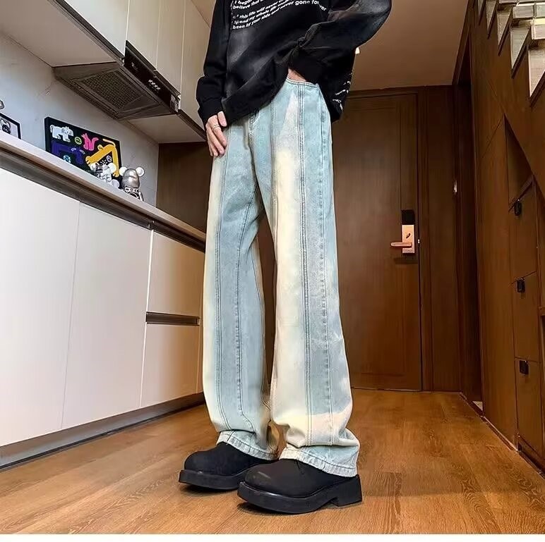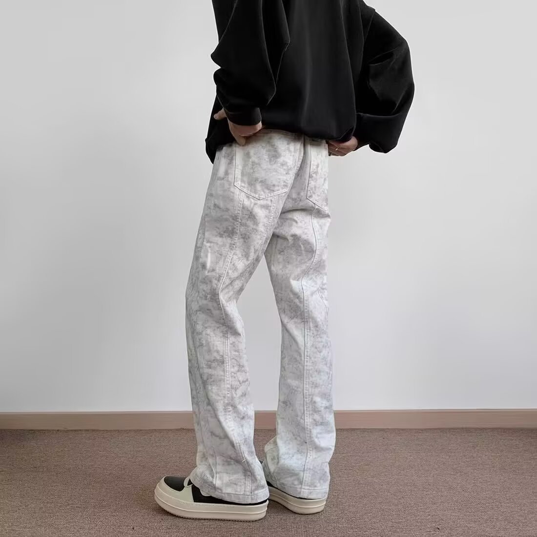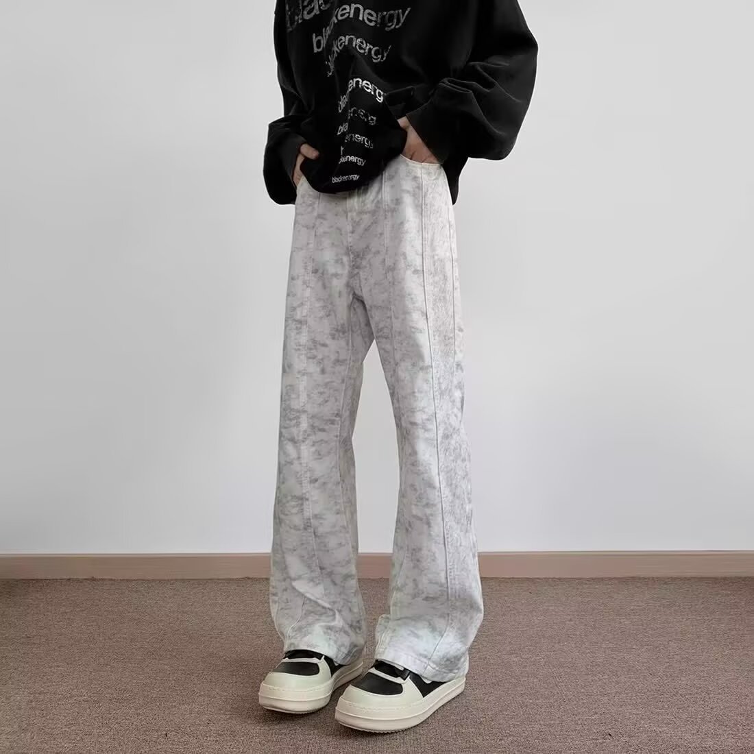 아메리칸 스타일 레트로 오래 된 더티 화이트 스플래시 잉크 프로필 느슨한 청바지 남성 하이 스트리트 dirtyfut 넓은 다리 바지스토어 가기