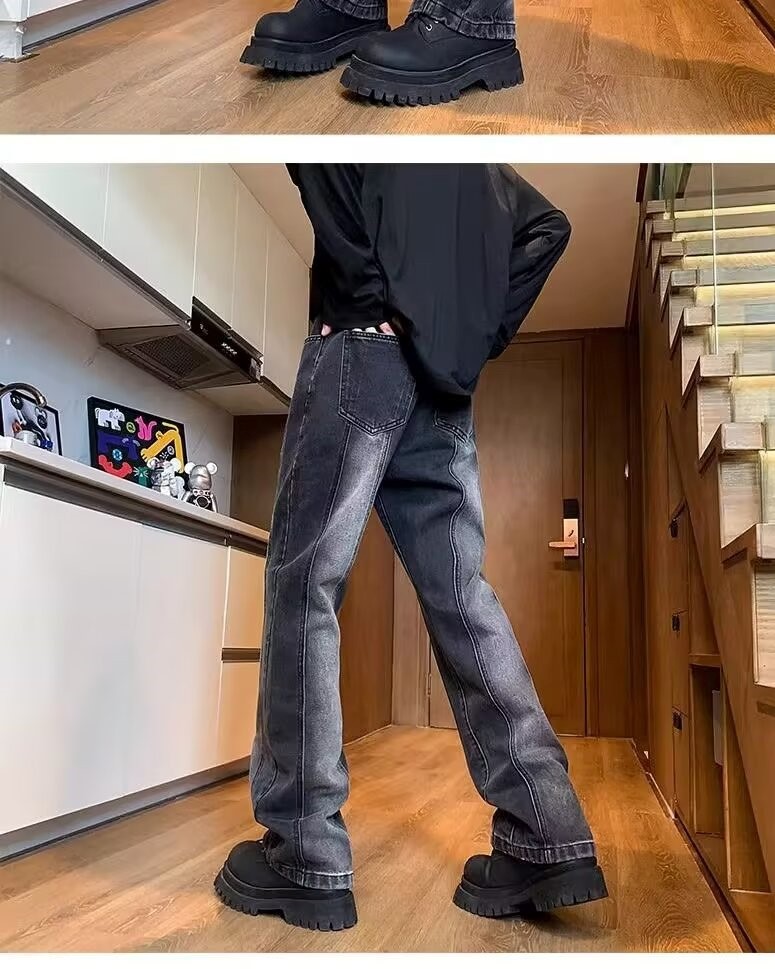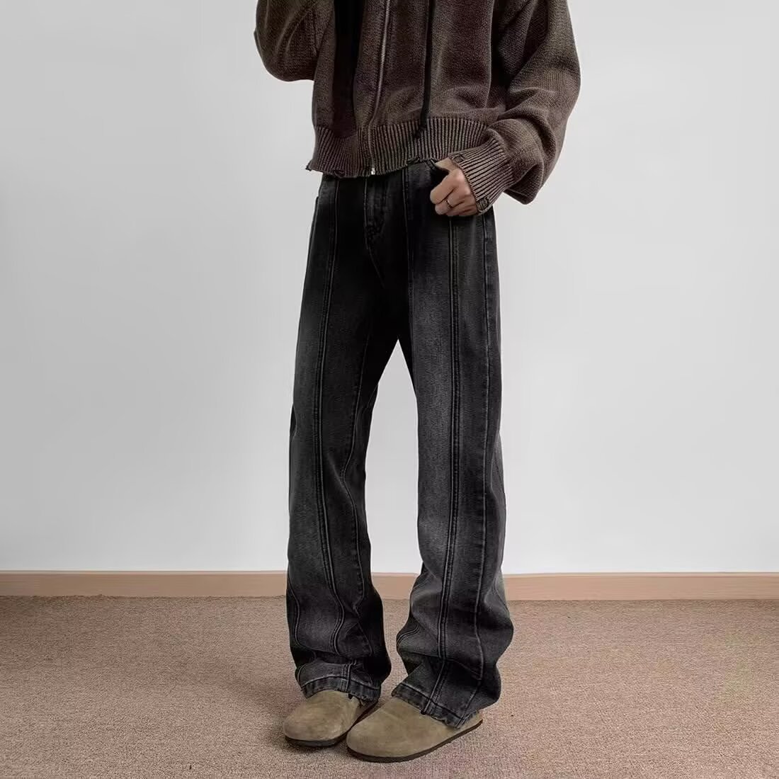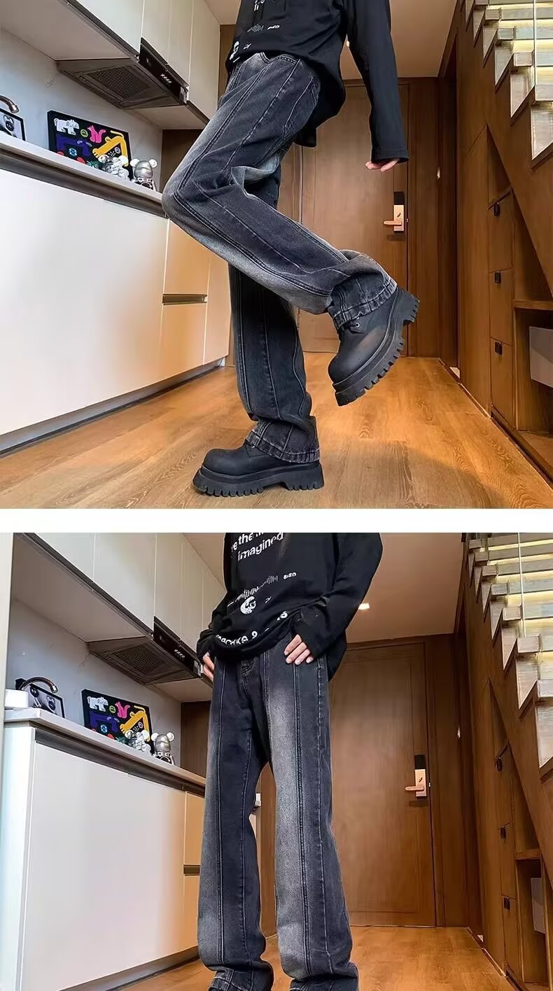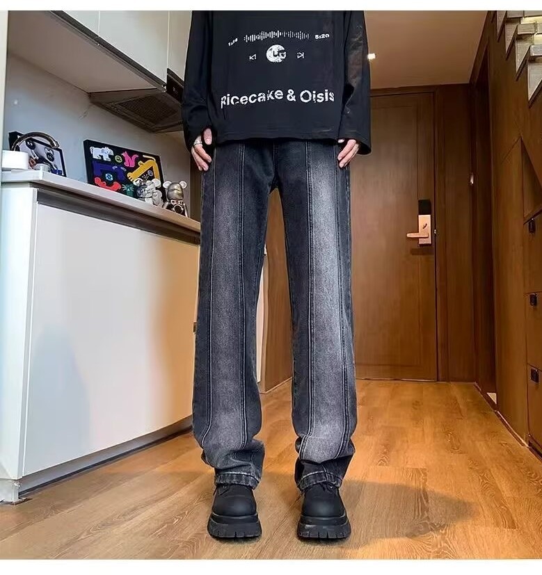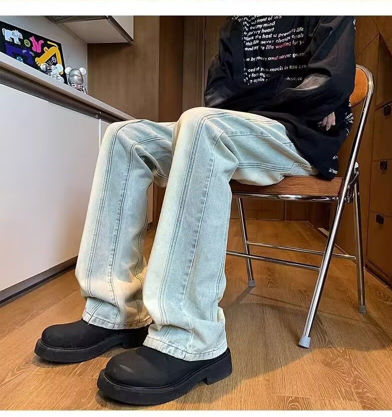 아메리칸 스타일 레트로 오래 된 더티 화이트 스플래시 잉크 프로필 느슨한 청바지 남성 하이 스트리트 dirtyfut 넓은 다리 바지스토어 가기
