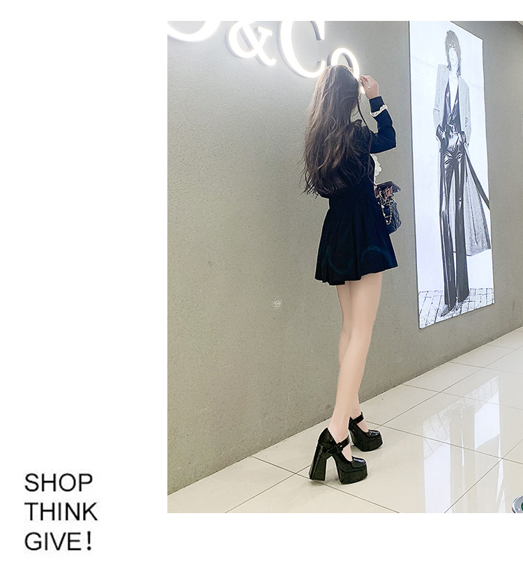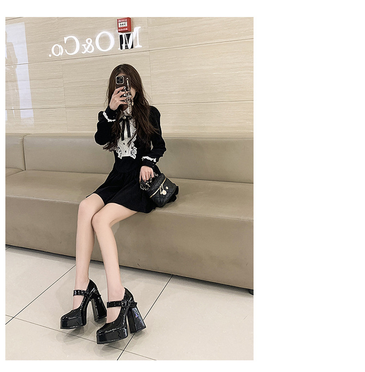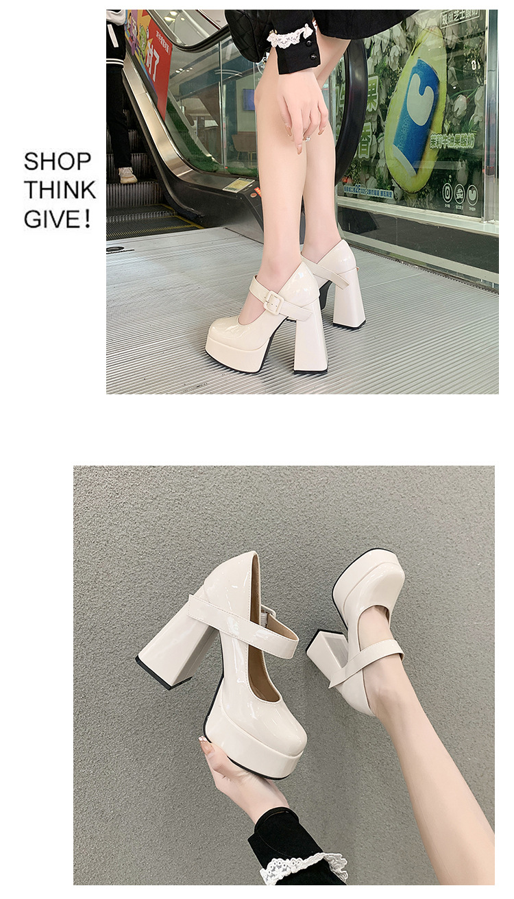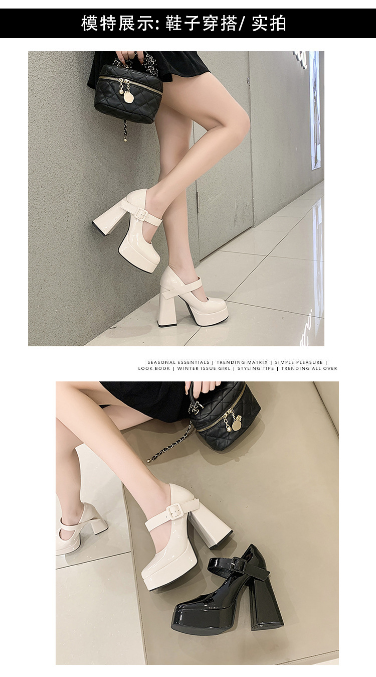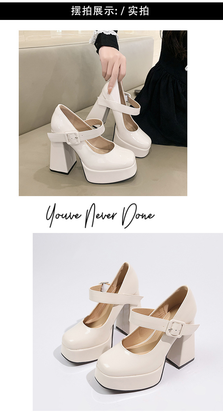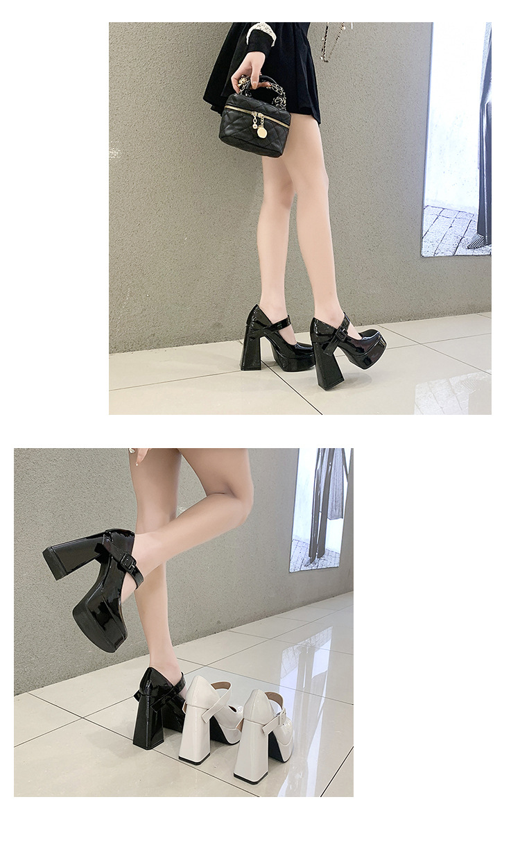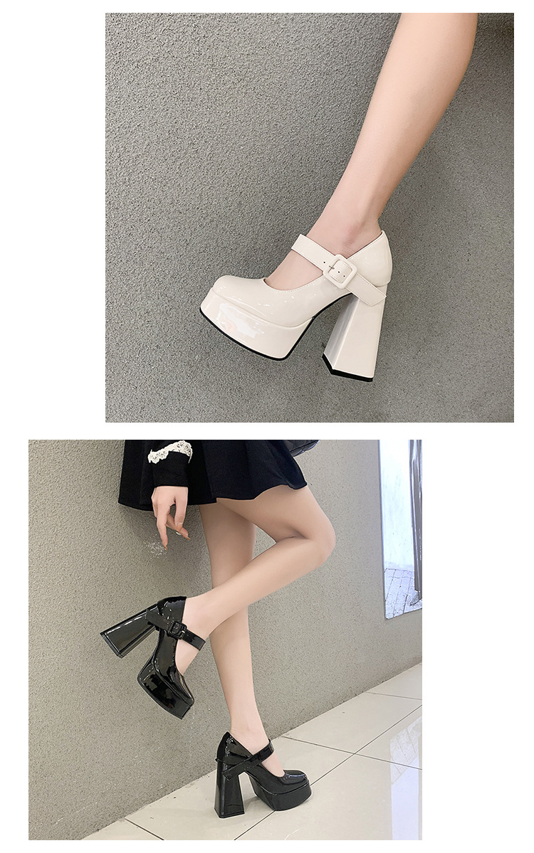 작은 12 Cm 슈퍼 하이힐 여성 두꺼운 힐 프랑스 메리 제인 가죽 신발 치마 특허 가죽 신발 하이힐스토어 가기