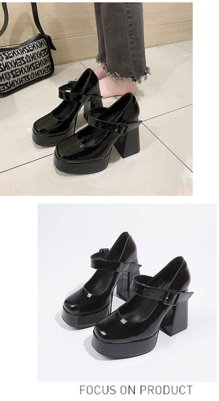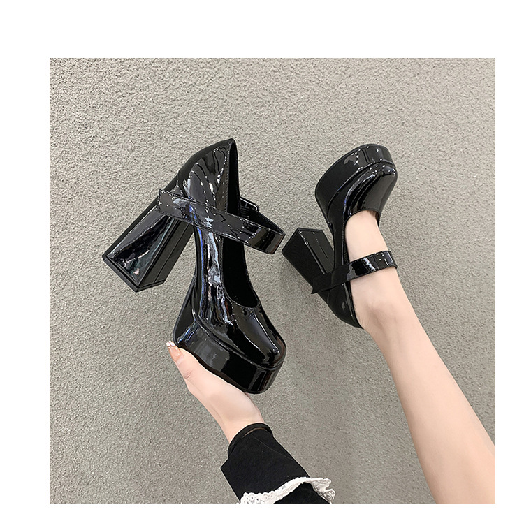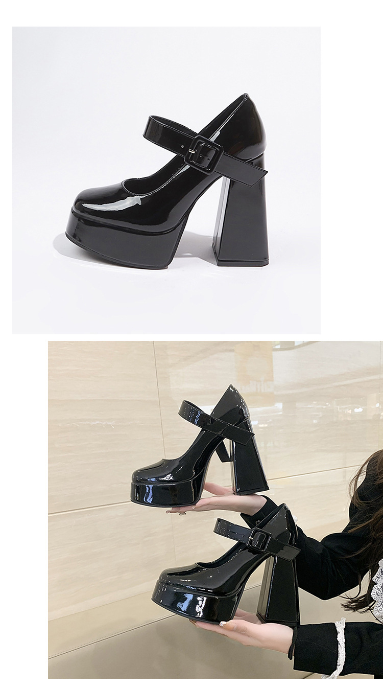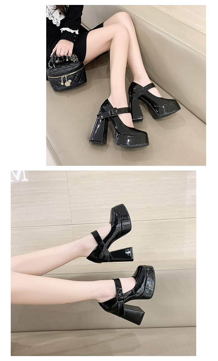 작은 12 Cm 슈퍼 하이힐 여성 두꺼운 힐 프랑스 메리 제인 가죽 신발 치마 특허 가죽 신발 하이힐