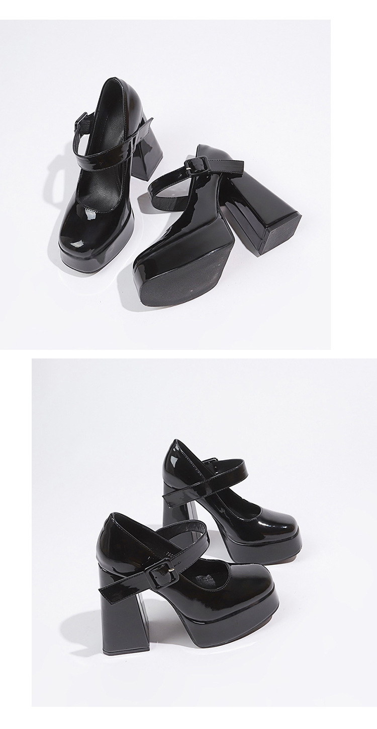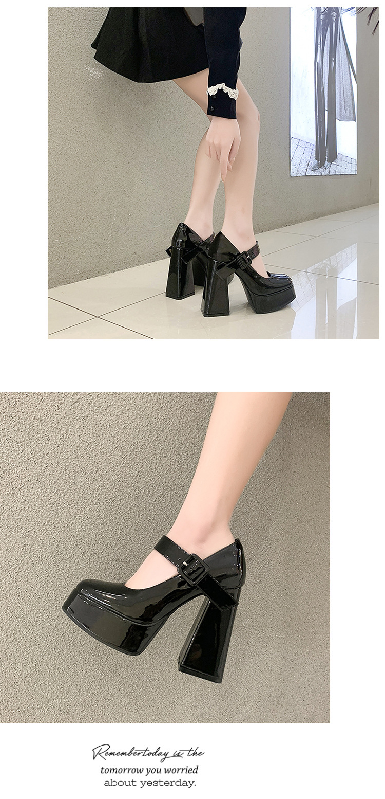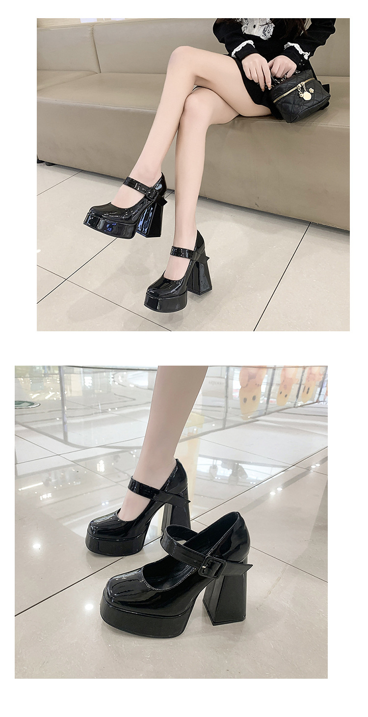 작은 12 Cm 슈퍼 하이힐 여성 두꺼운 힐 프랑스 메리 제인 가죽 신발 치마 특허 가죽 신발 하이힐