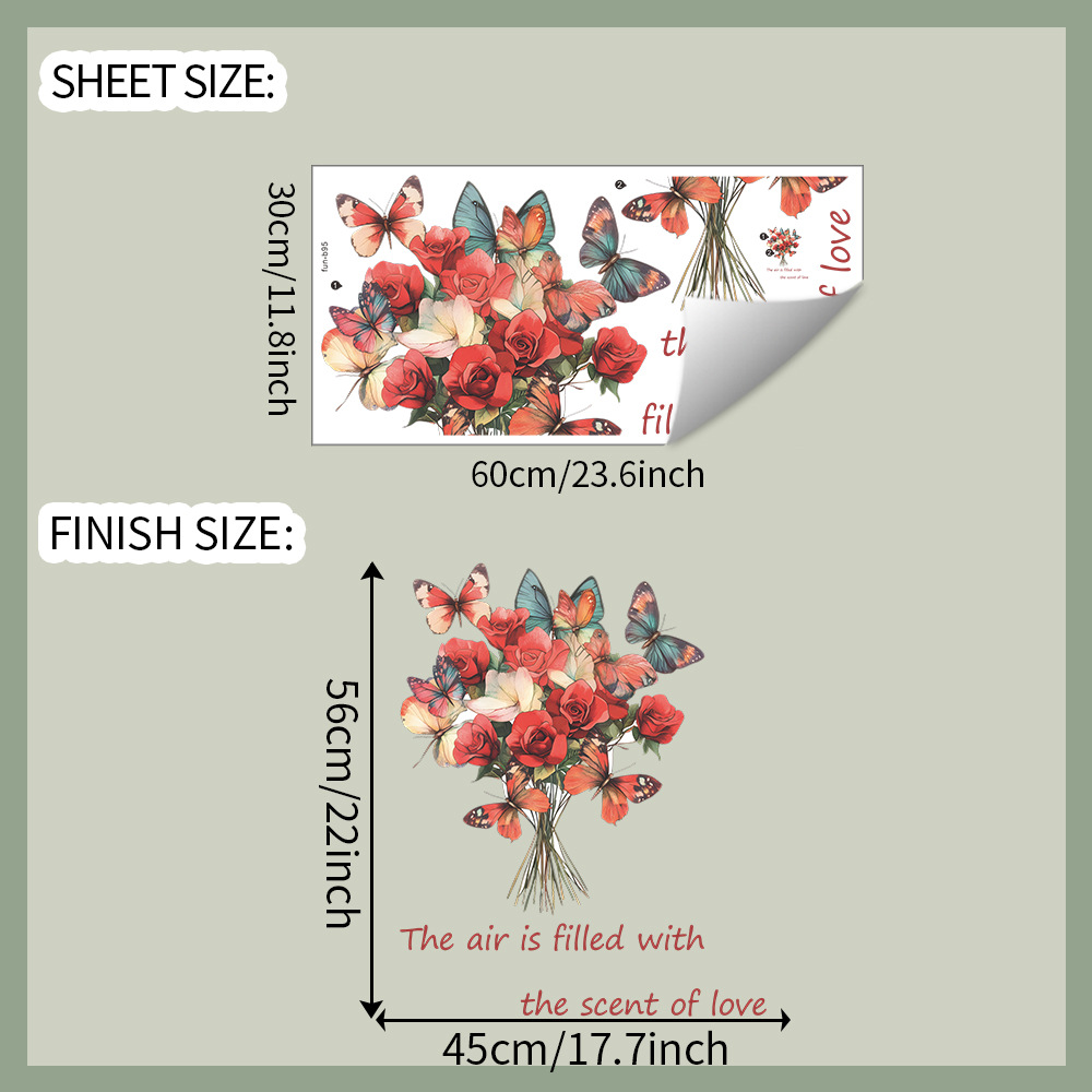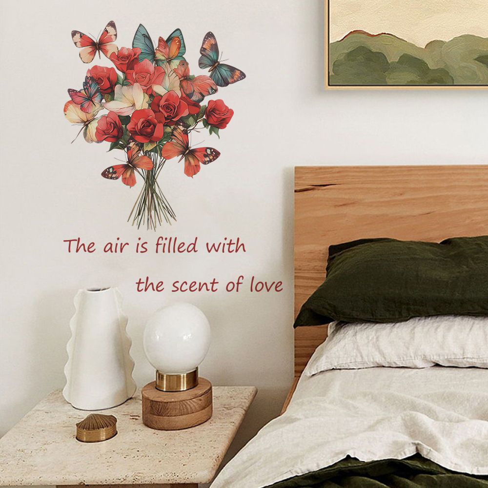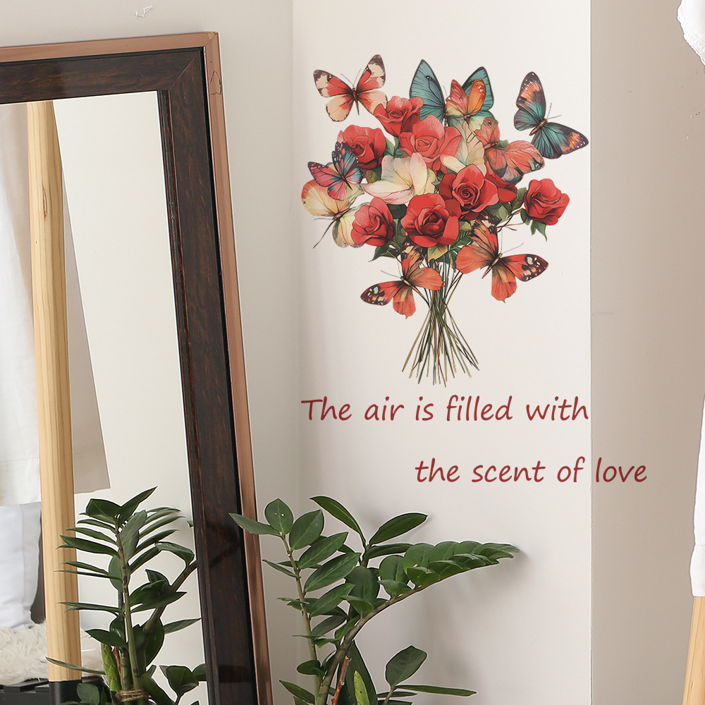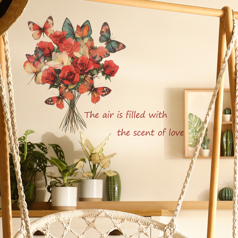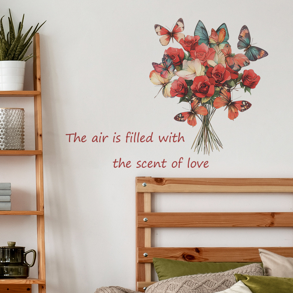 Fun-b95 장미 나비 사랑 영어 슬로건 침실 거실 입구 홈 배경 미화 벽 스티커스토어 가기