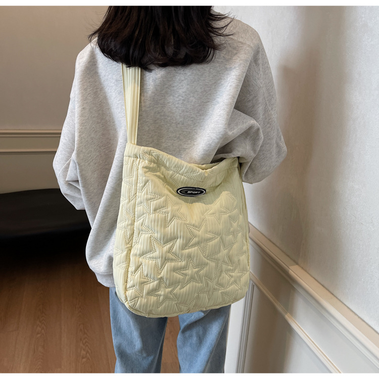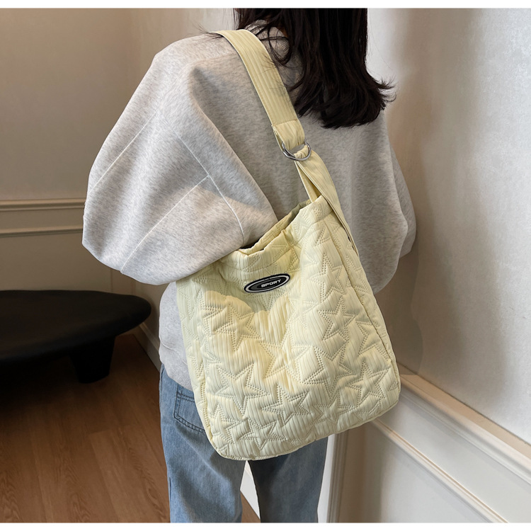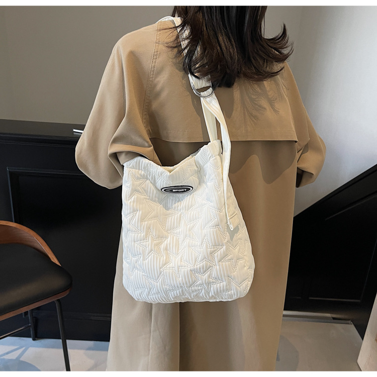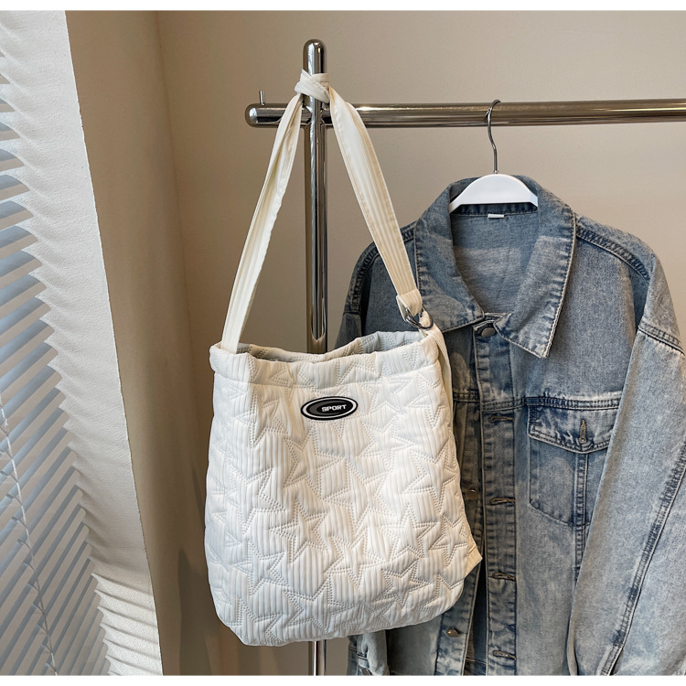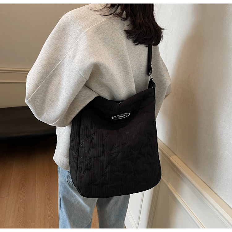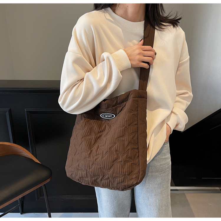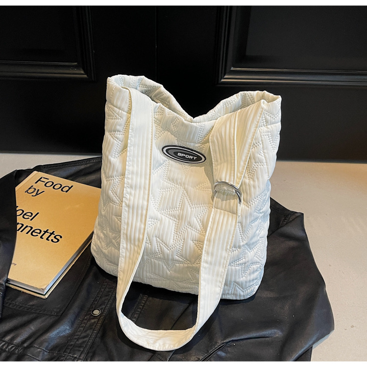국경 2024 가을과 겨울 하이 엔드 면화 채워진 토트 백 퀼트 백 한국식 틈새 디자인 통근 가방 크로스 바디 백 트렌디스토어 가기
