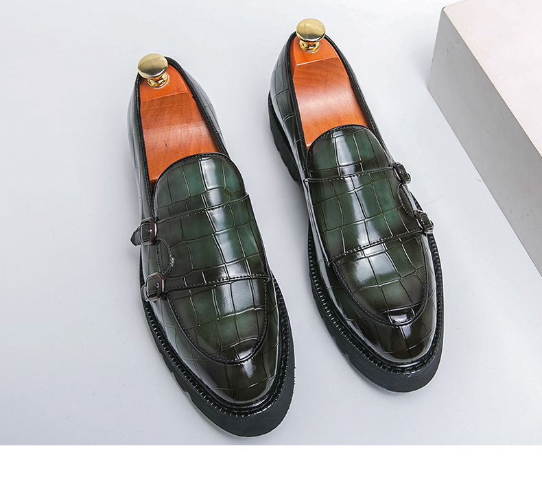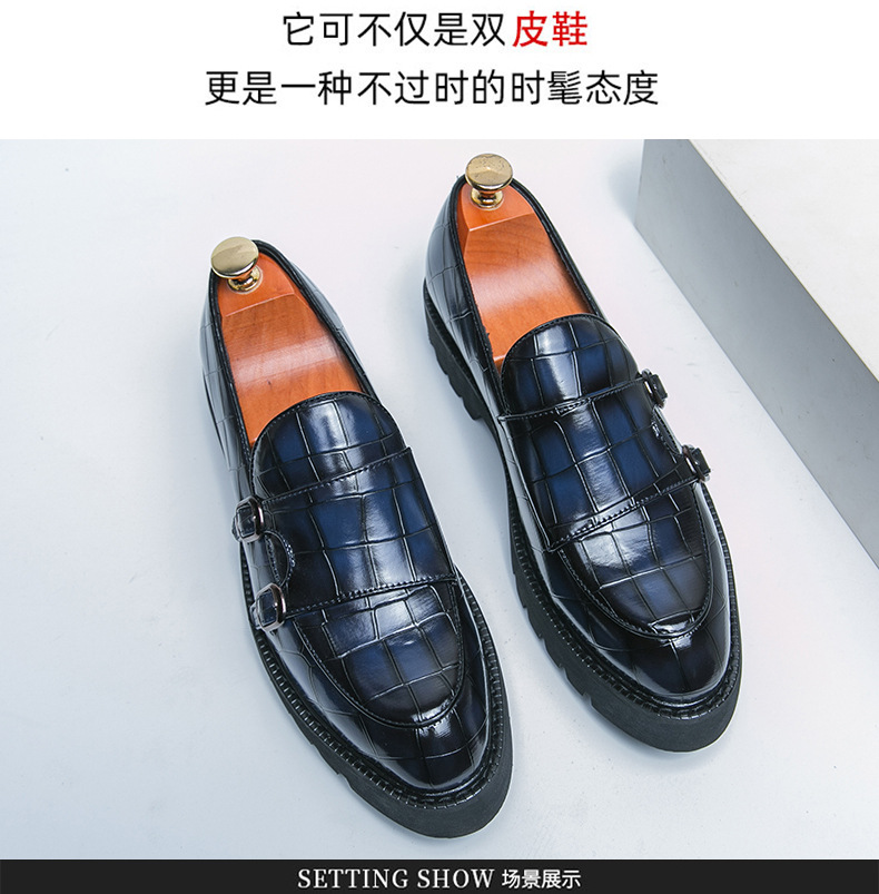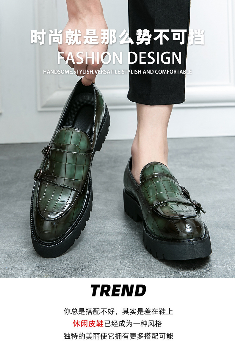 새로운 플러스 사이즈 사이드 핀 버클 로퍼 남성 특허 가죽 반짝이는 두꺼운 힐 플랫폼 높이 증가 스타일리스트 캐주얼 가죽 신발스토어 가기