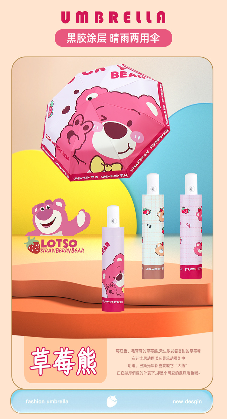 Kapibala 딸기 곰 비닐 비 또는 빛 태양 우산 새로운 2차원 만화 우산 맞춤형 로고스토어 가기