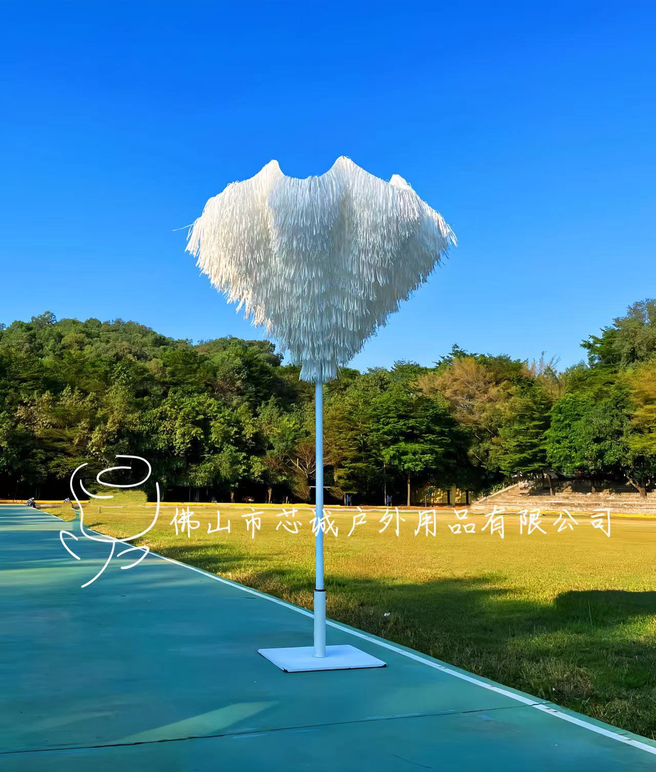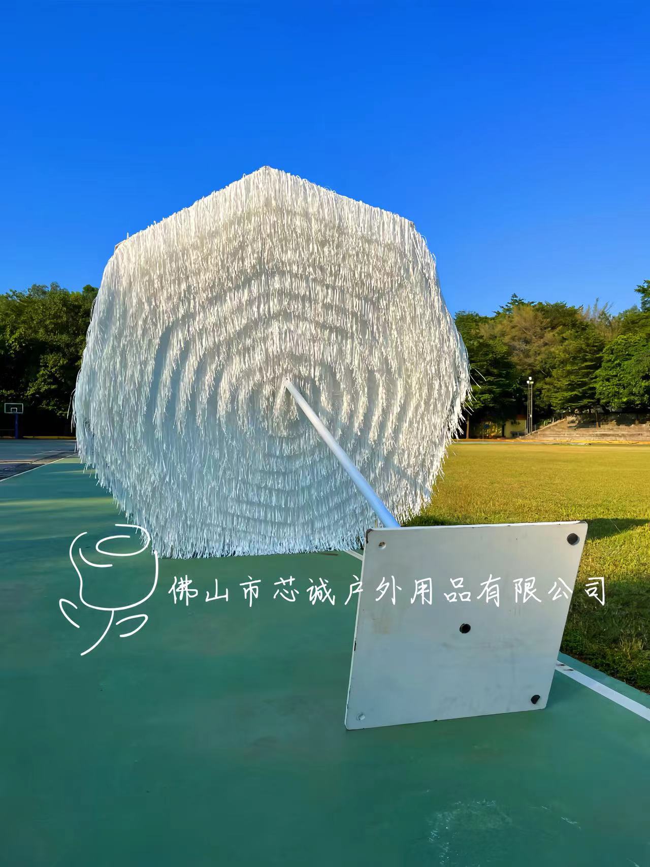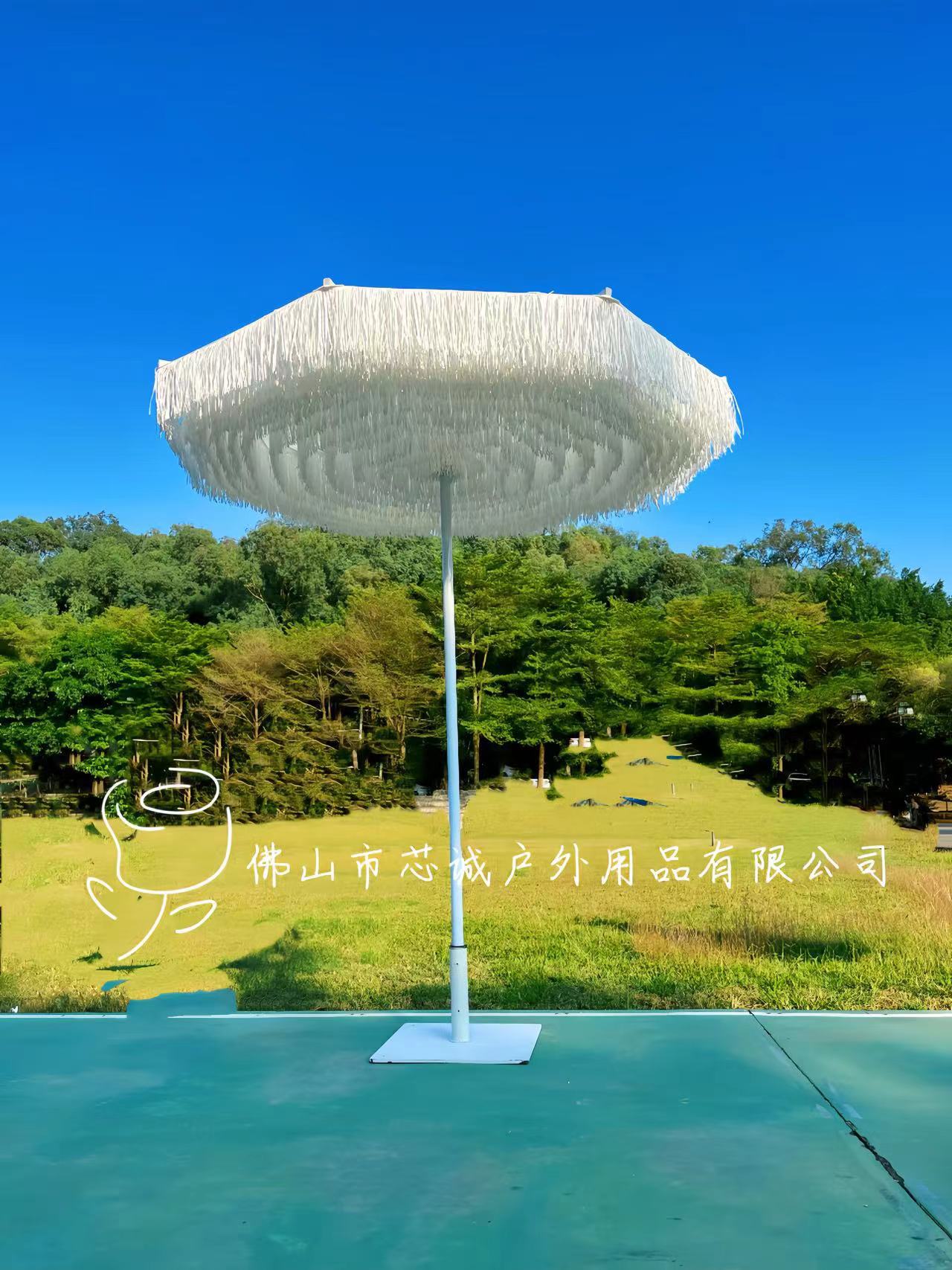 호텔 테라스 실내 및 실외 장식품 Tassel 중간 칼럼 우산 코트야드 알루미늄 합금 우산 랙 인공 잔디 야외 햇빛 우산스토어 가기