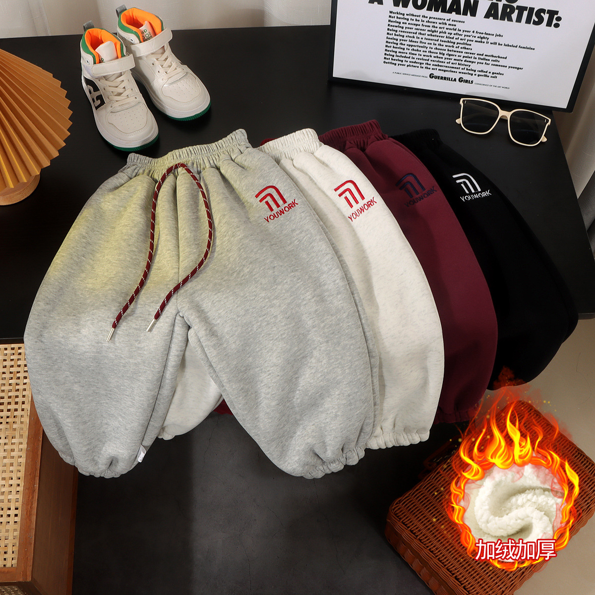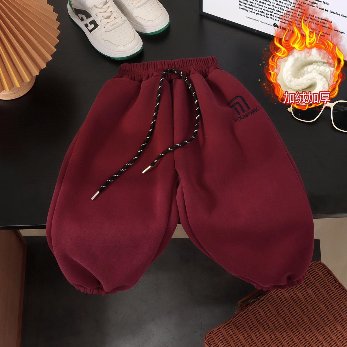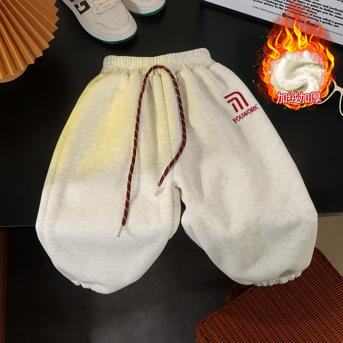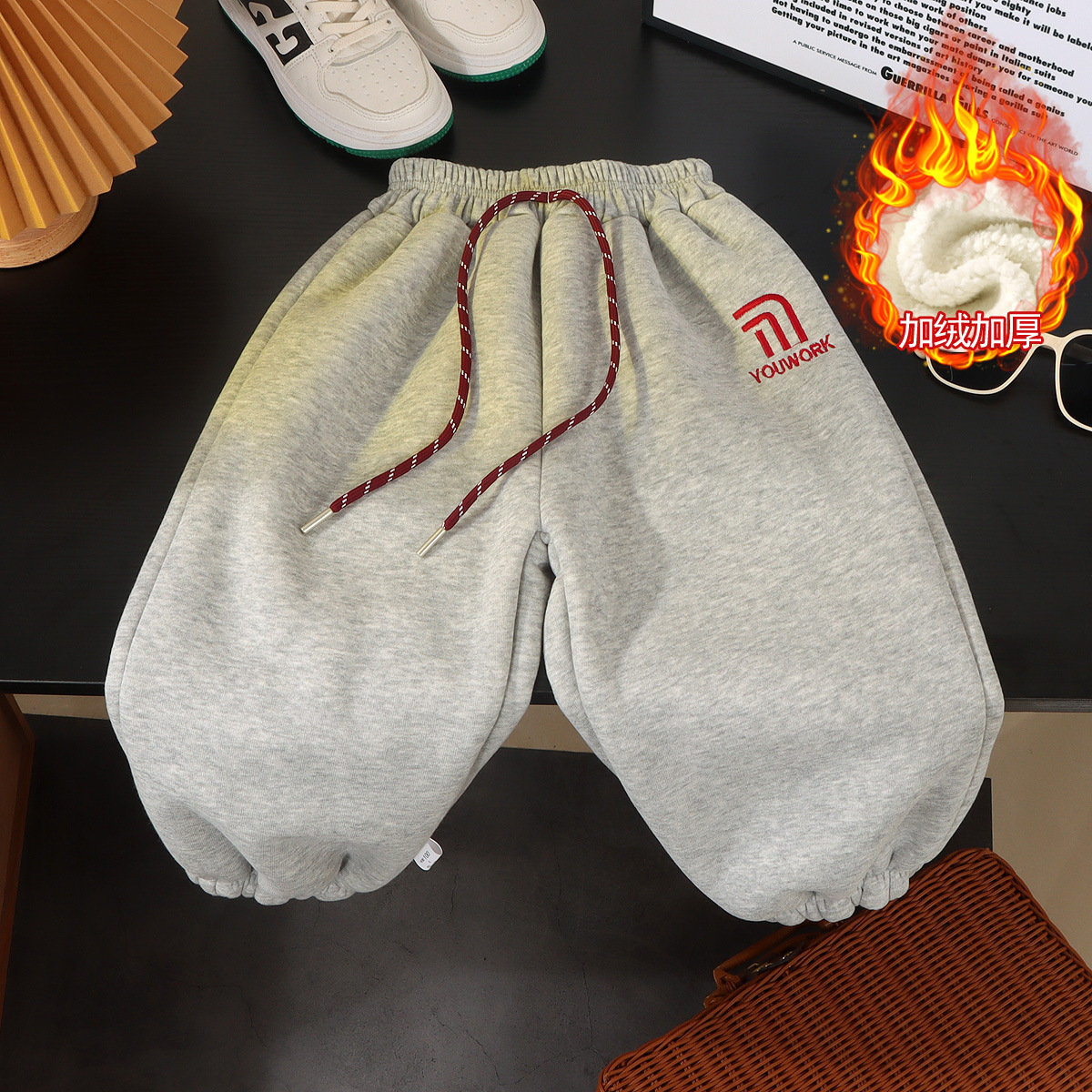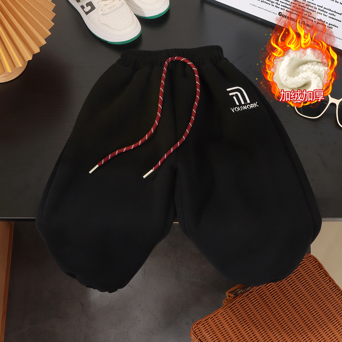가을과 겨울 소년 소녀 레깅스를위한 어린이 한국식 자수 바지 2024 기모 가을과 겨울을위한 두꺼운 서양식 따뜻한 바지