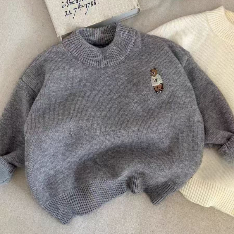 어린이 남녀 어린이 스웨터 기모 두꺼운 원피스 벨벳 크루 넥 새로운 니트 스웨터 가을과 겨울베이스 풀오버 따뜻함스토어 가기