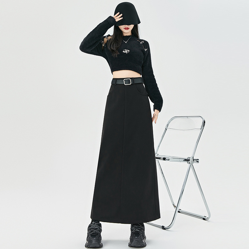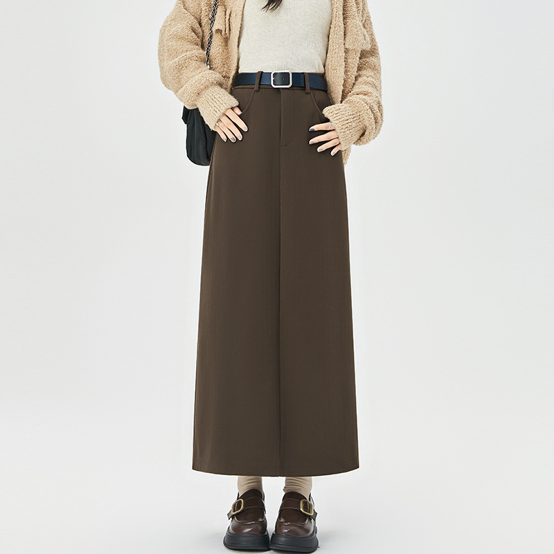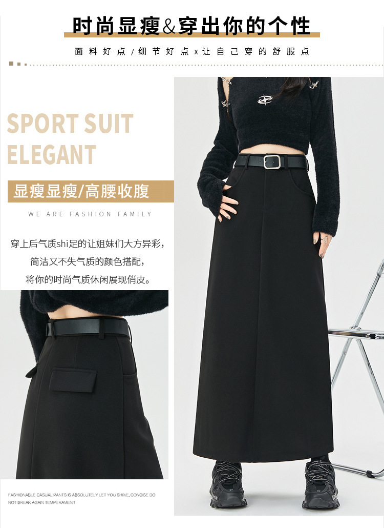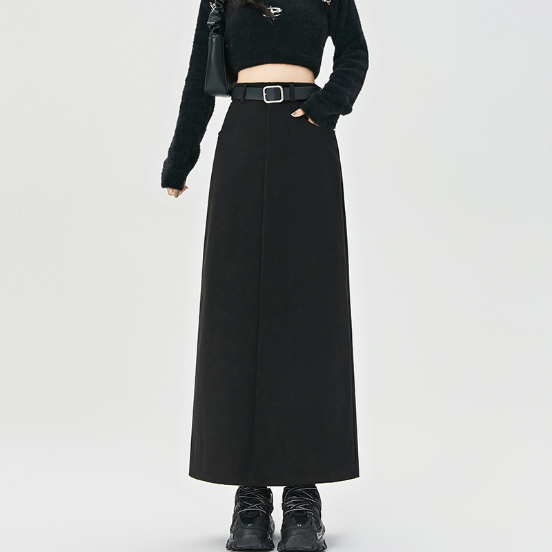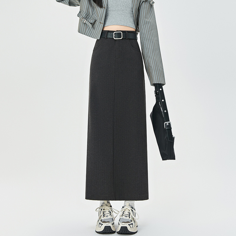 두꺼운 모직 세트 스커트 여성의 가을과 겨울 새로운 높은 허리 슬리밍 스트레이트 스플릿 긴 엉덩이 긴 스커트스토어 가기
