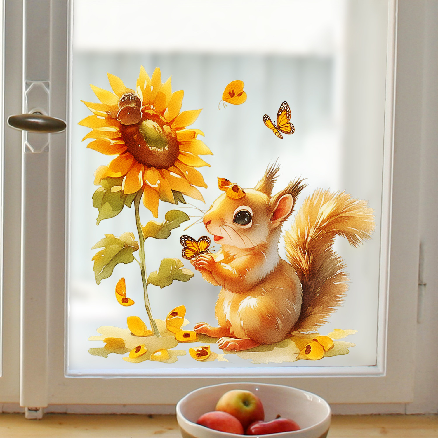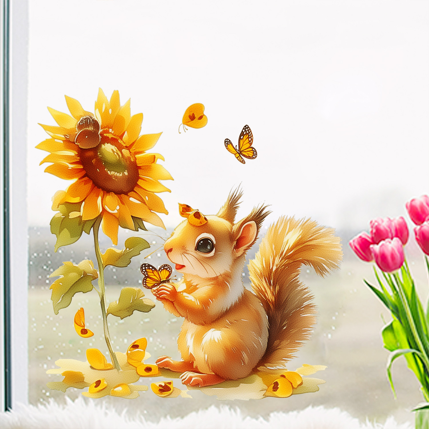 국경 간 아마존 대외 무역 해바라기와 작은 동물 다람쥐 토끼 사랑스러운 장식 홈 창 스티커