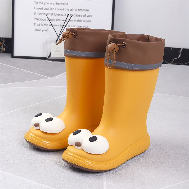 어린이 비 부츠 큰 눈 귀여운 방수 고무 신발 유치원 소년 소녀를위한 미끄럼 방지 장화