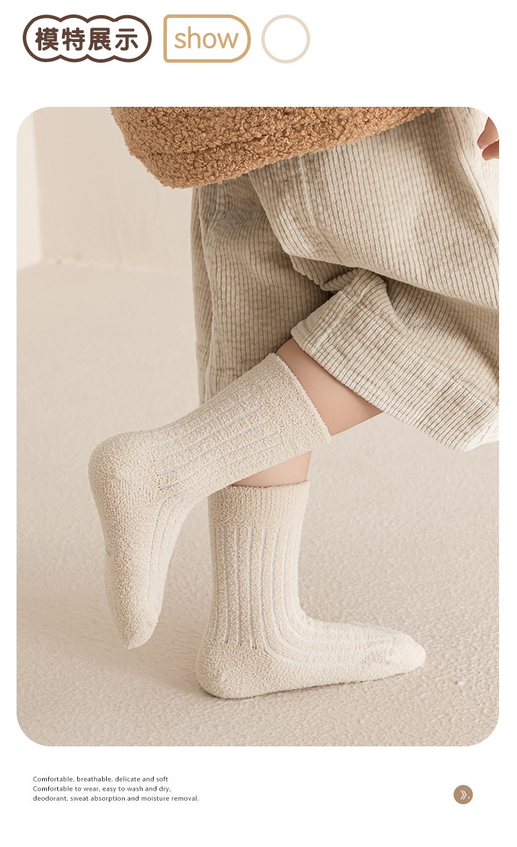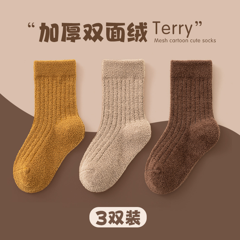 겨울 두꺼운 어린이 양말 도매 단색 Maillard 양면 벨벳 따뜻한 소년과 소녀 기모 아기 두꺼운 빨간색 양말스토어 가기