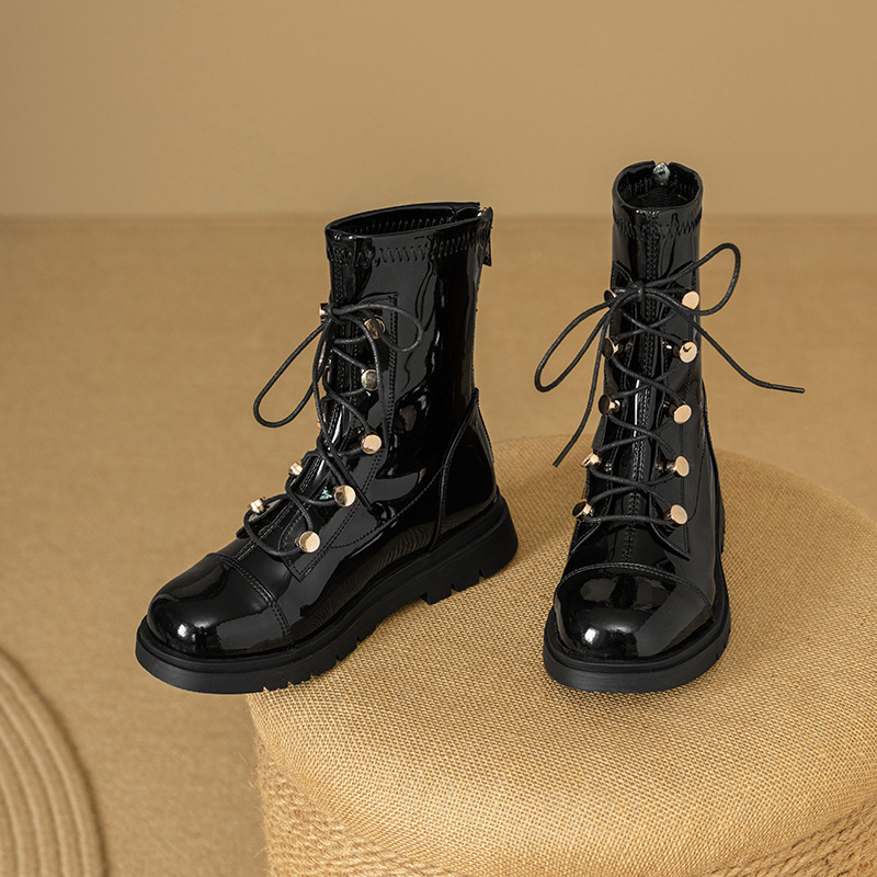 걸스 쇼트 부츠 가을 및 겨울 새로운 어린이 마틴 부츠 중 · 대형 어린이 및 학생을위한 소프트 하단 블랙 퍼포먼스 여성 쇼트 부츠