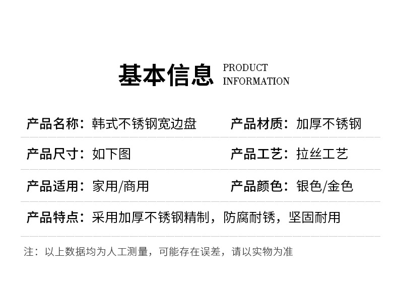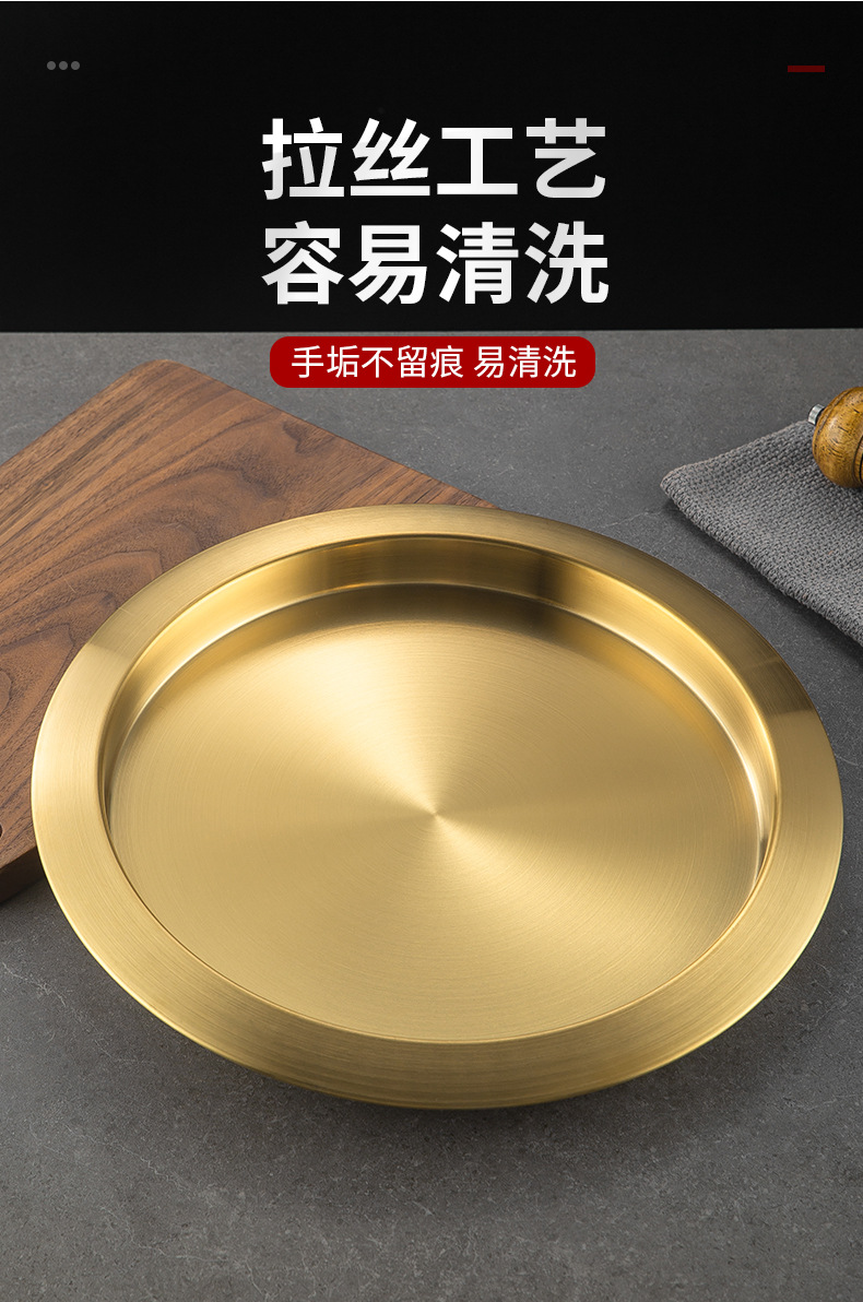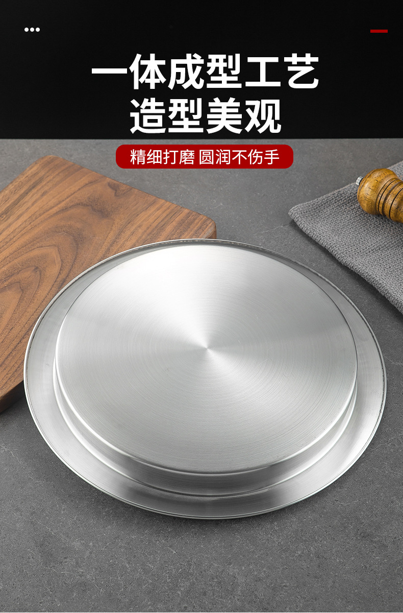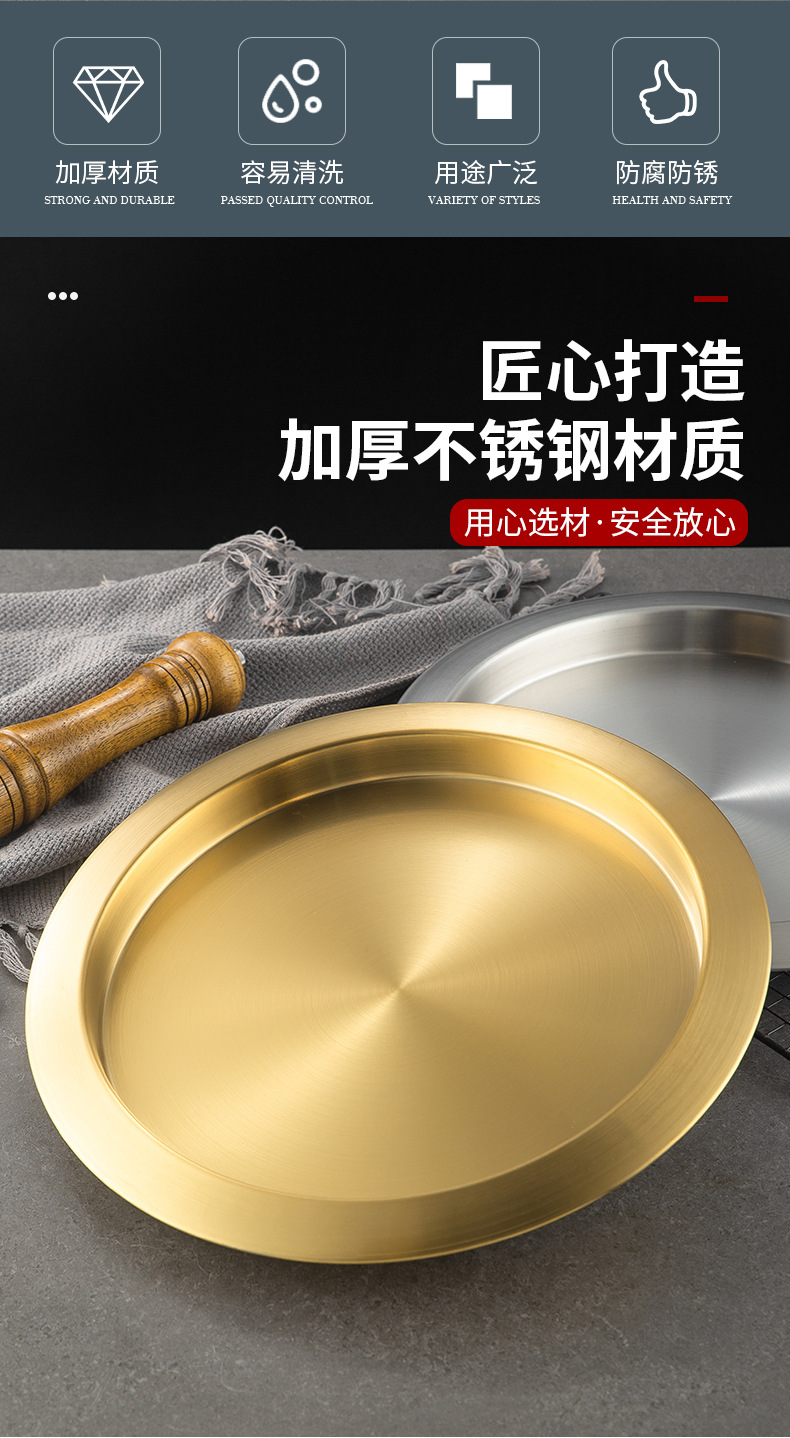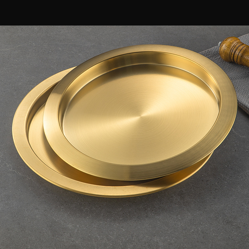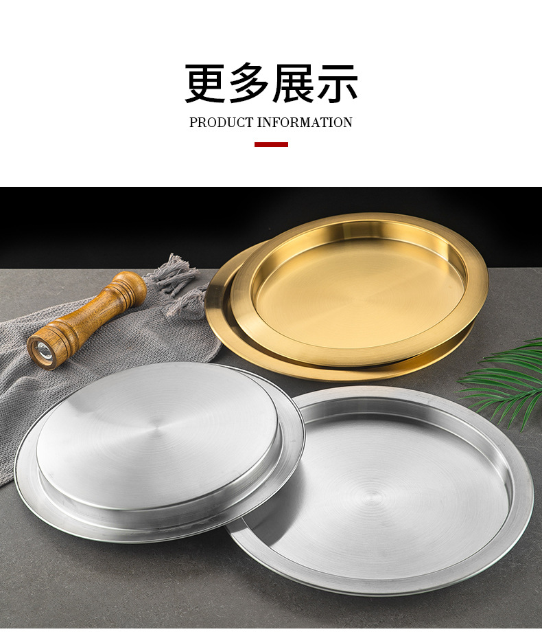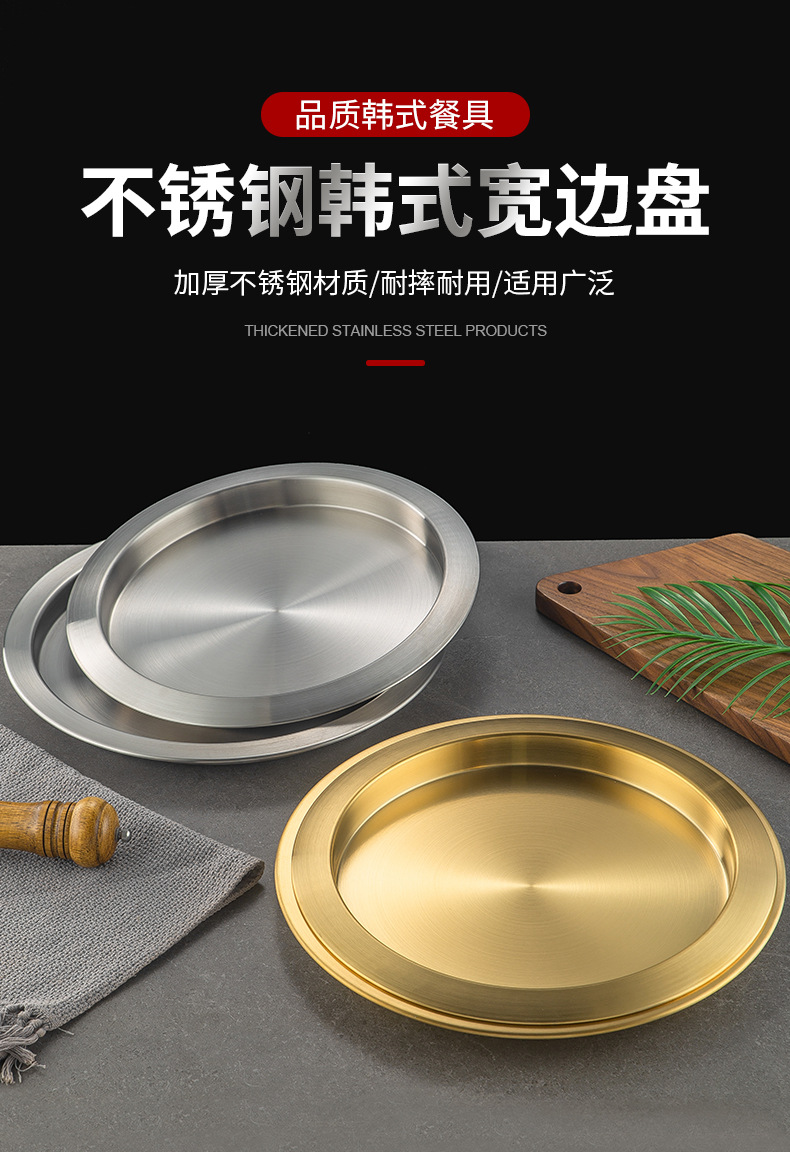 한국식 두꺼운 스테인레스 스틸 싱글 레이어 넓은 챙이 쇠고기 플레이트 황금 대형 디스크 상업용 냄비 레스토랑 반찬 지방 소 디스크