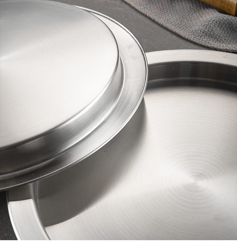 한국식 두꺼운 스테인레스 스틸 싱글 레이어 넓은 챙이 쇠고기 플레이트 황금 대형 디스크 상업용 냄비 레스토랑 반찬 지방 소 디스크스토어 가기