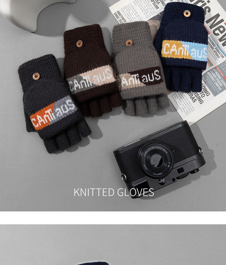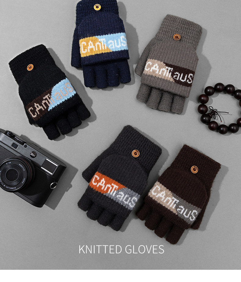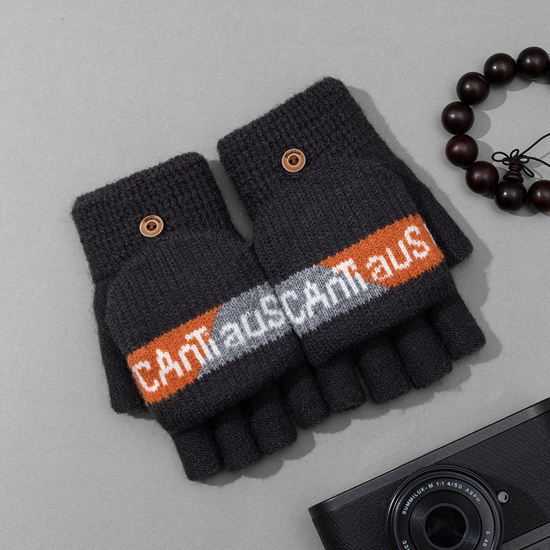 새 겨울 자카드 글자를 닦은 따뜻한 성인 소년 자전거 쓰기 학생 반 손가락 뒤집기 겨울 장갑