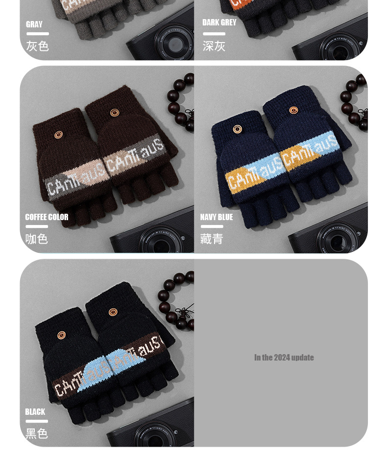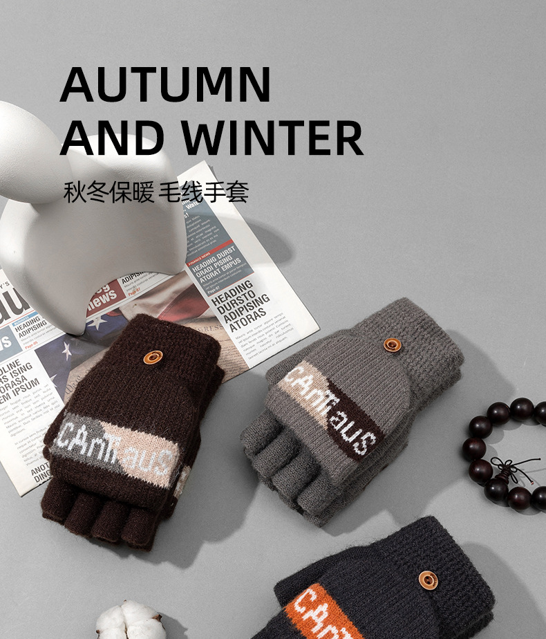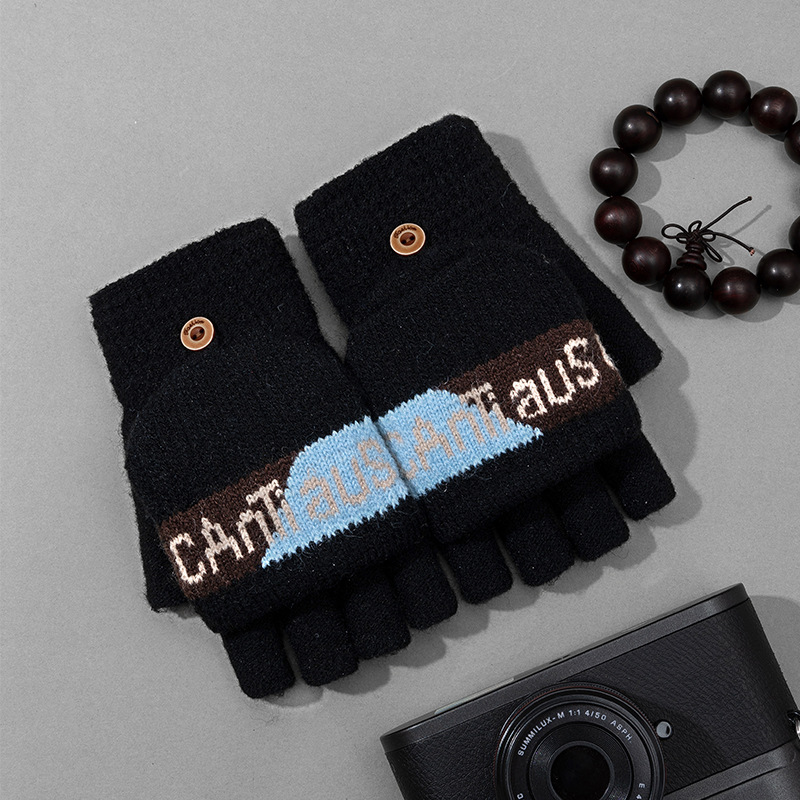 새 겨울 자카드 글자를 닦은 따뜻한 성인 소년 자전거 쓰기 학생 반 손가락 뒤집기 겨울 장갑스토어 가기