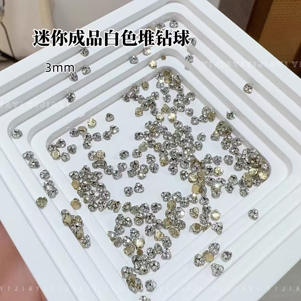 3MM 샴페인 컬러 네일 아트 파일 드릴 볼 완제품 버스트 플래시 미니 스몰 사이즈 합금 파일 드릴 작은 파일 드릴 장식 액세서리