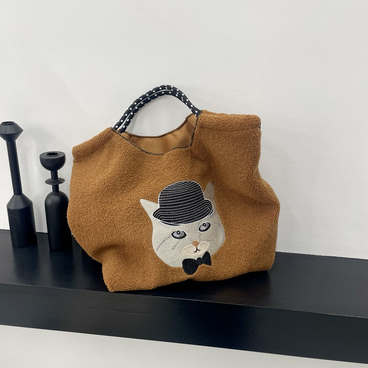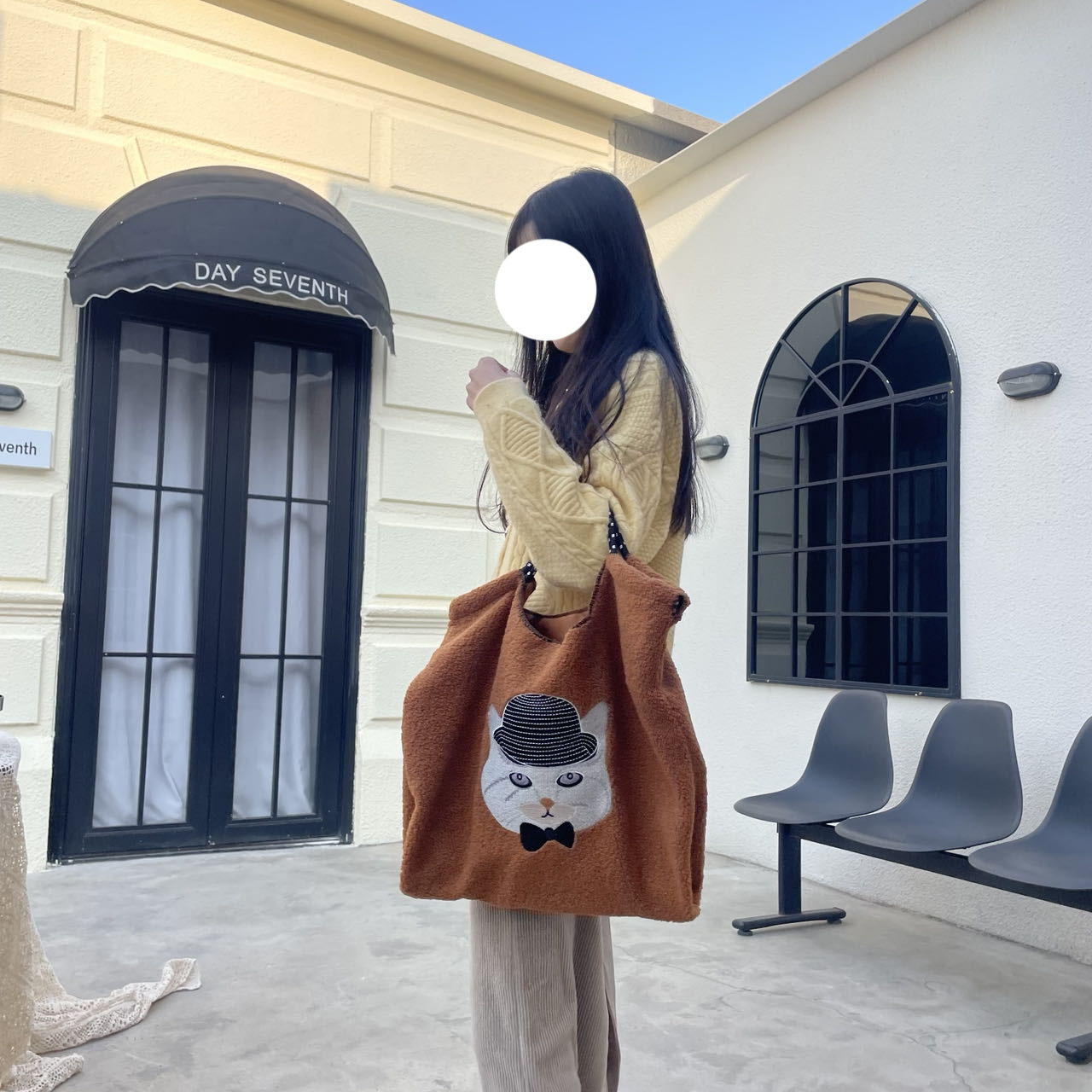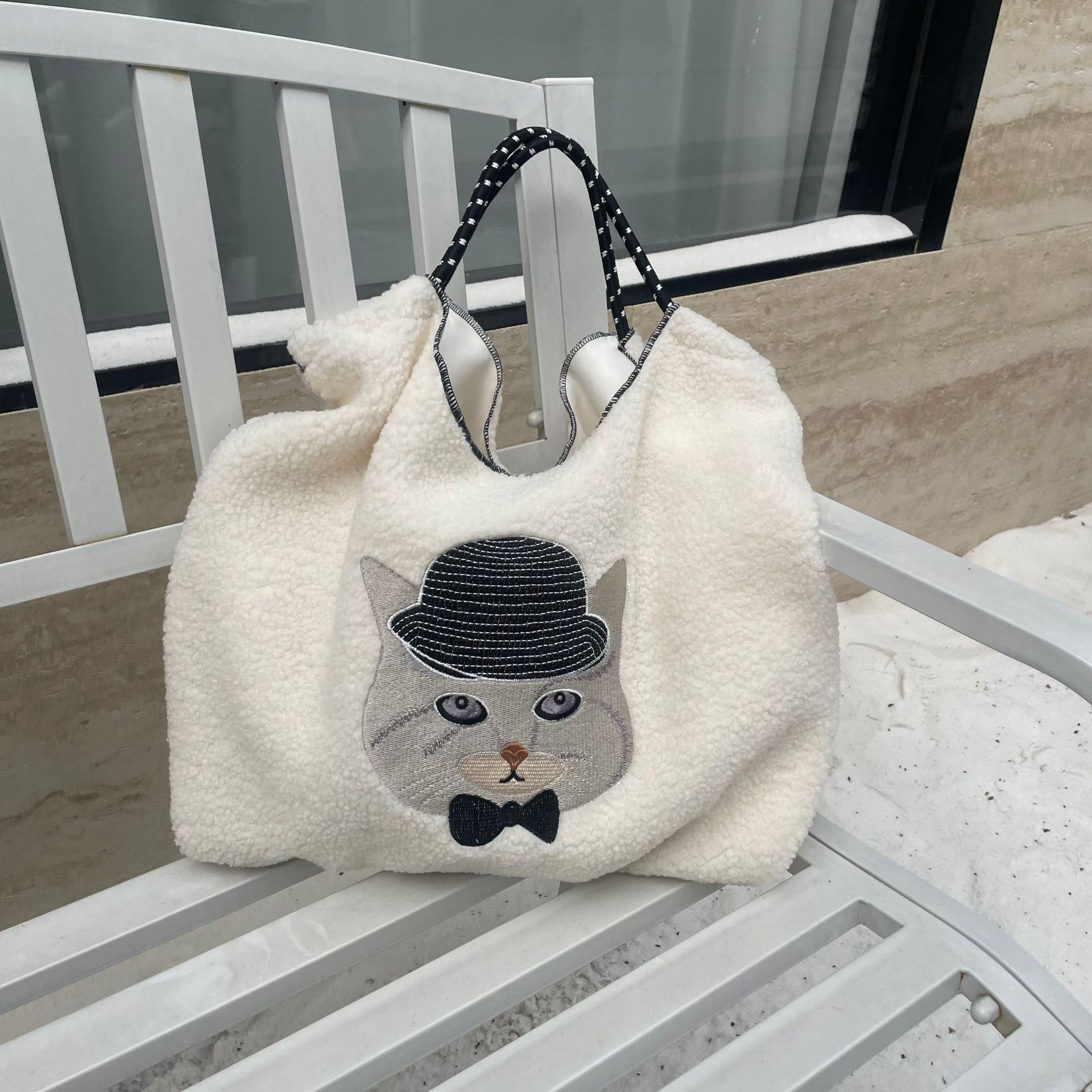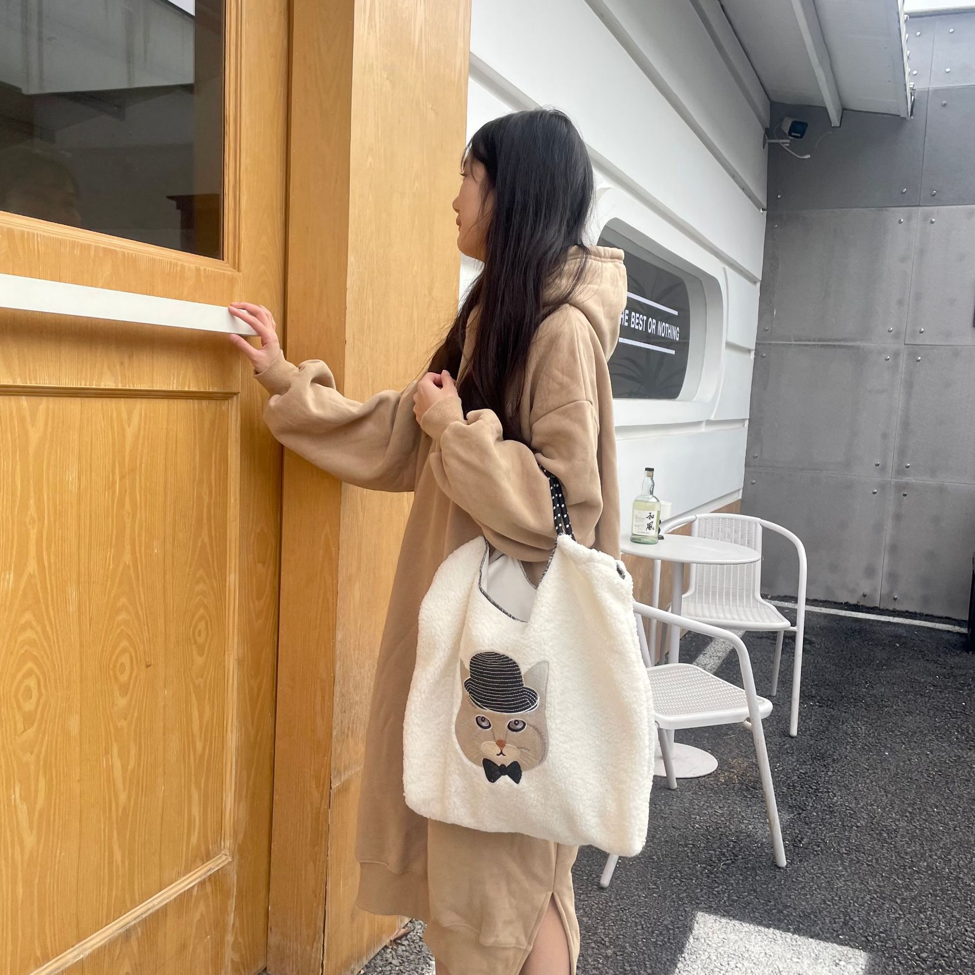 일본식 귀여운 고양이 자수 양고기 양털 가방 여성의 가을과 겨울 새로운 대용량 모피 핸드백 어깨 가방스토어 가기