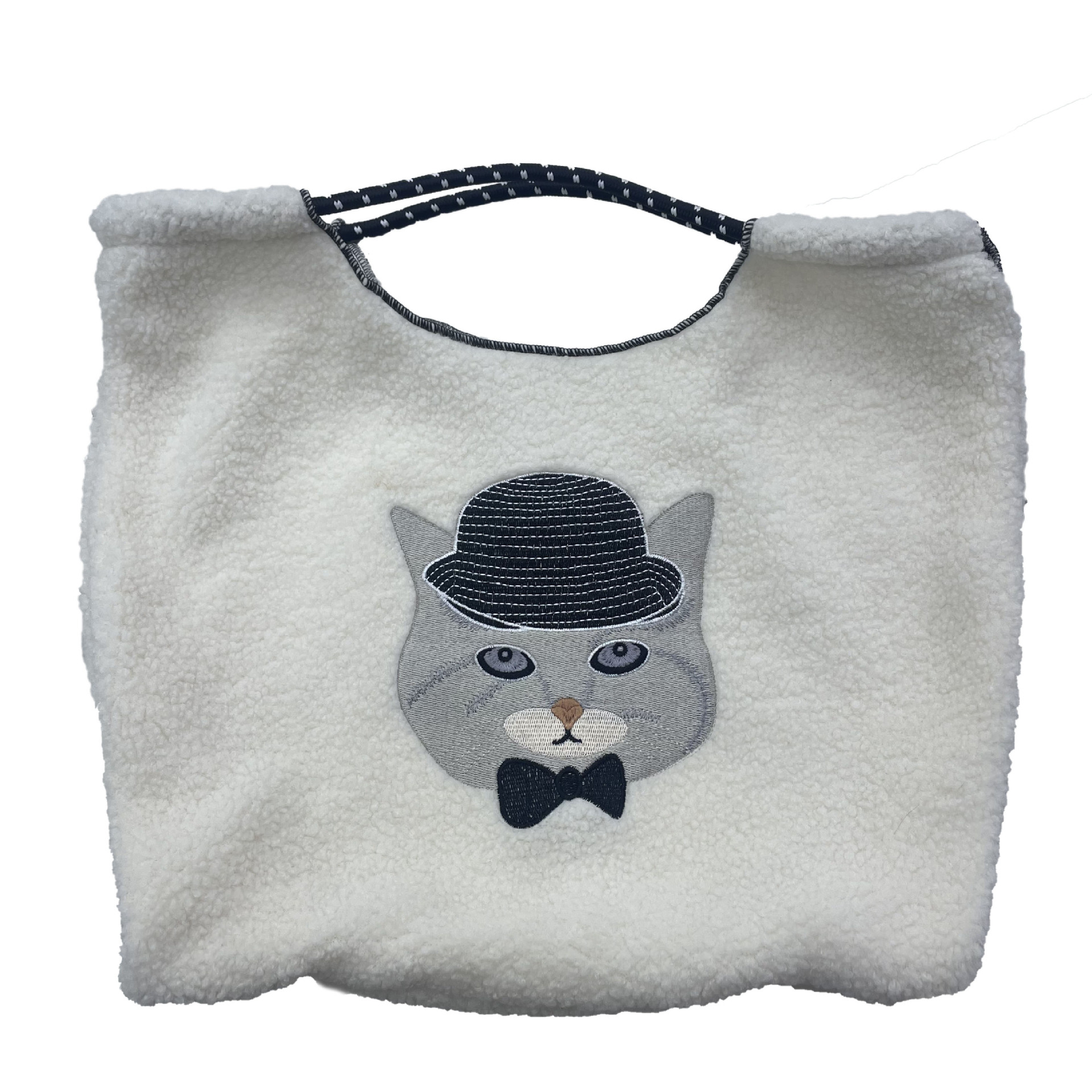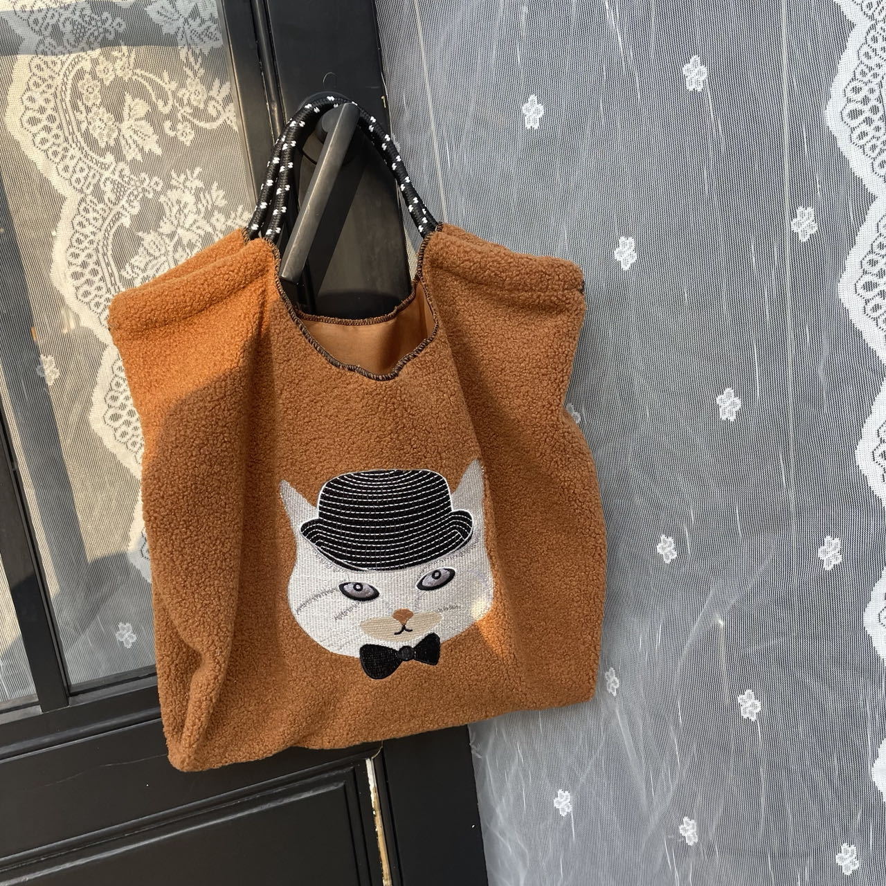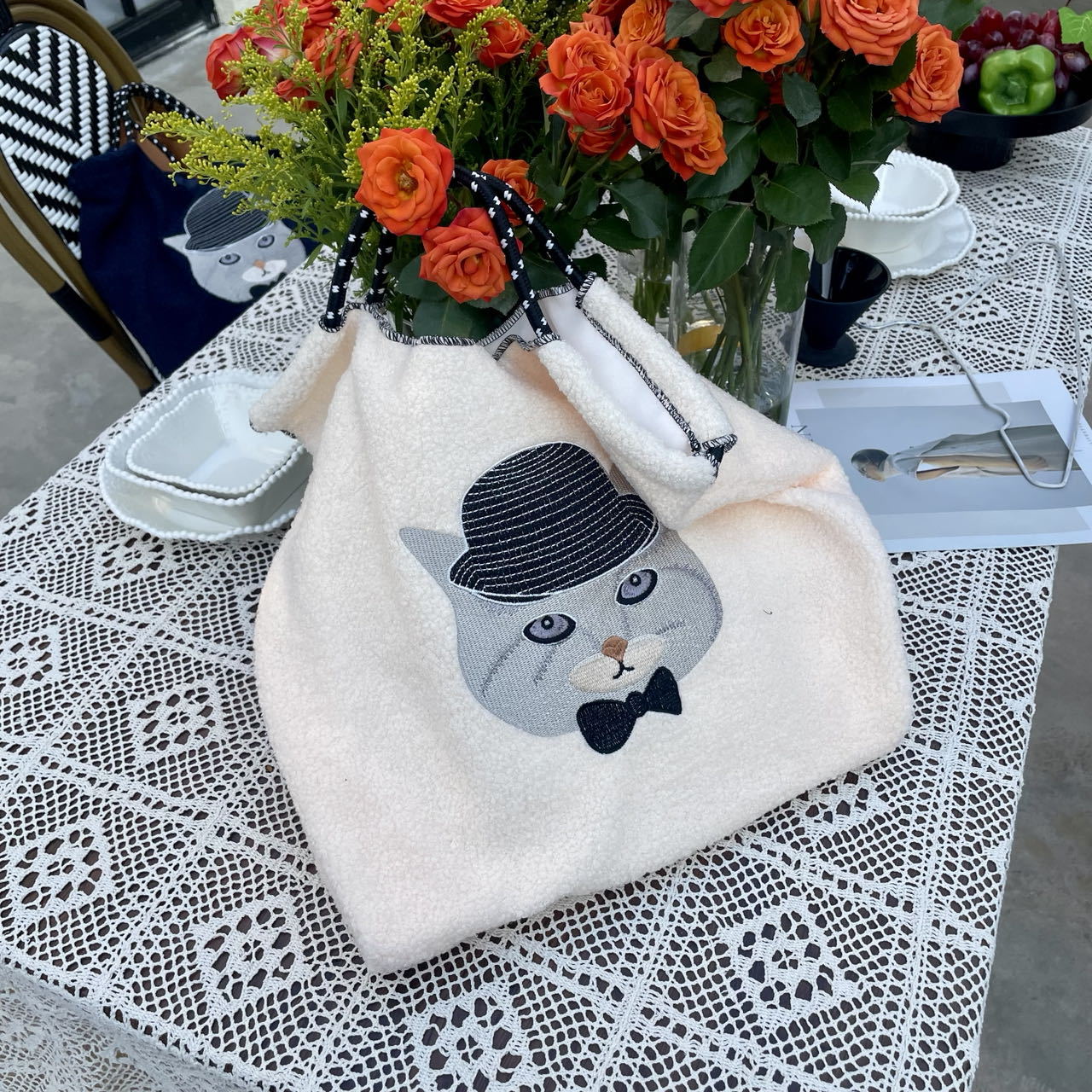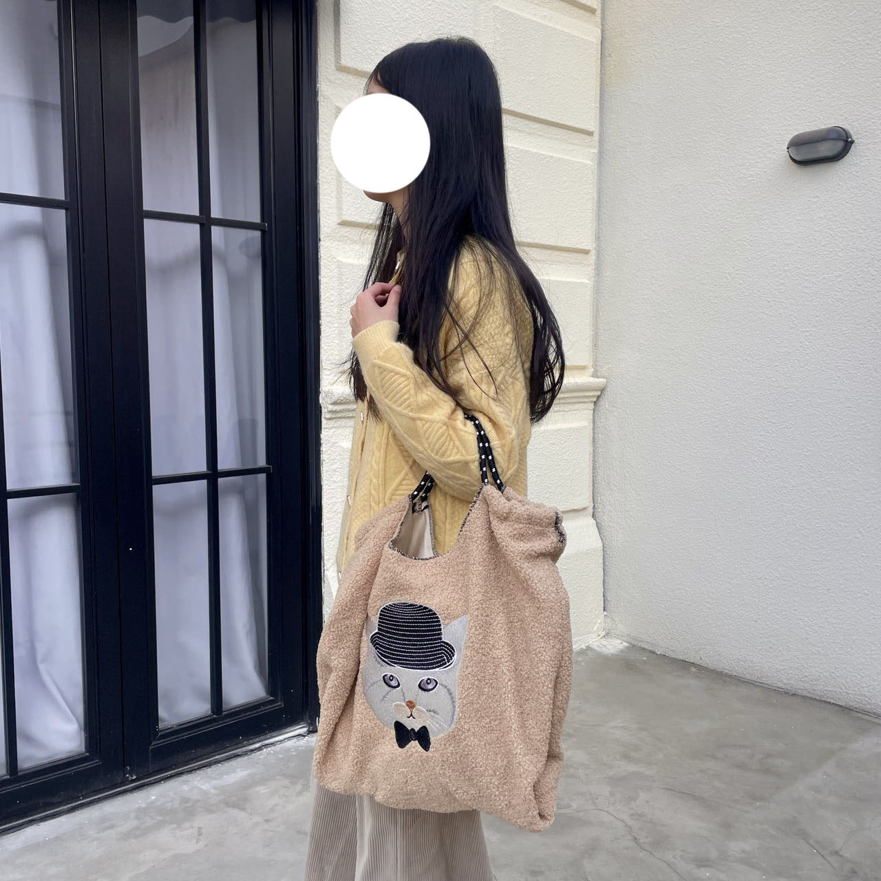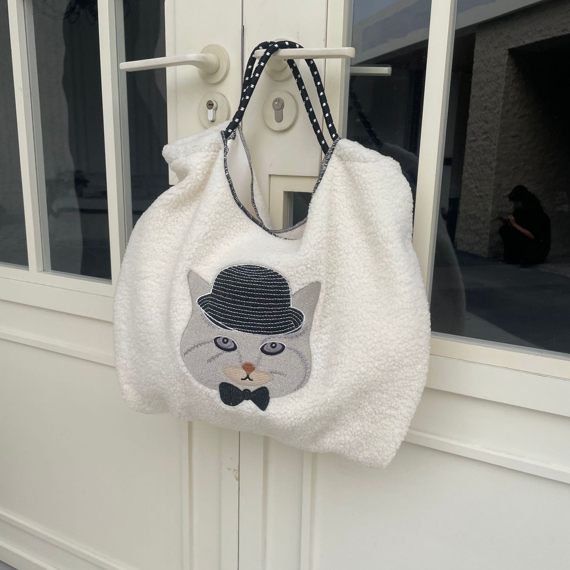 일본식 귀여운 고양이 자수 양고기 양털 가방 여성의 가을과 겨울 새로운 대용량 모피 핸드백 어깨 가방스토어 가기