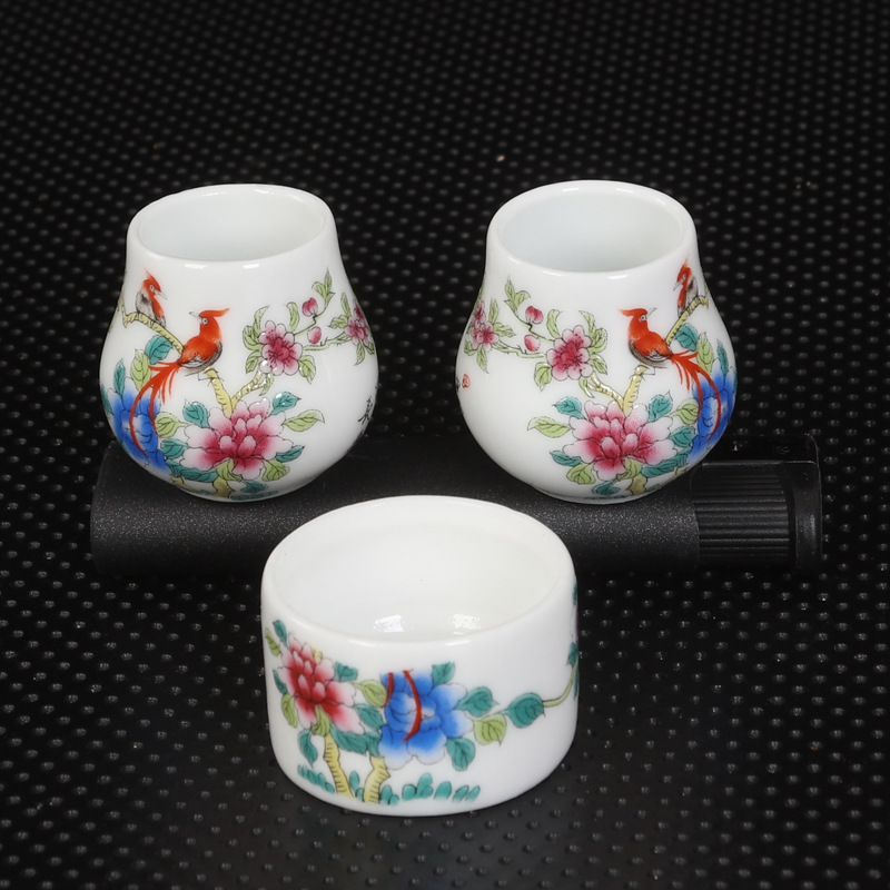 수국 새 음식 냄비 톱 턱 레드 3 피스 세트 새 음식 냄비 새 음식 컵 새 케이지 액세서리 Jingdezhen 도자기 그릇