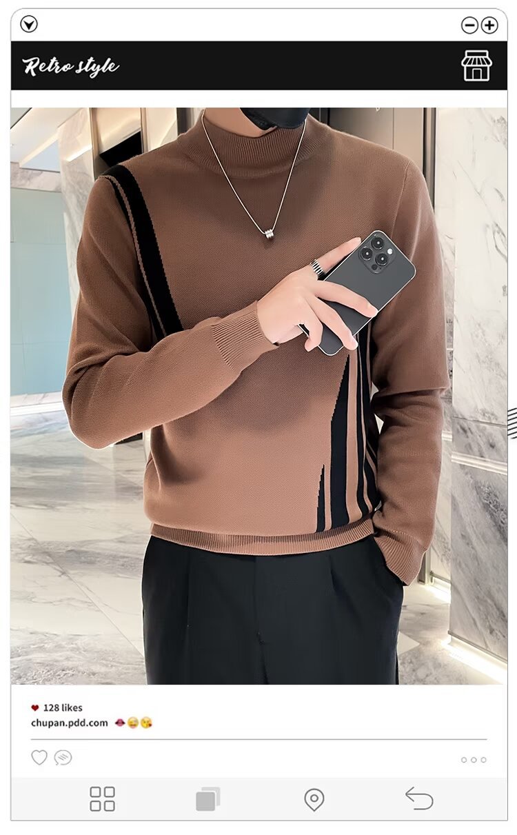 2024 가을과 겨울 새로운 남성 맞춤형 대비 컬러 하프 터틀넥 스웨터 한국 스타일 슬림 핏 유행 기본 레이어 스웨터 니트 스웨터스토어 가기