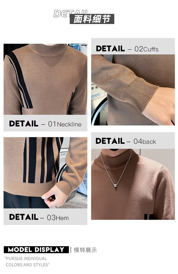 2024 가을과 겨울 새로운 남성 맞춤형 대비 컬러 하프 터틀넥 스웨터 한국 스타일 슬림 핏 유행 기본 레이어 스웨터 니트 스웨터