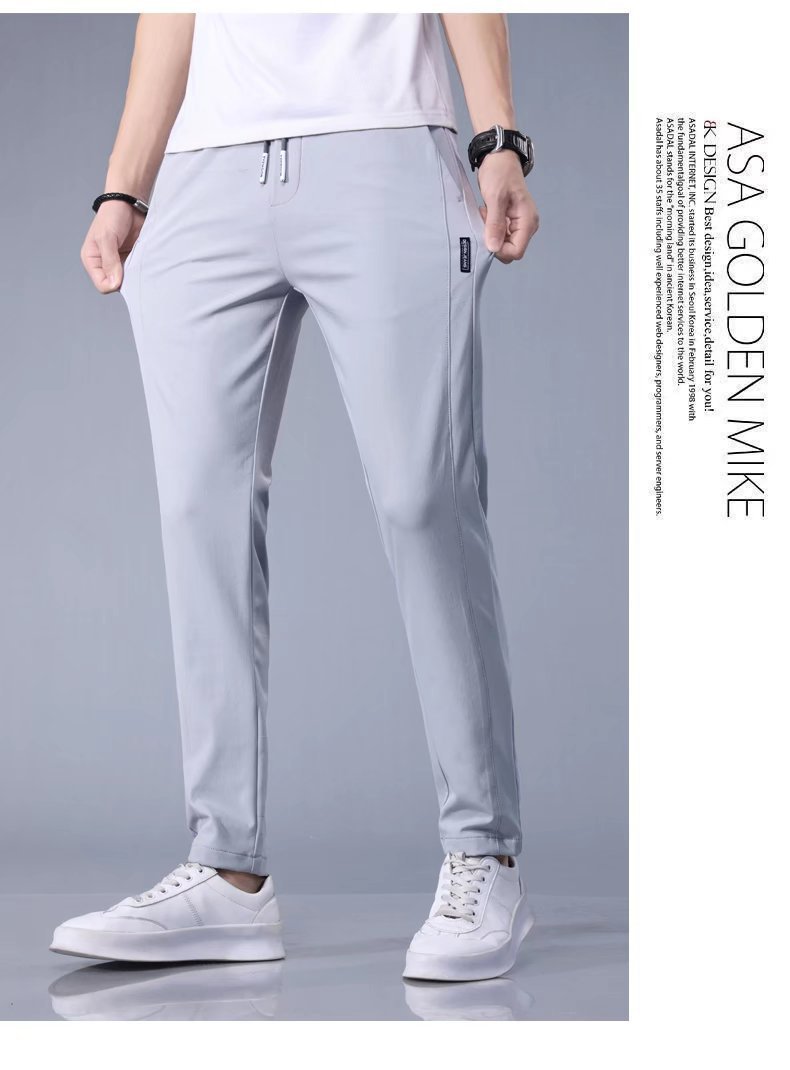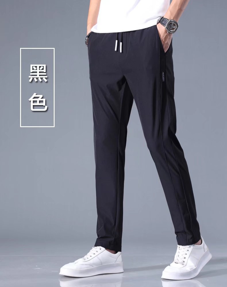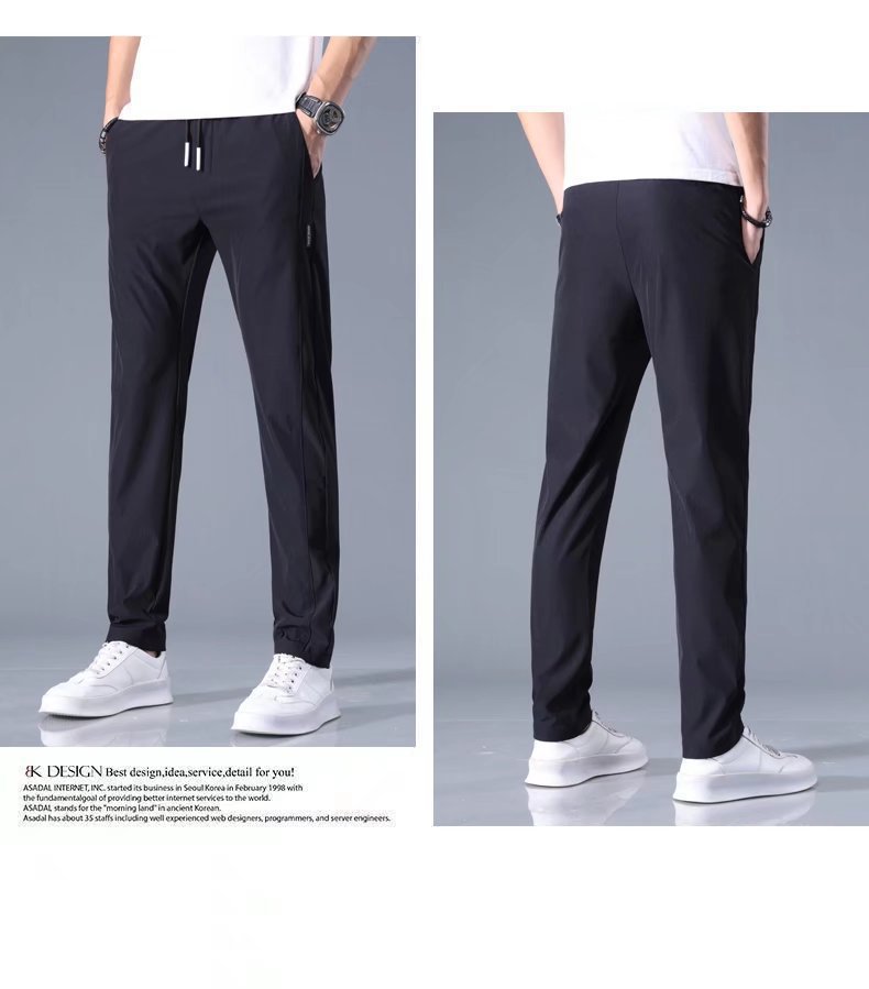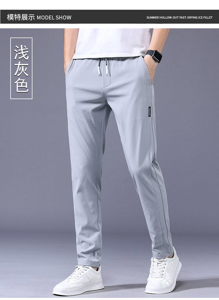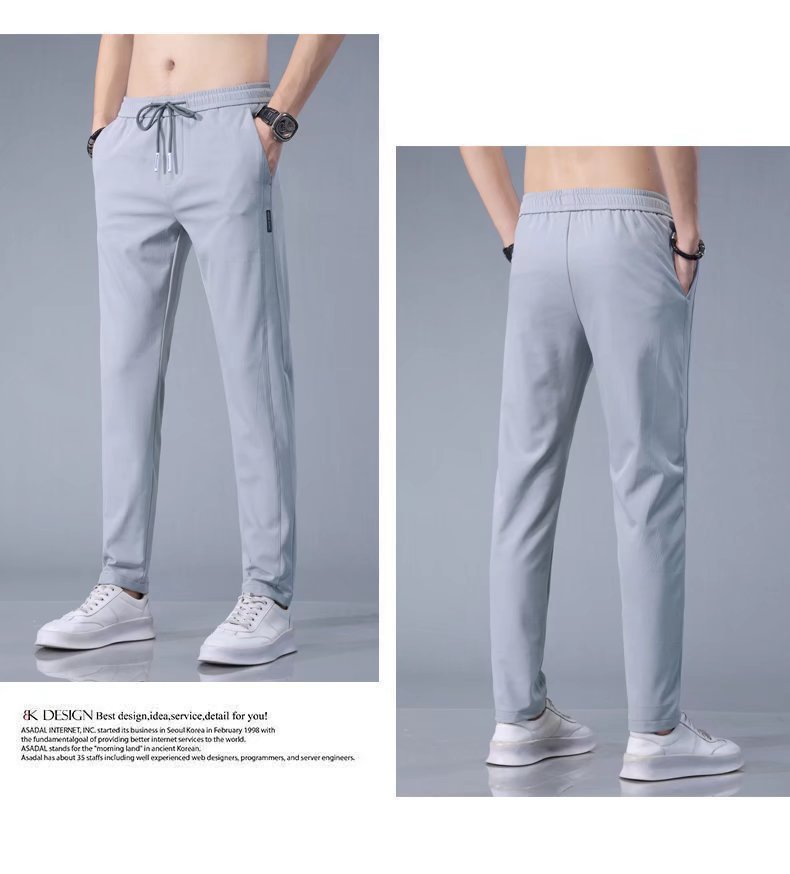 2023 한국 스타일 아이스 실크 캐주얼 바지 남자 여름 얇은 유행 느슨한 직선 통기성 스포츠 바지