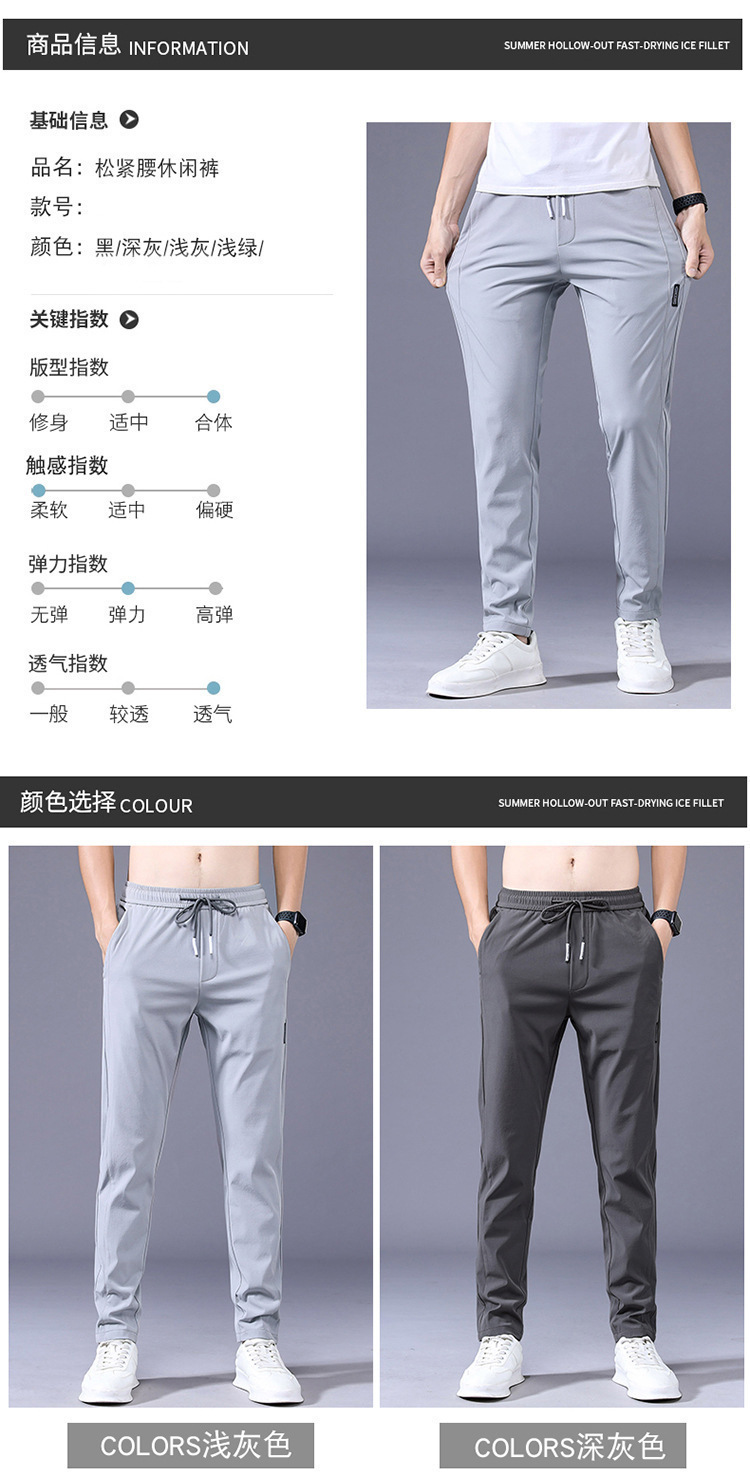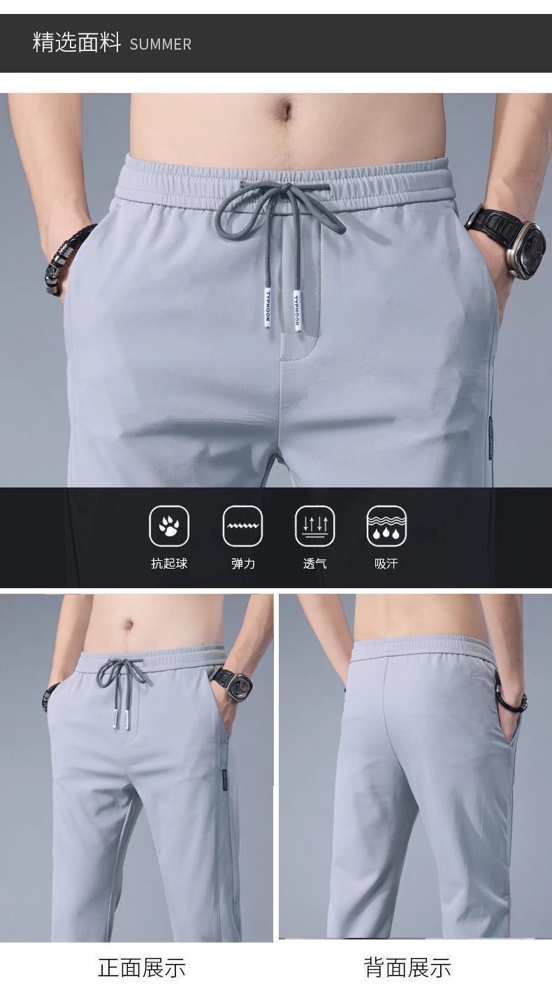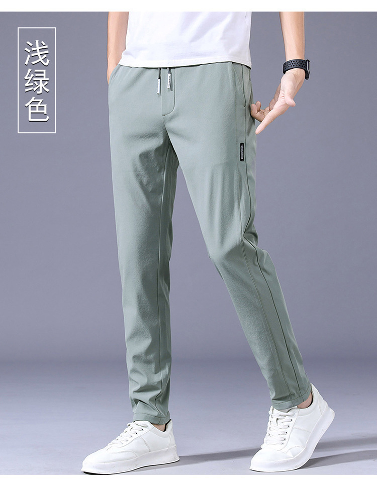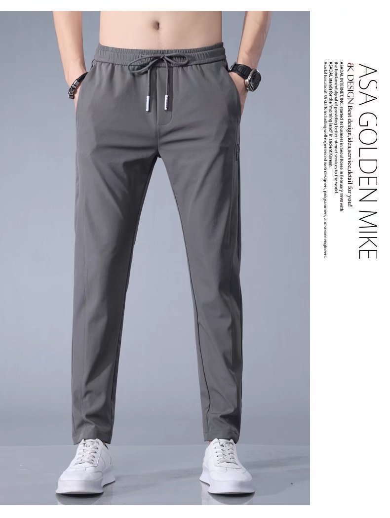 2023 한국 스타일 아이스 실크 캐주얼 바지 남자 여름 얇은 유행 느슨한 직선 통기성 스포츠 바지