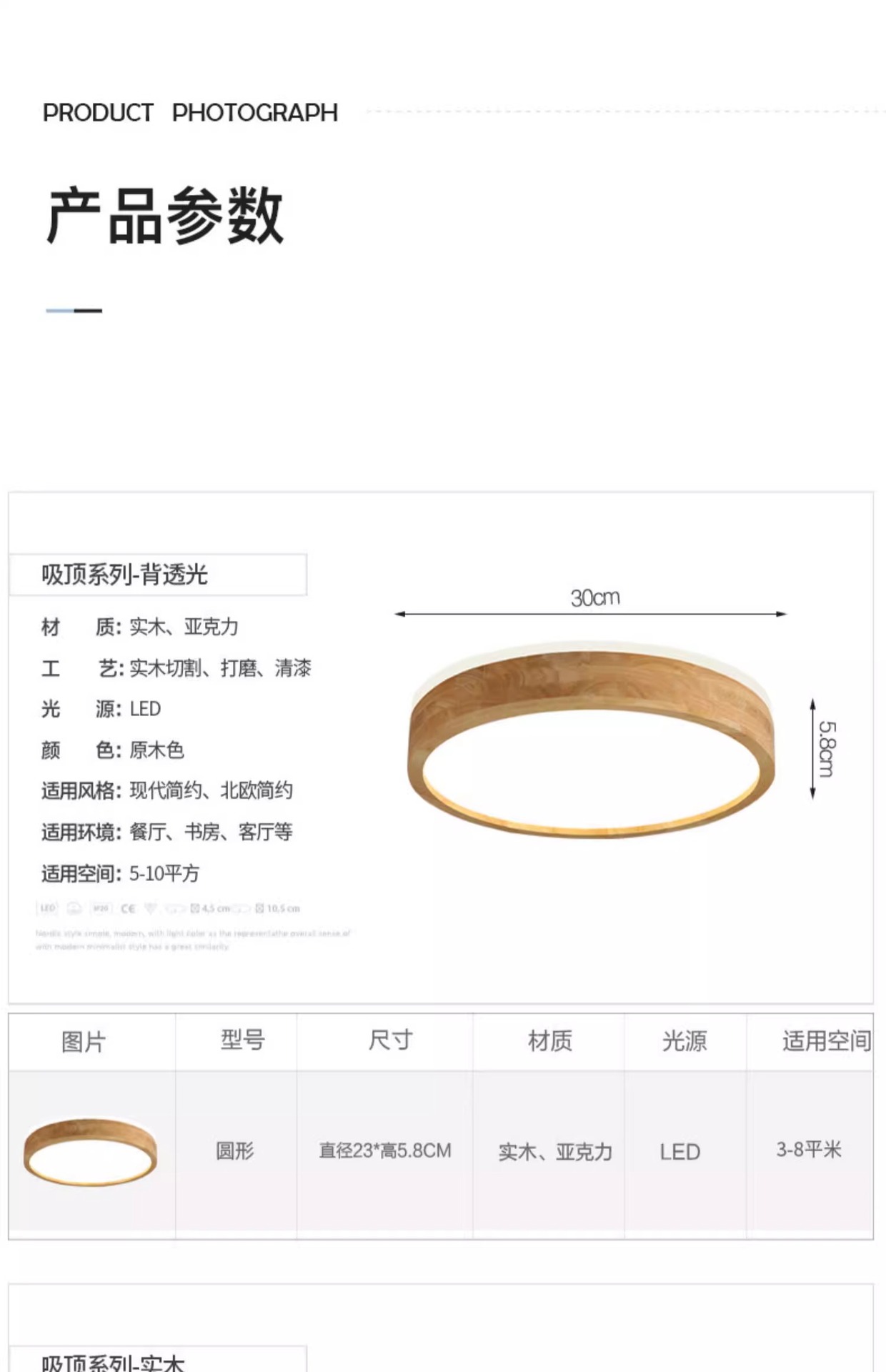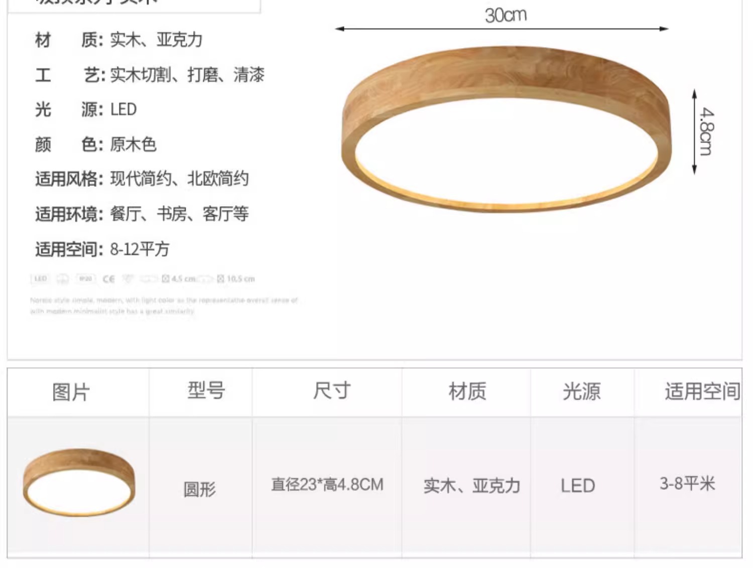 • 둥근 통나무 23CM 백색광 + 레이더 센서