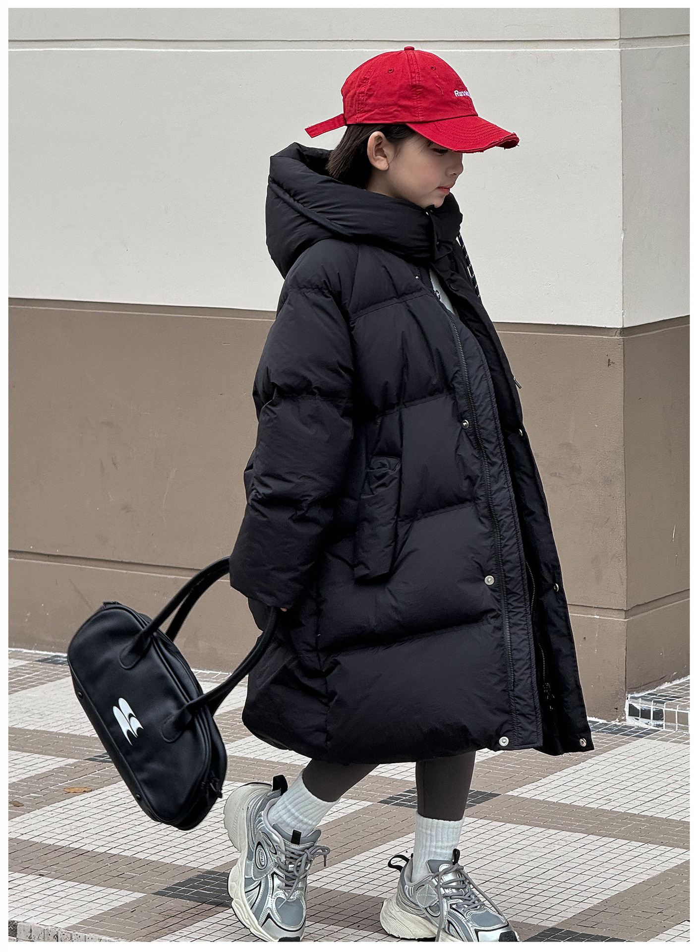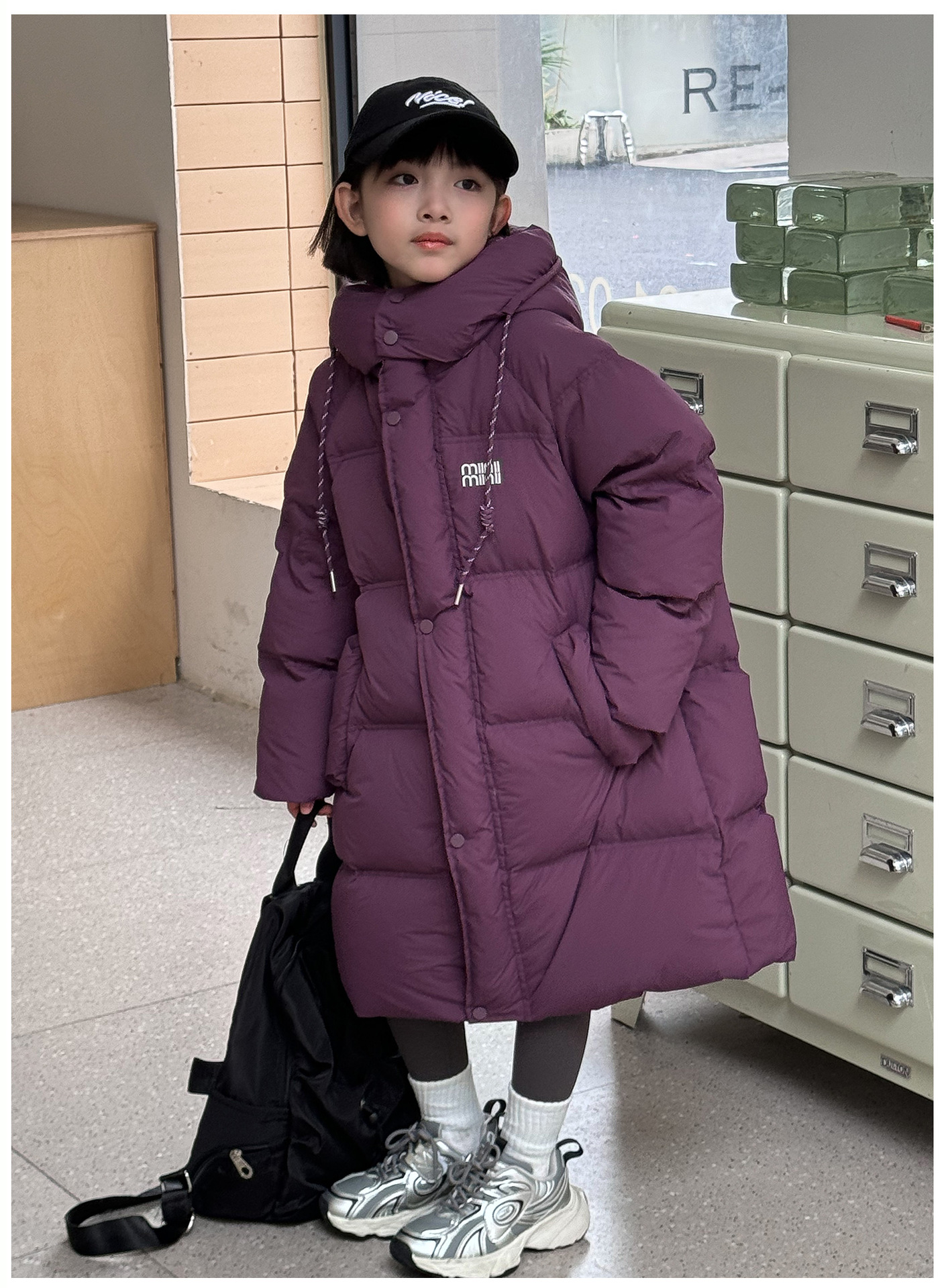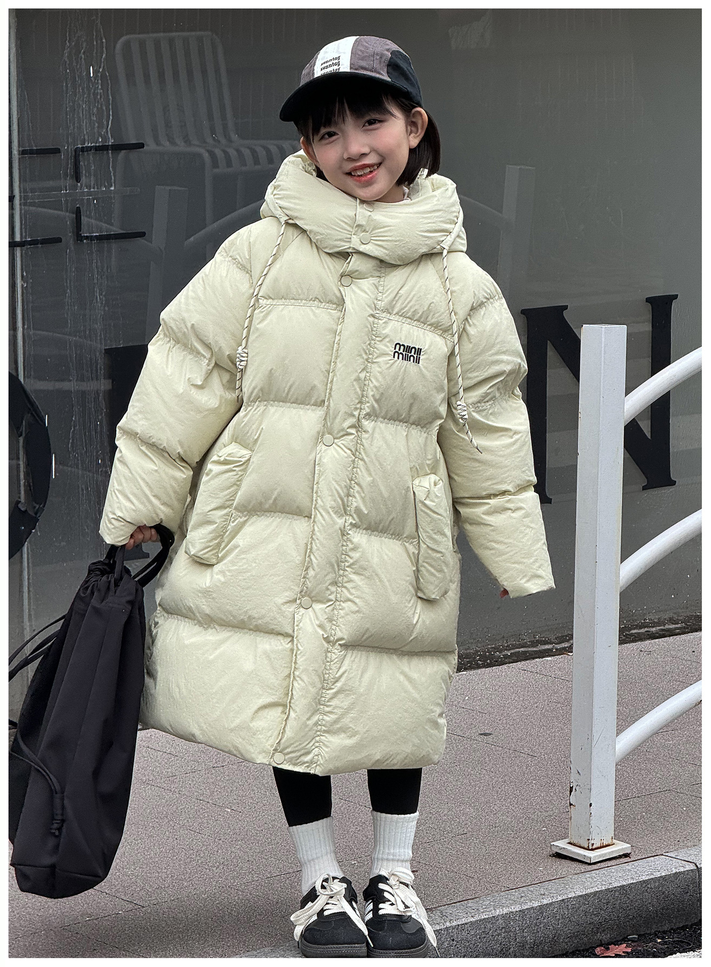 어린이 롱 다운 재킷 한국 스타일 새로운 소녀 중 큰 어린이 두꺼운 후드 화이트 오리 다운 따뜻한 서양식 재킷 트렌디스토어 가기