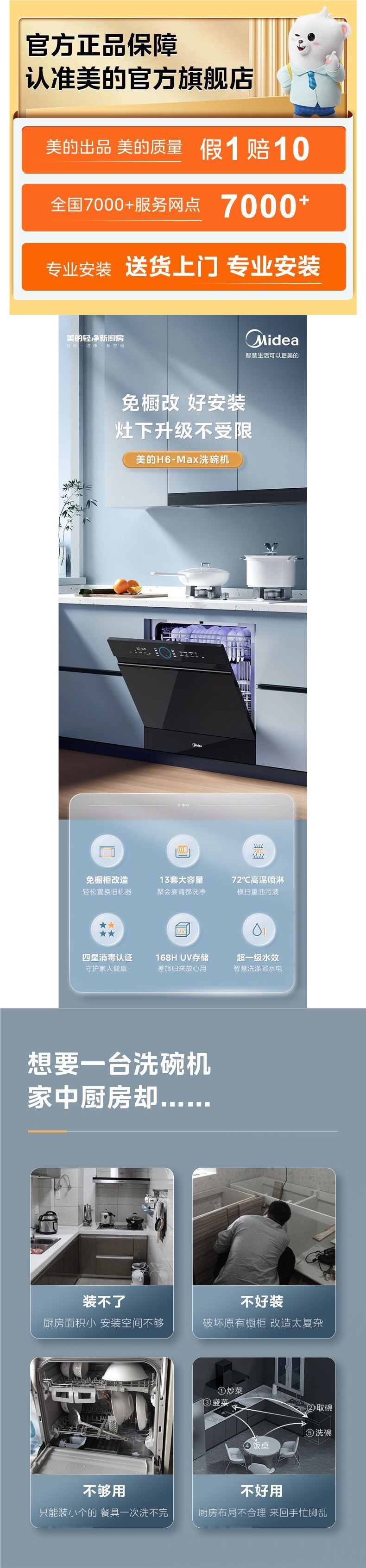 Midea 식기 세척기 임베디드 가정용 완전 자동 대용량 4 성 소독 무료 캐비닛 13 세트 슈퍼 수능률로 변경스토어 가기
