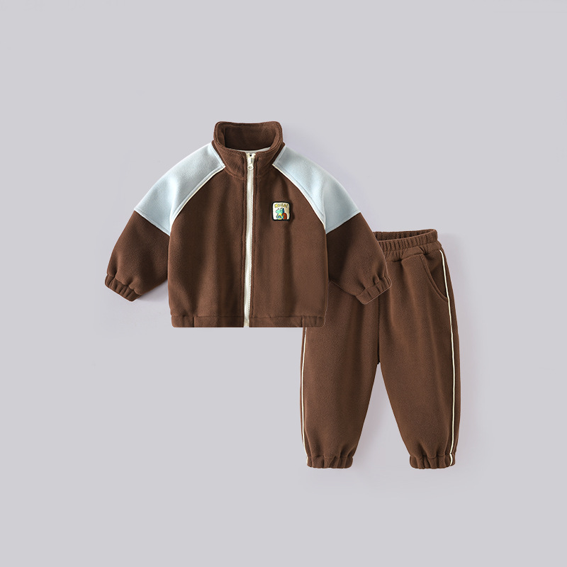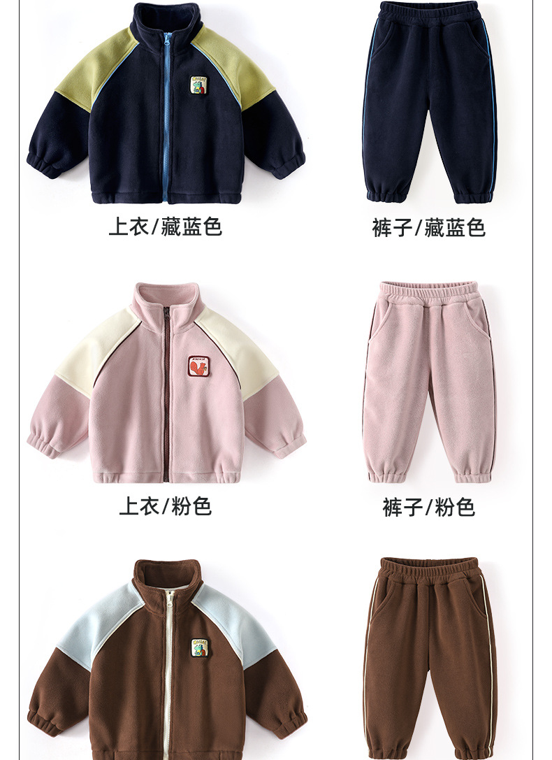 어린이 올림픽 곡물 양털 세트 겨울 컬러 블록 스포츠 지퍼 셔츠 따뜻한 바지 재킷 어린이 기모 투피스 세트스토어 가기