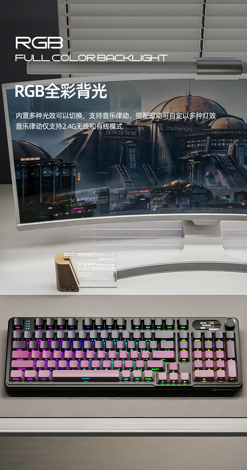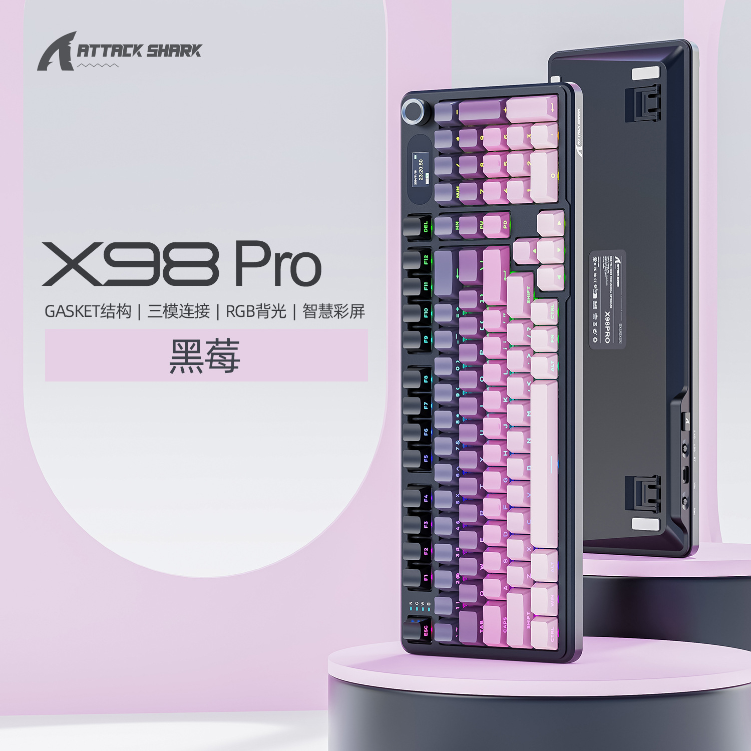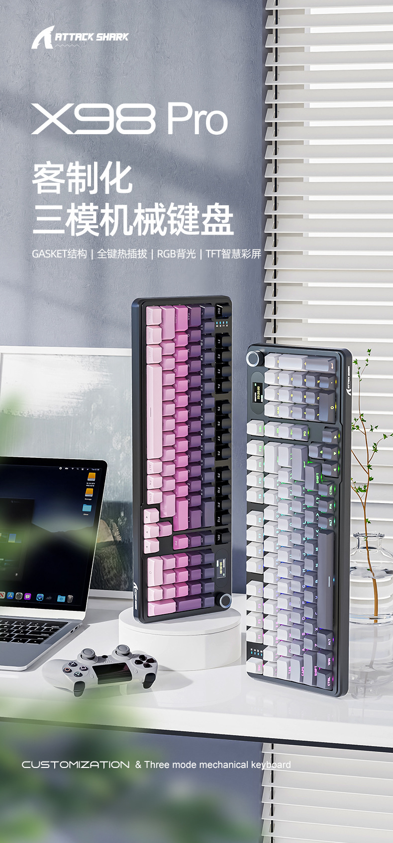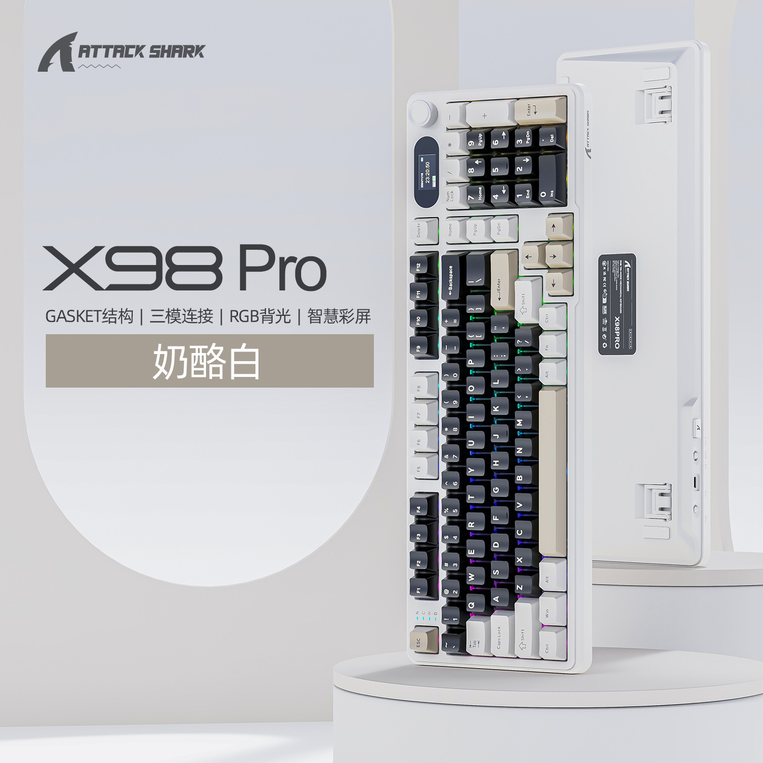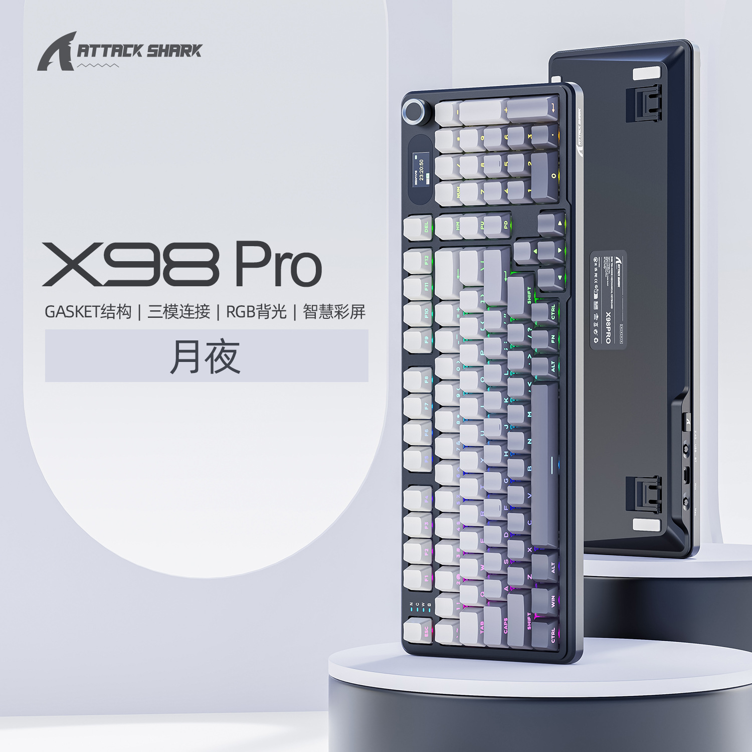 攻击鲨X98PRO无线RGB三模带屏机械键盘
