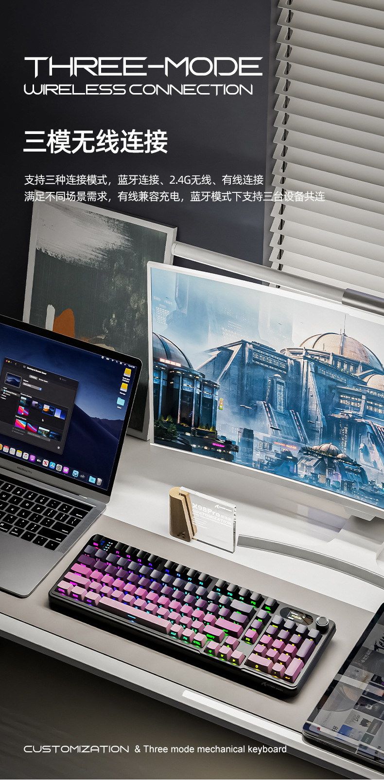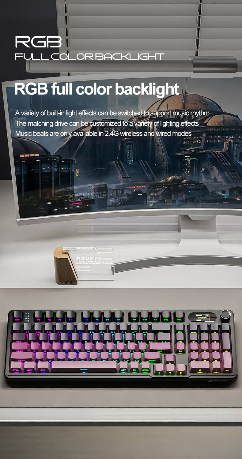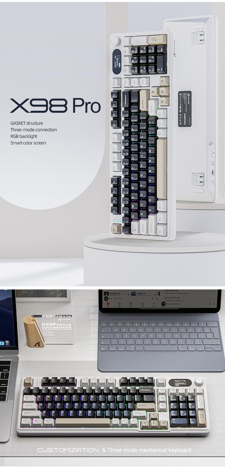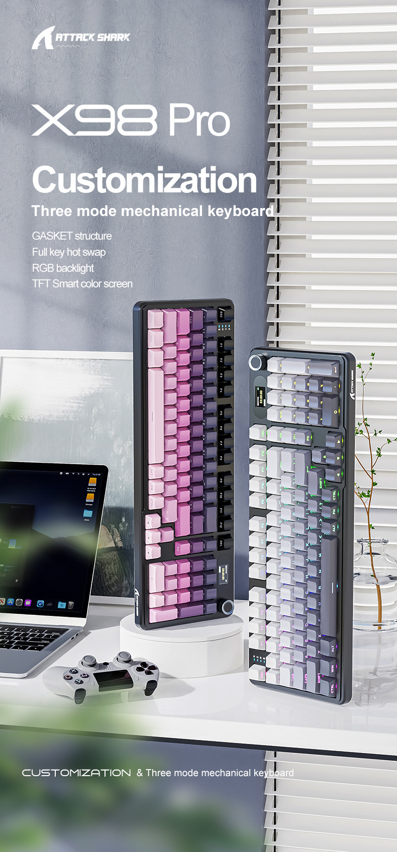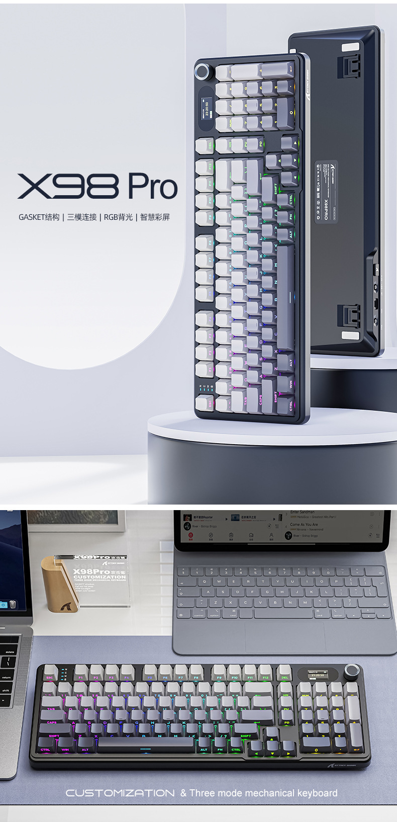 攻击鲨X98PRO无线RGB三模带屏机械键盘