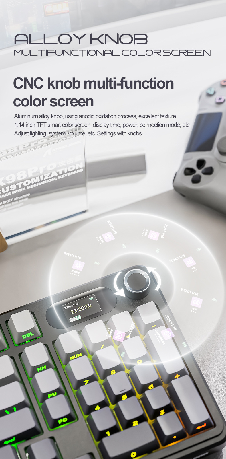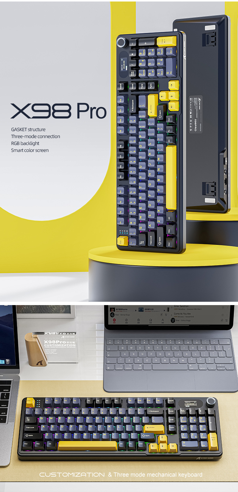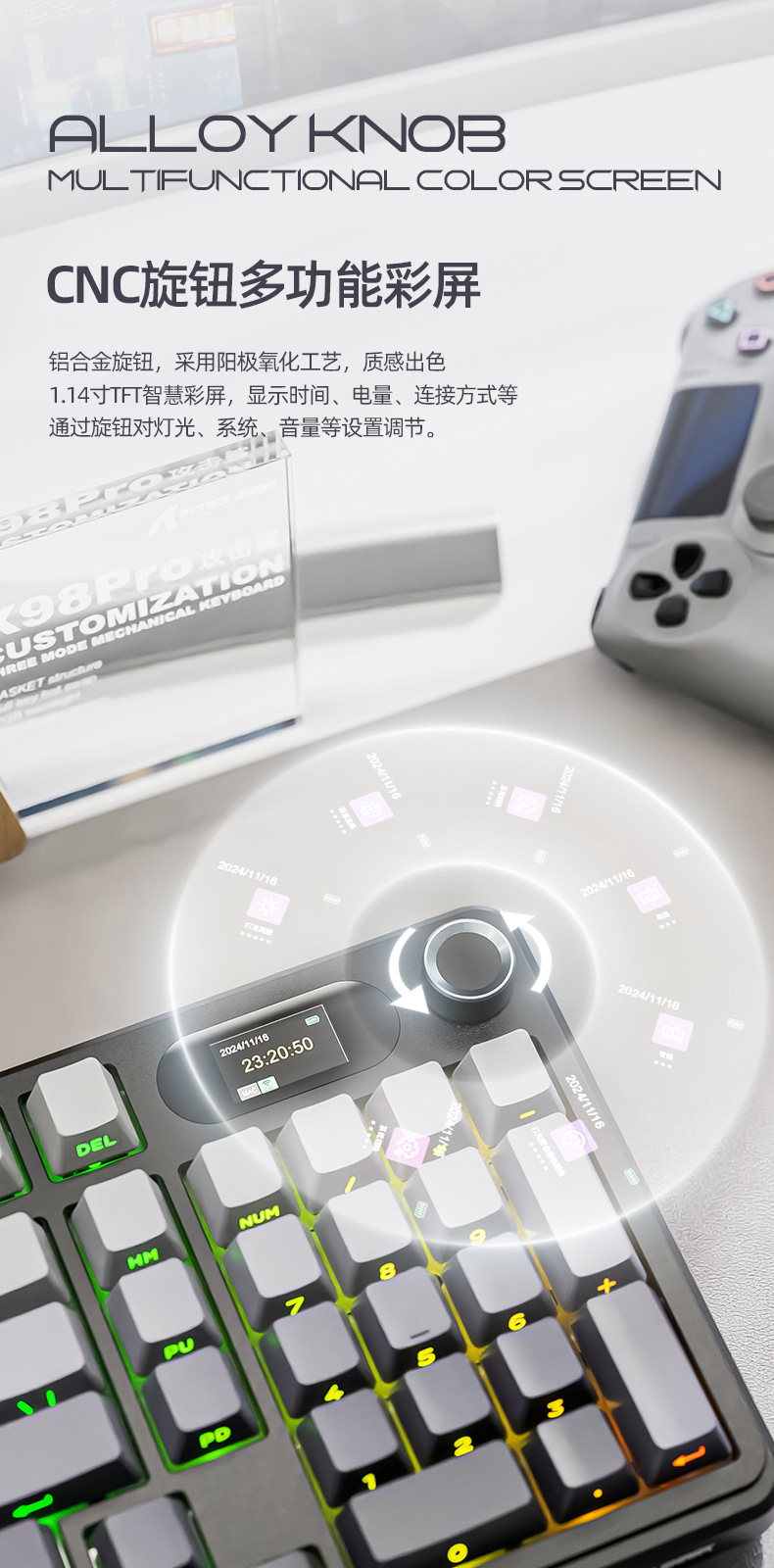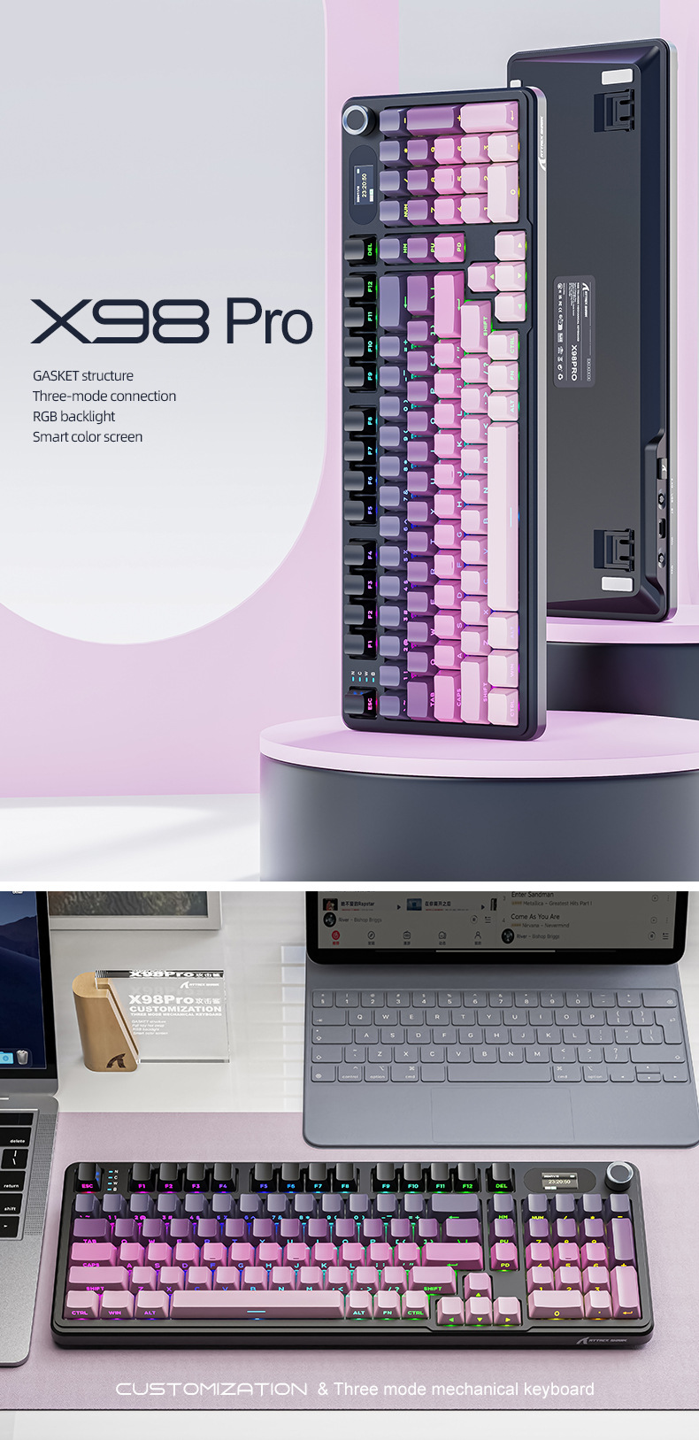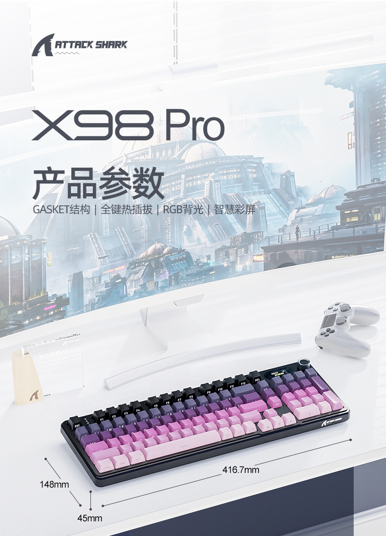 攻击鲨X98PRO无线RGB三模带屏机械键盘
