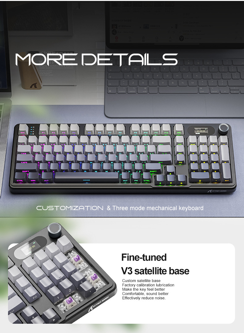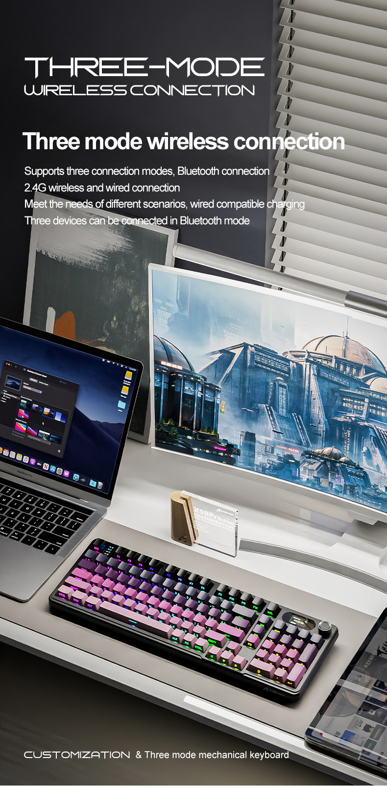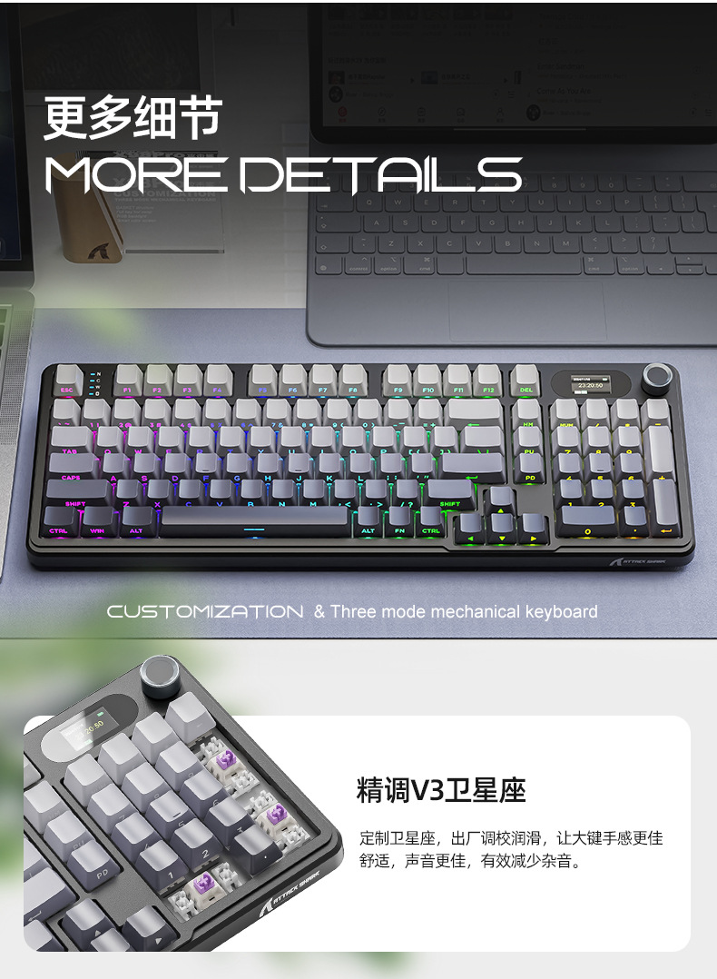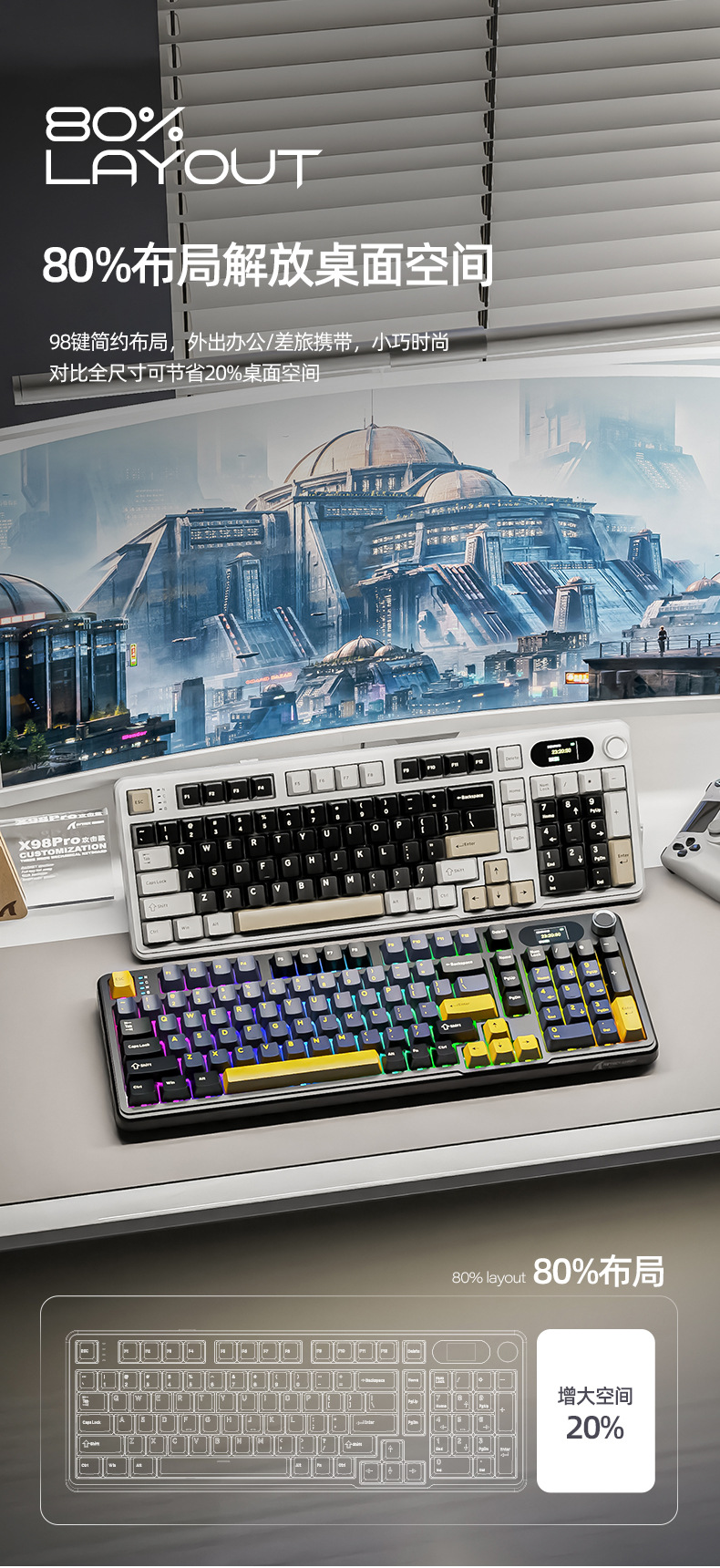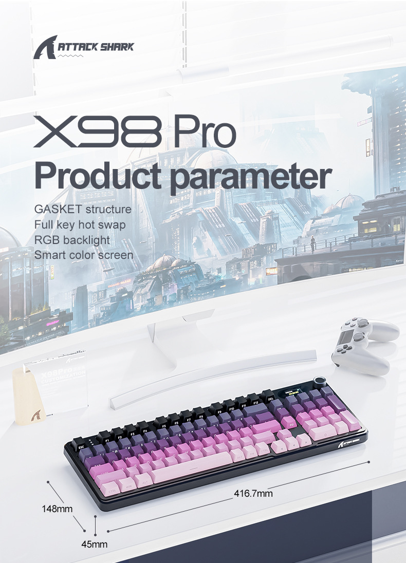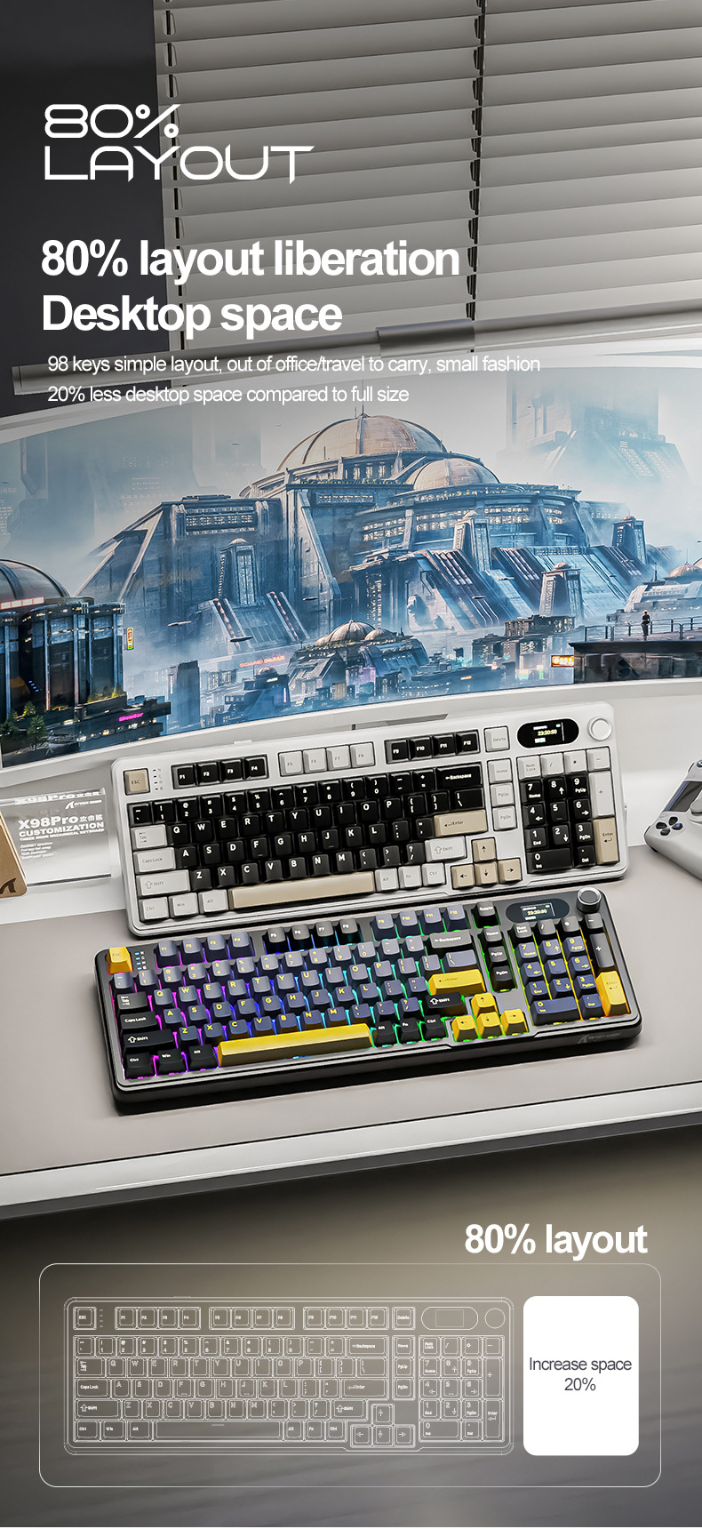 攻击鲨X98PRO无线RGB三模带屏机械键盘